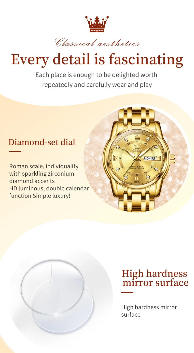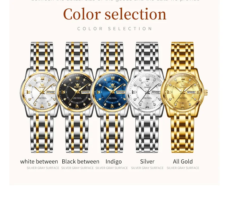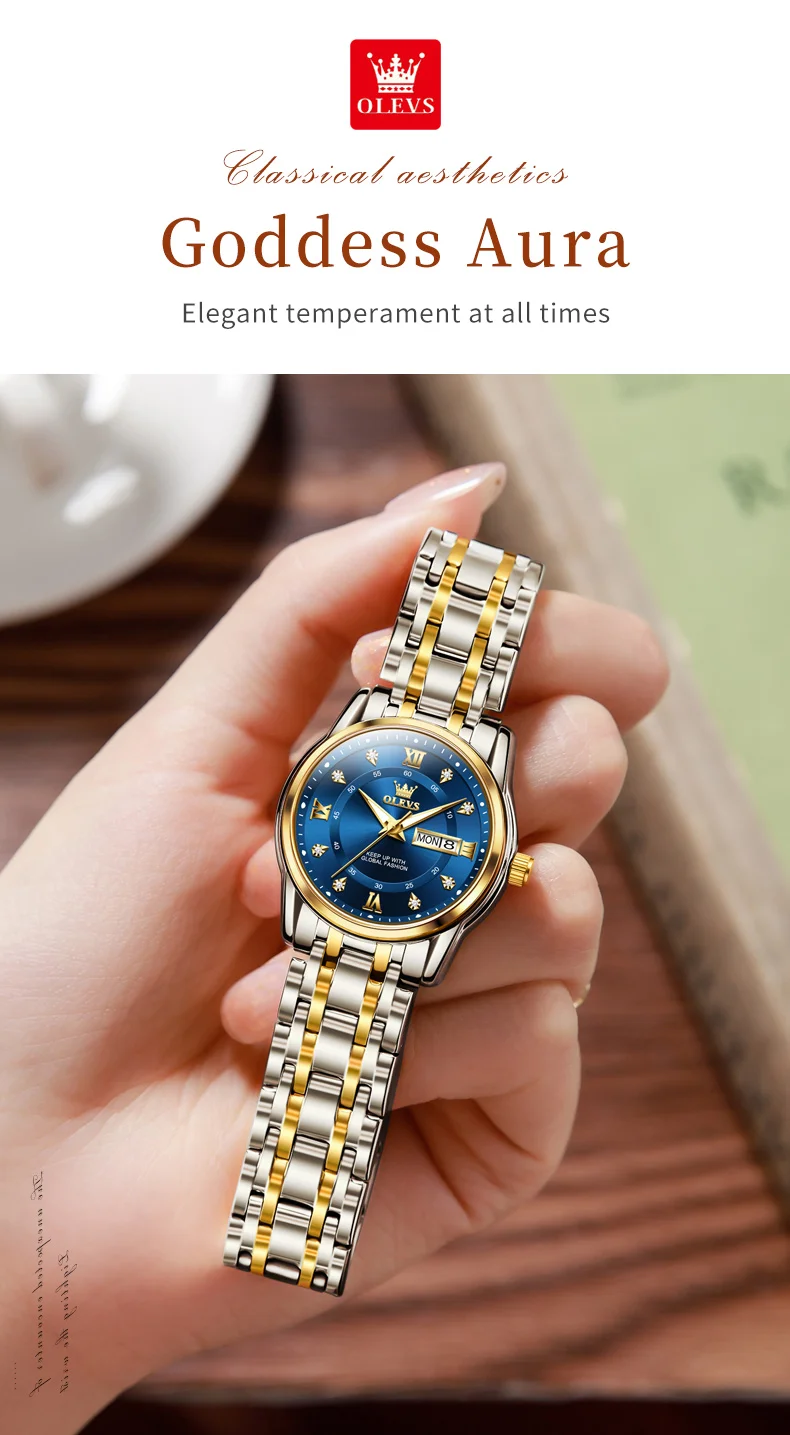 OLEVS 5513 Fashion Ladies' Watches Elegant Stainless Steel Waterproof Quartz Watch for Women Weekly Calendar Luminous Wristwatch