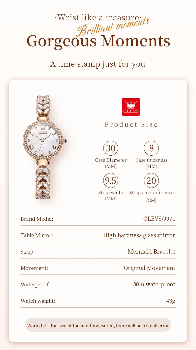 OLEVS 9971 Women Watch Luxury Brand Quartz Watch Fashion Unique Design Diamond Mermaid Bracelet Dress Watch Women Elegant Watch