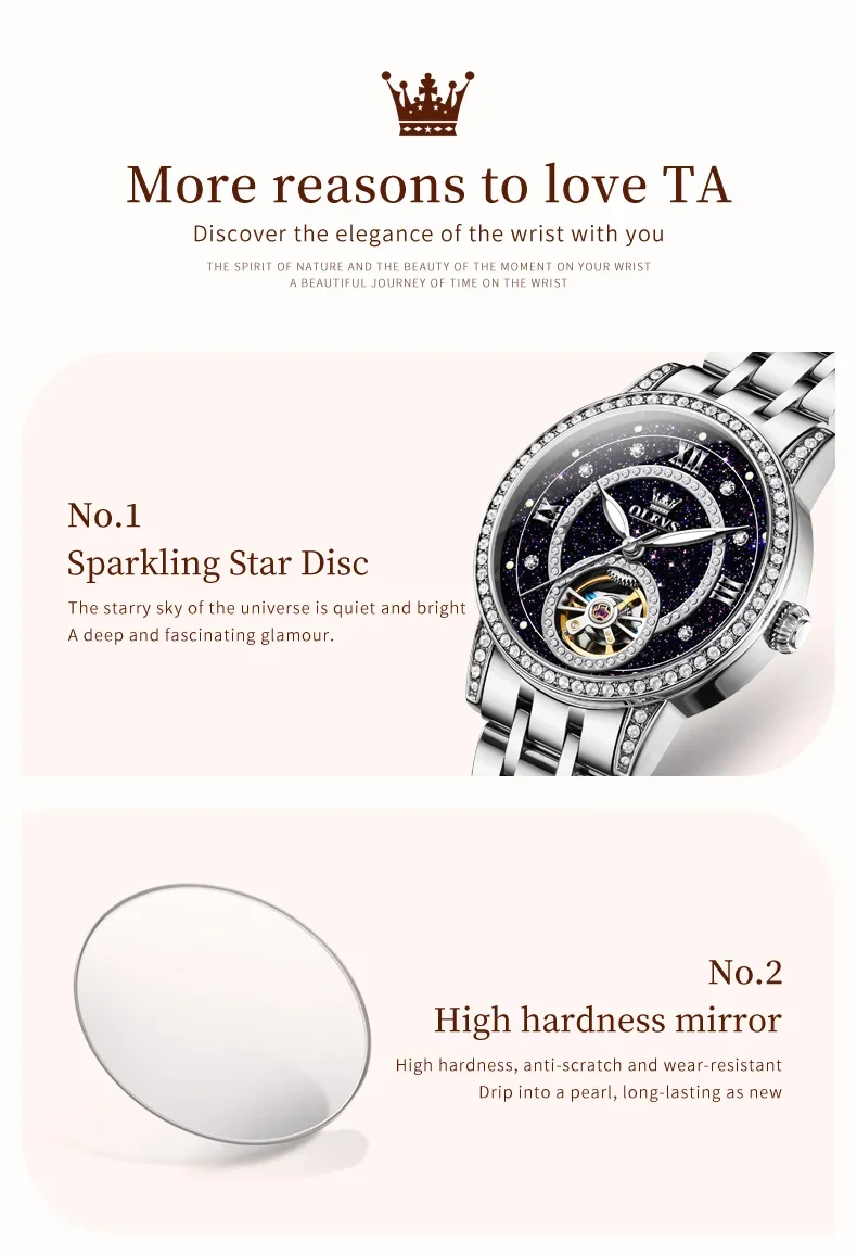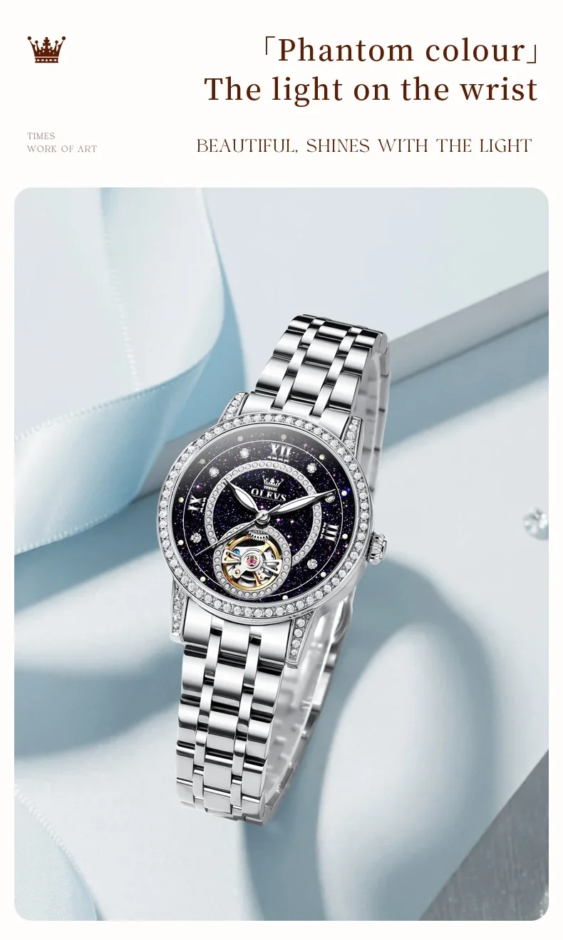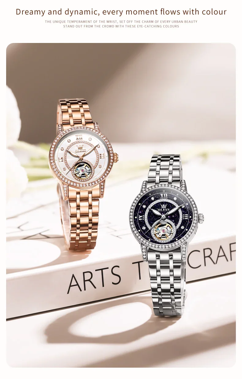 OLEVS Hollow Women's Watch Fully Automatic Mechanical Watch Luxury Diamond Inlaid Starry Sky Elegant Women's Brand Watch 7036