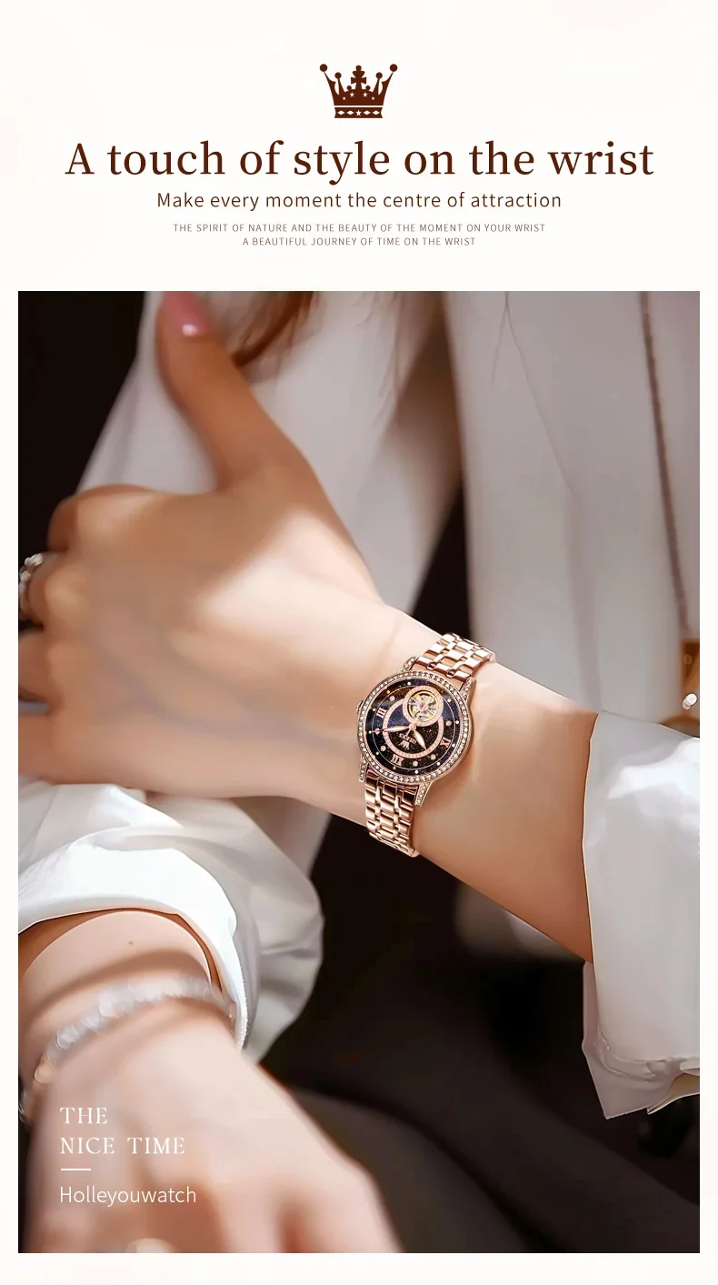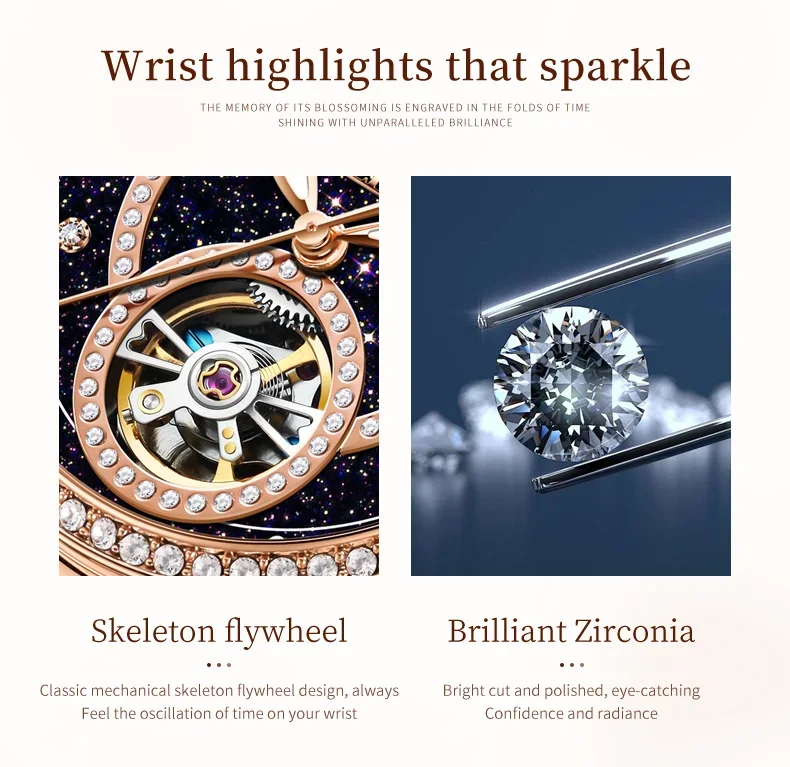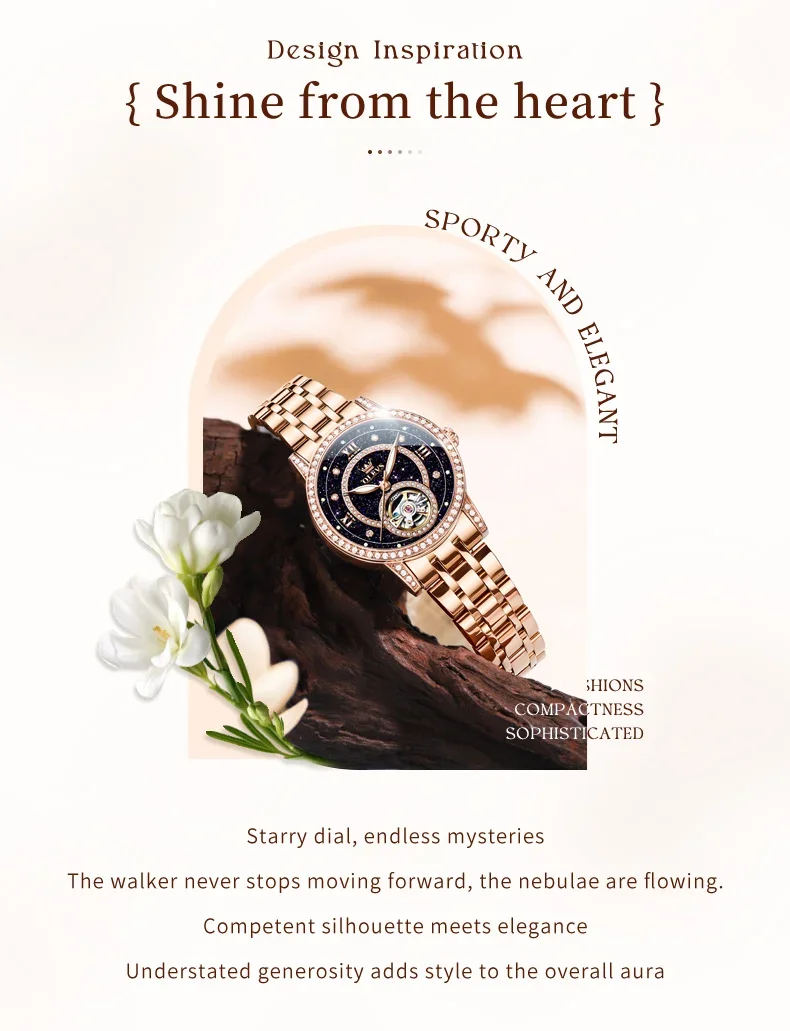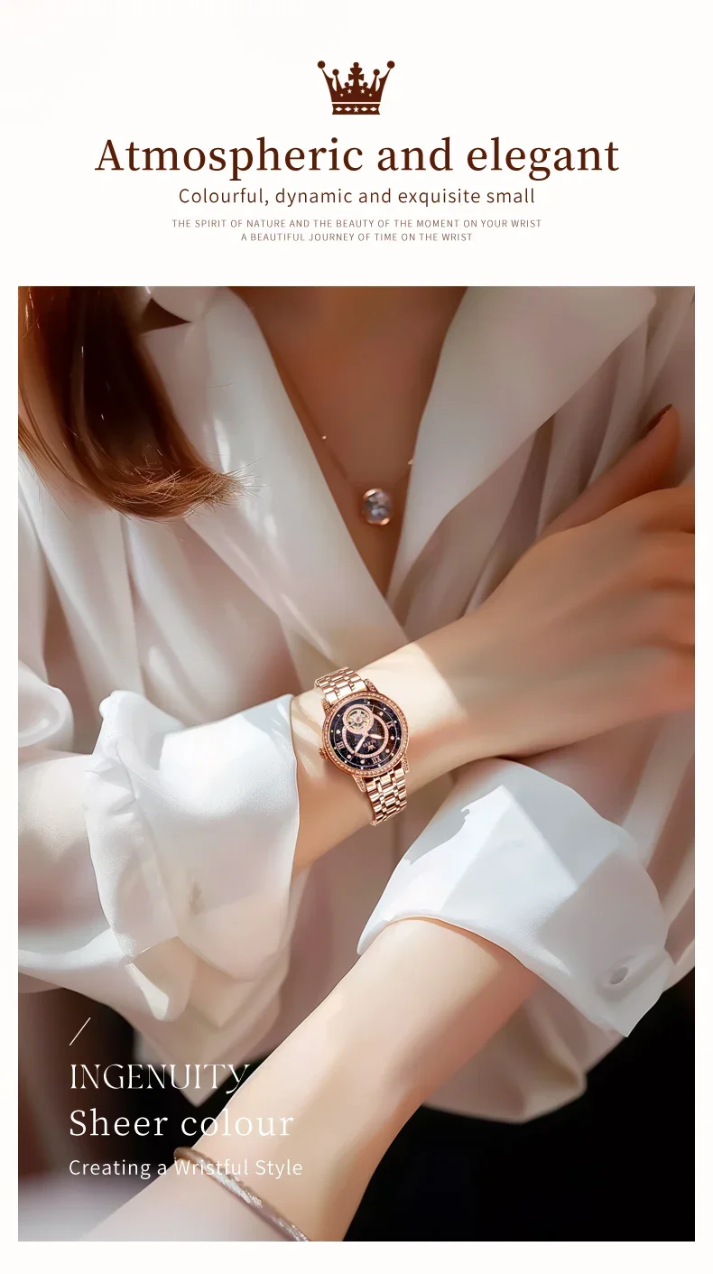 OLEVS Hollow Women's Watch Fully Automatic Mechanical Watch Luxury Diamond Inlaid Starry Sky Elegant Women's Brand Watch 7036