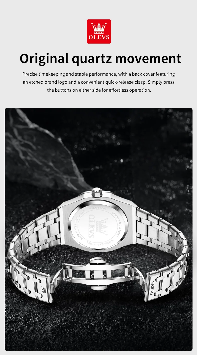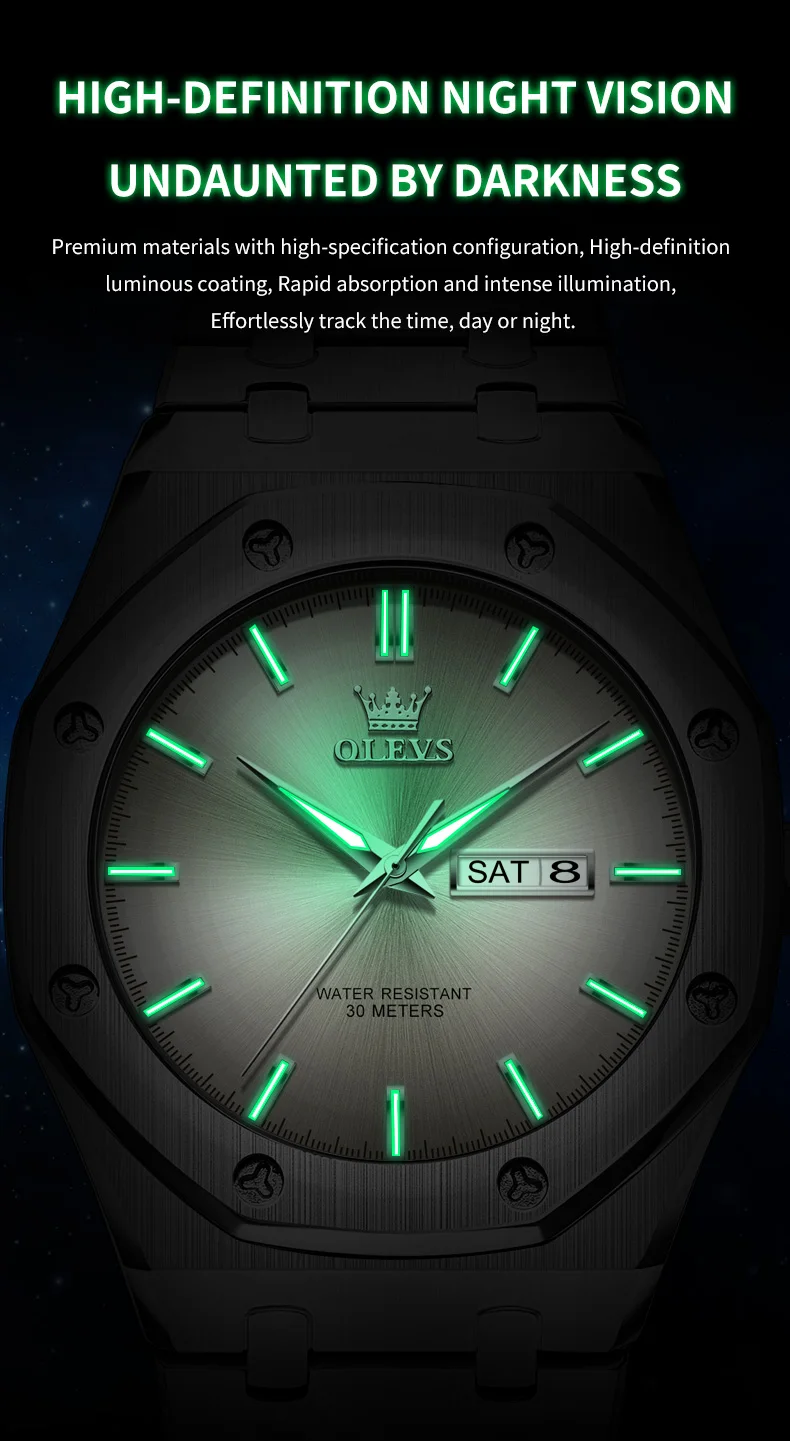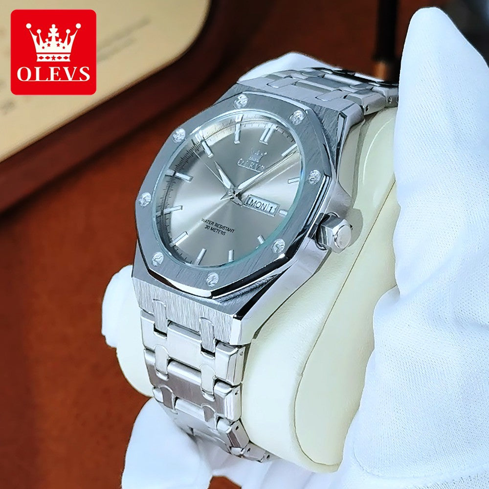 OLEVS Men's Watches Luxury Fashion Fine Steel Original Quartz Wristwatch for Man Waterproof Luminous Date Week Trend Dress 3726