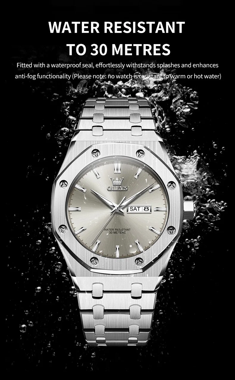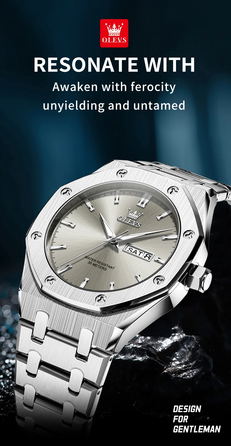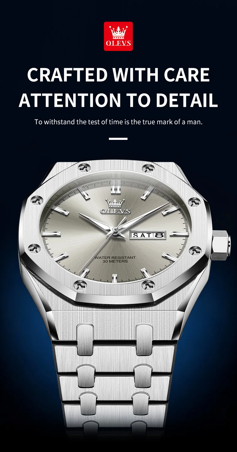 OLEVS Men's Watches Luxury Fashion Fine Steel Original Quartz Wristwatch for Man Waterproof Luminous Date Week Trend Dress 3726