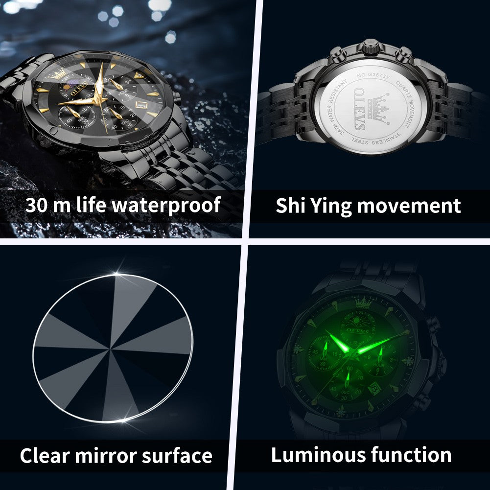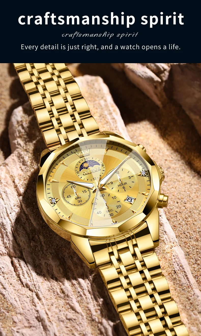 OLEVS Original Fashion Moon Phase Men's Watches Waterproof Chronograph Quartz Watch Stainless steel Calendar Brand Wristwatch