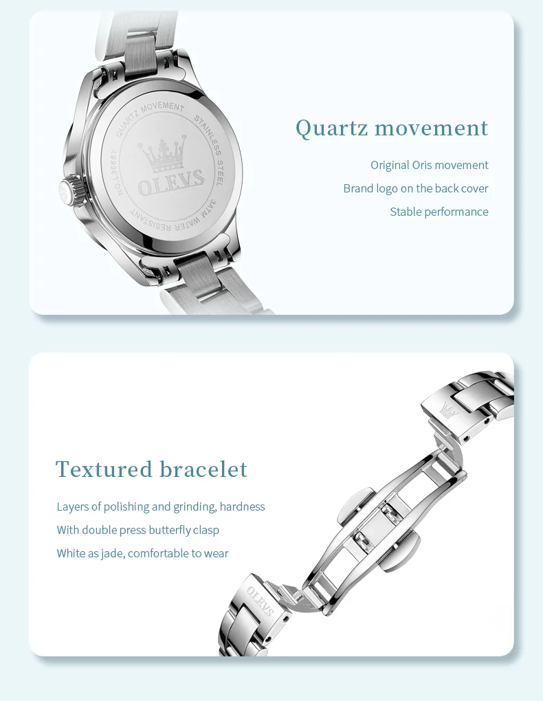 OLEVS Women's Watches Trend Elegant Stainless Steel Original Brand Small Dial Quartz Wristwatch for Lady Waterproof Luminous New
