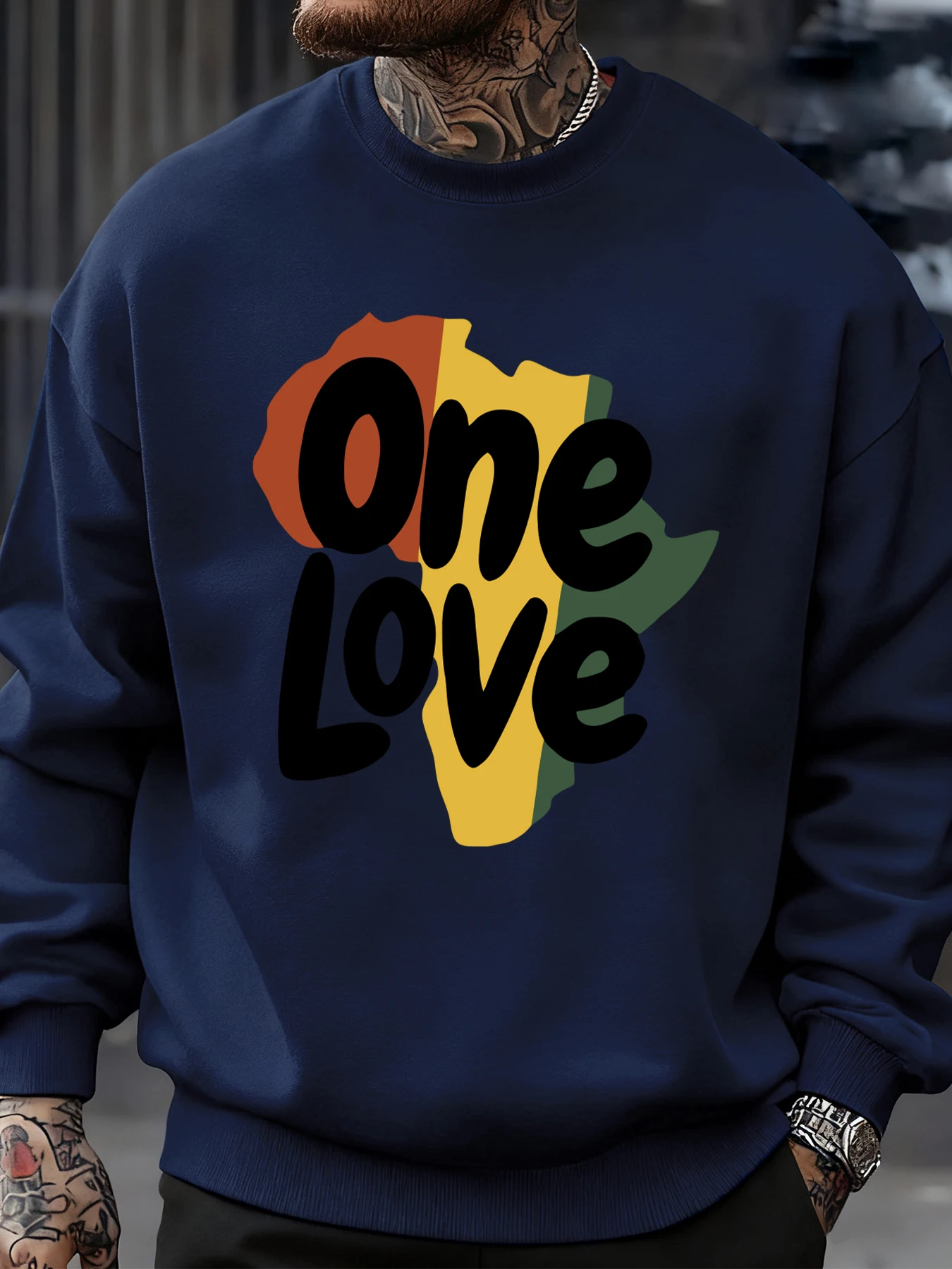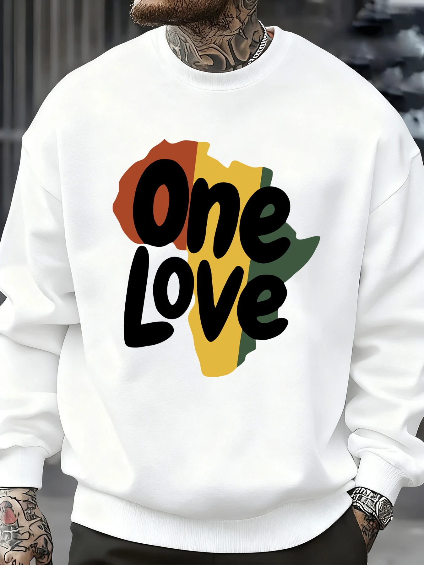 One Love African Continent Prints Sweatshirt Men Crewneck Clothes Autumn Fleece Pullover Oversized Multicolor Streetwear Unisex