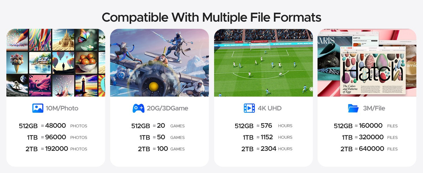1TB massive capacity, plug and play, effortlessly expand storage for your Apple devices. Whether extending video storage for your Tablets or photo album for your Type C smart phone, it meets all your needs.
