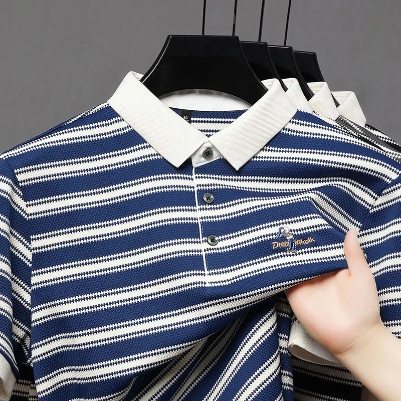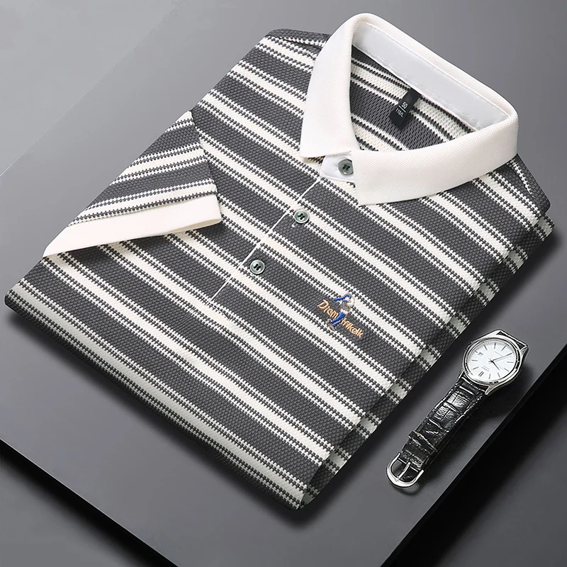 Original Quality Men's Polo Shirt Stripe Cartoon Embroid Short Sleeve Summer Exquisite Lapel T-Shirt Business Trend Menswear Top