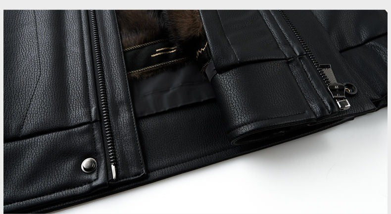 Outcoat Winter Faux Leather Jacket Detachable Golden Mink Fleece Inner Lining Top Layer Faux Deerskin One-piece Warm Men's Coat