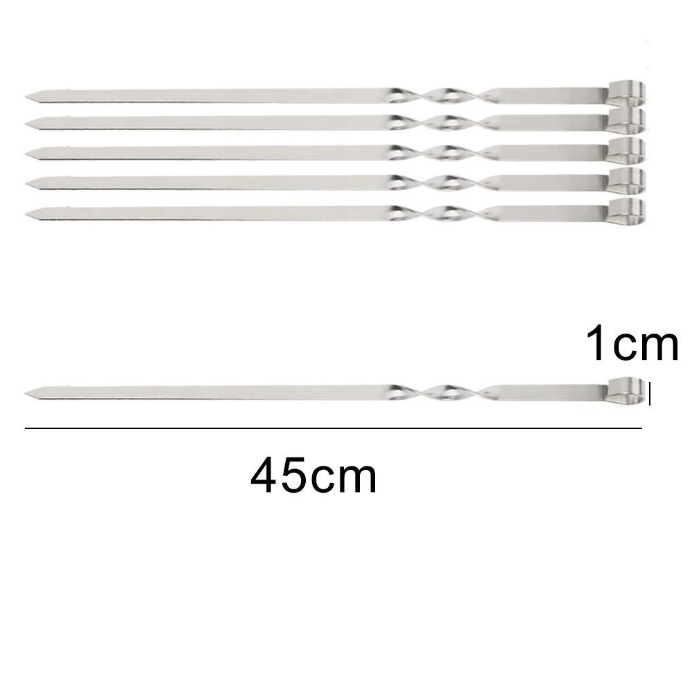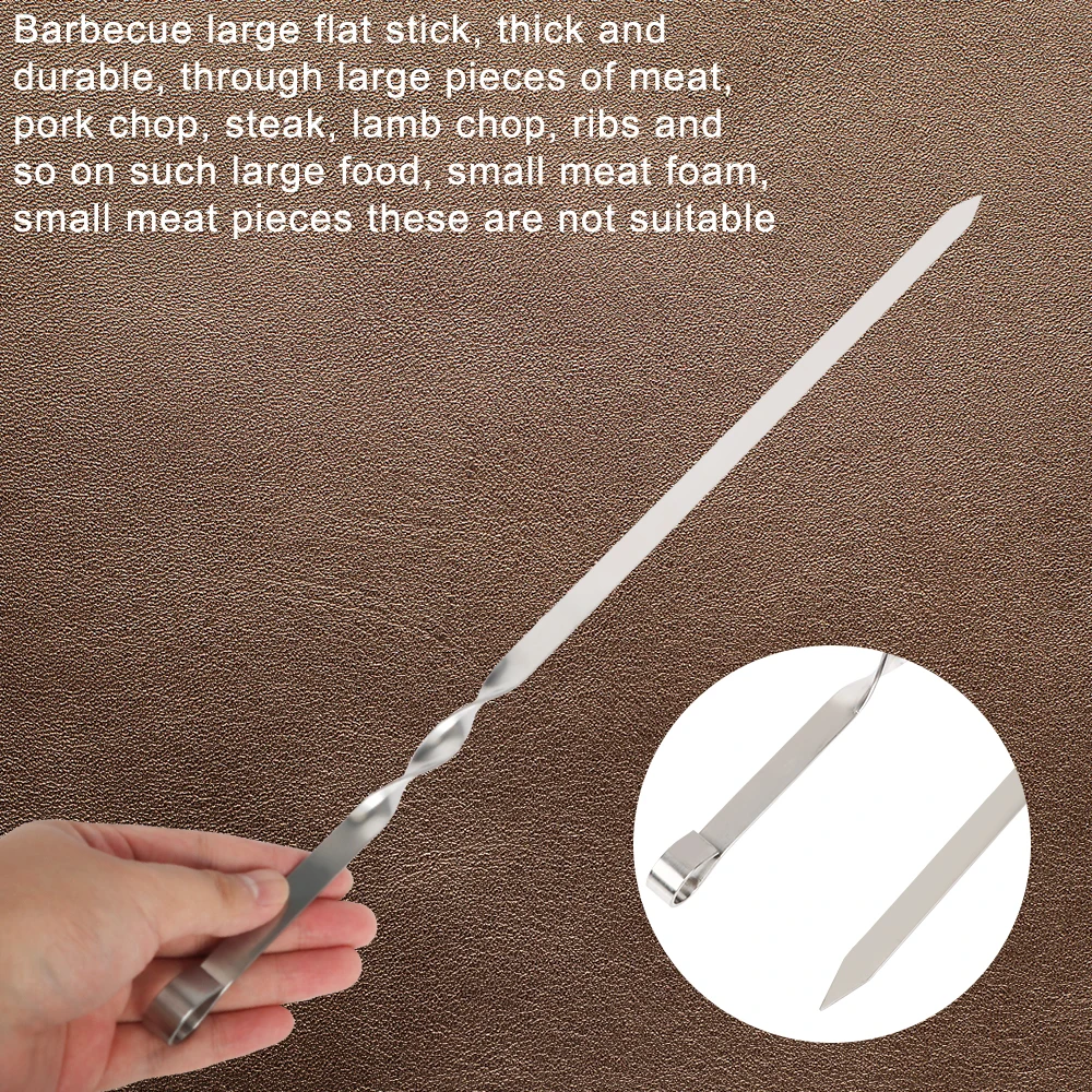 Outdoor Camping Picnic Stainless Steel Barbecue Skewer BBQ Utensil Flat BBQ Fork 6Pcs Wide BBQ Sticks Barbecue Supplies