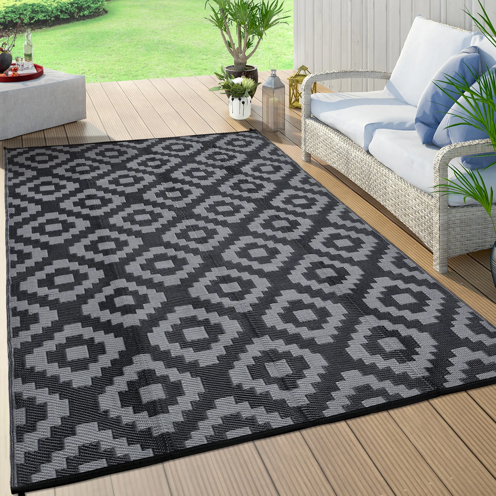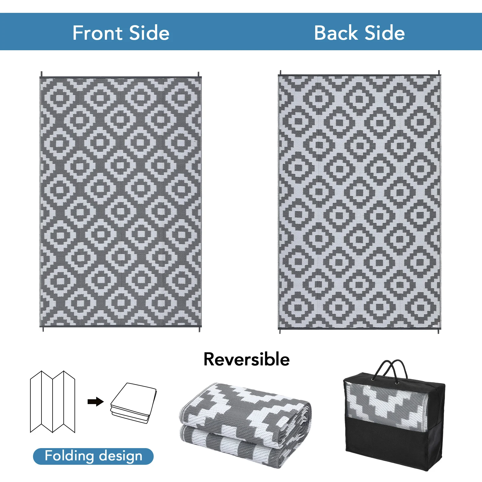 ? REVERSIBLE OUTDOOR RUG - Our reversible patio rug features a timeless Diamond-shaped design that can be utilized on both sides, combining practicality with elegance. Whether placed in a courtyard alongside outdoor furniture or accessories, it effortlessly accentuates your personal style.