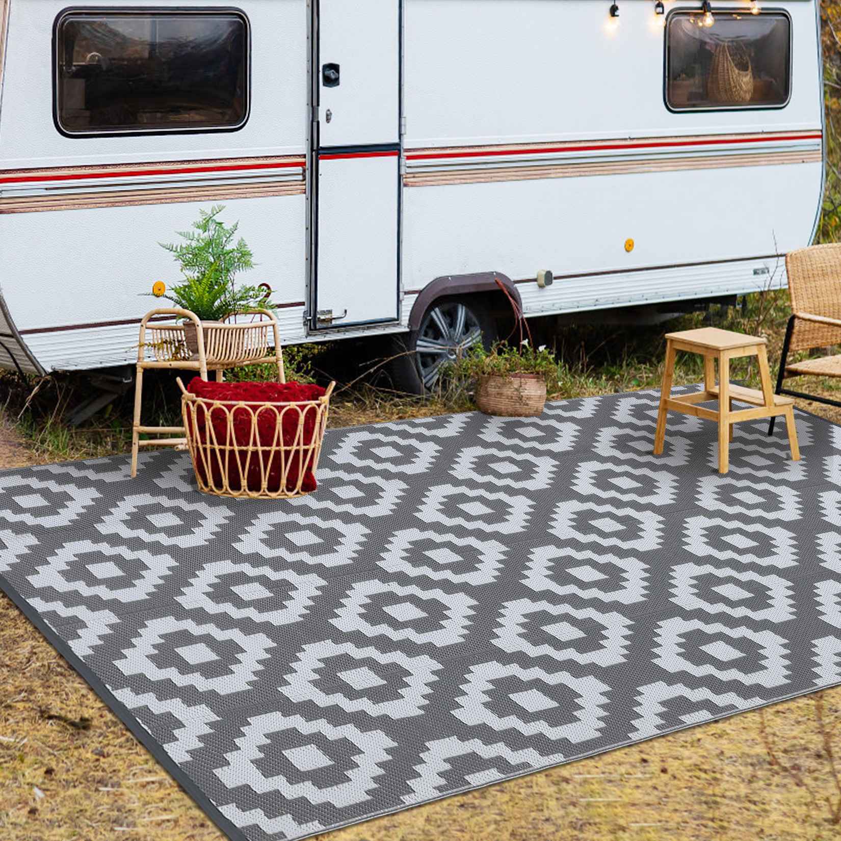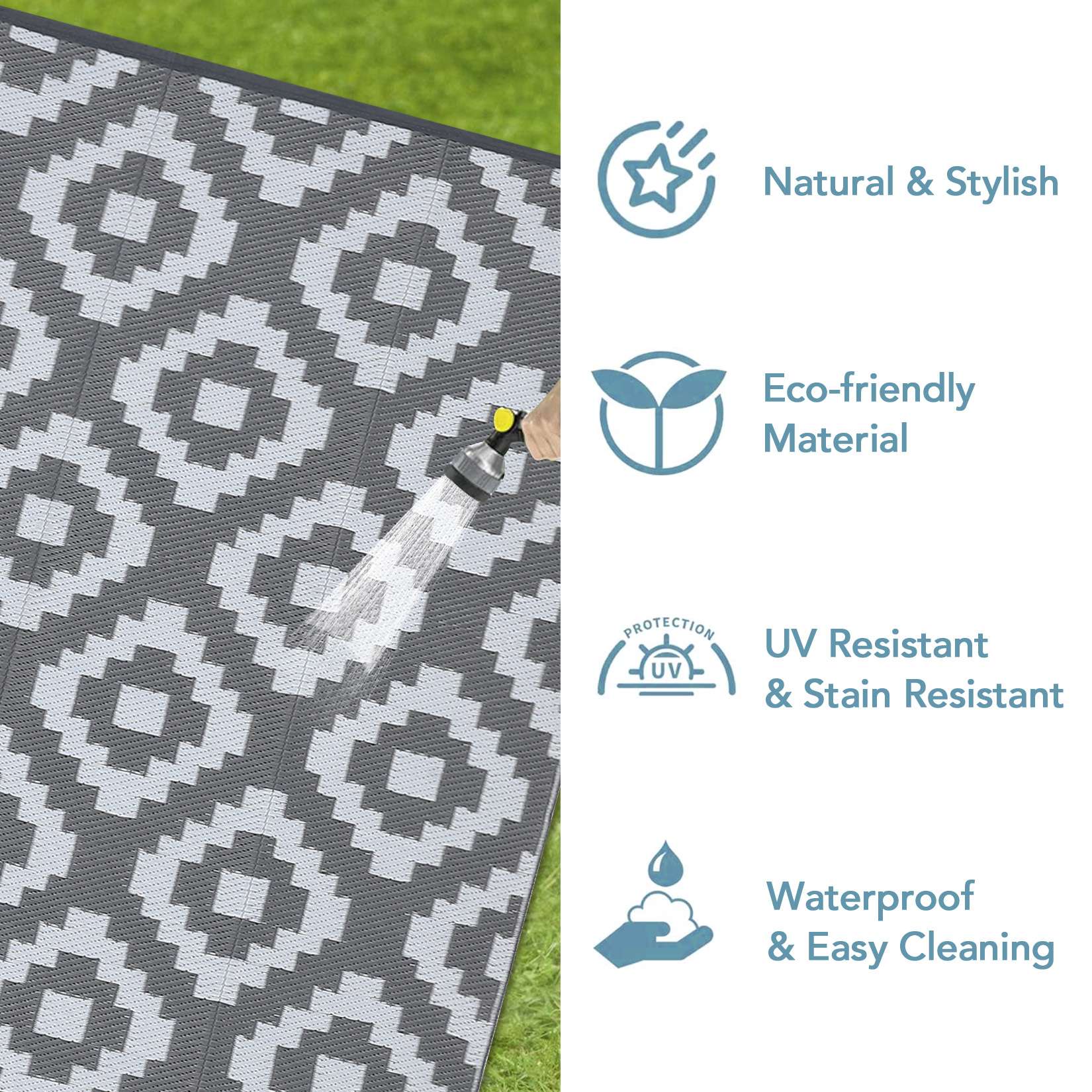 ? LOW MAINTENANCE & WATERPROOF - Our outdoor rug is waterproof and easy to clean, making it perfect for use outdoors and a must-have for campers and outdoor enthusiasts. No need to worry about the sand and dirt outside, just shake and wipe with clean cloth. For deep cleaning, you can use a wet cloth dipped with mild soap, wash it with water and dry it in a few minutes. With our rug, you can spend less time cleaning and more time enjoying your outdoor space.