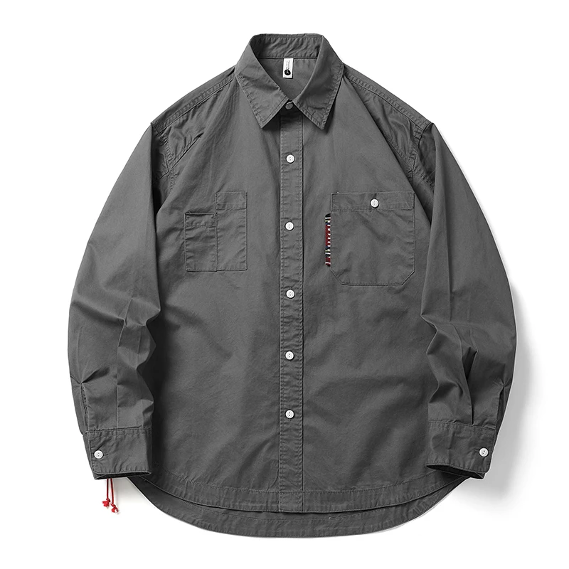 Oversize Cargo Shirts Men Japanese Streetwear Vintage Fashion Loose Casual Long Sleeve Cityboy Pure Cotton Button Shirts Blouses