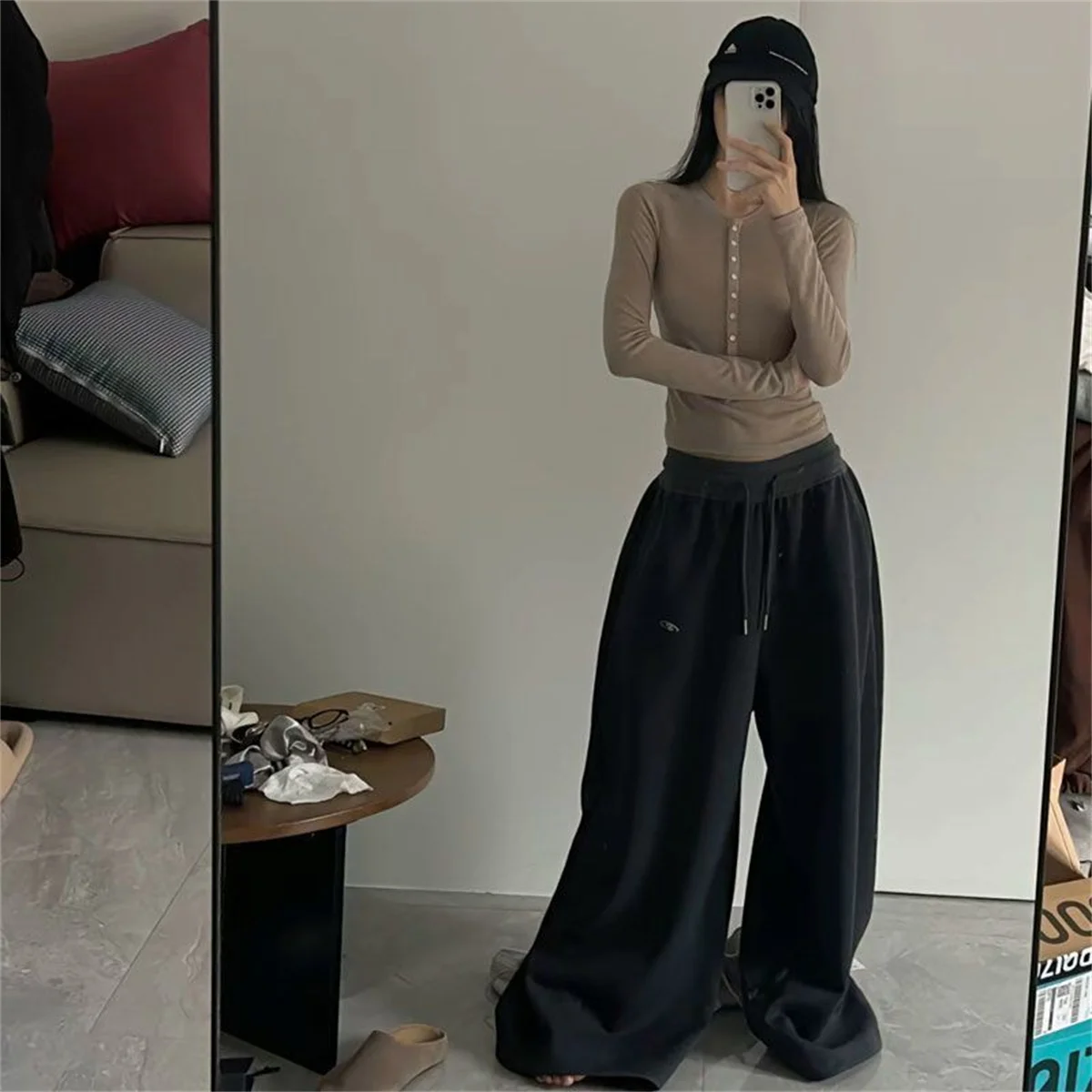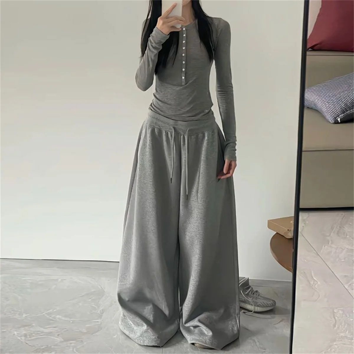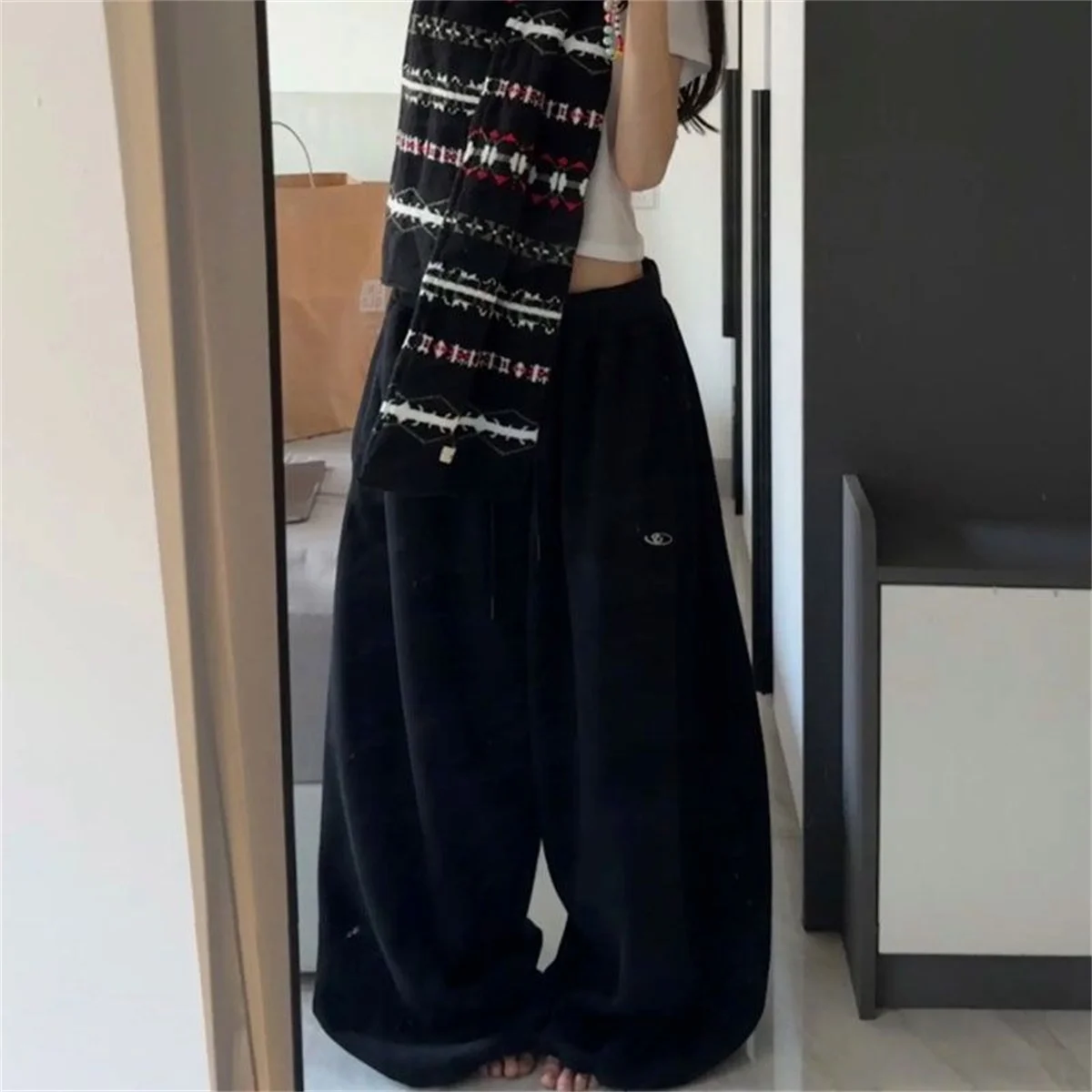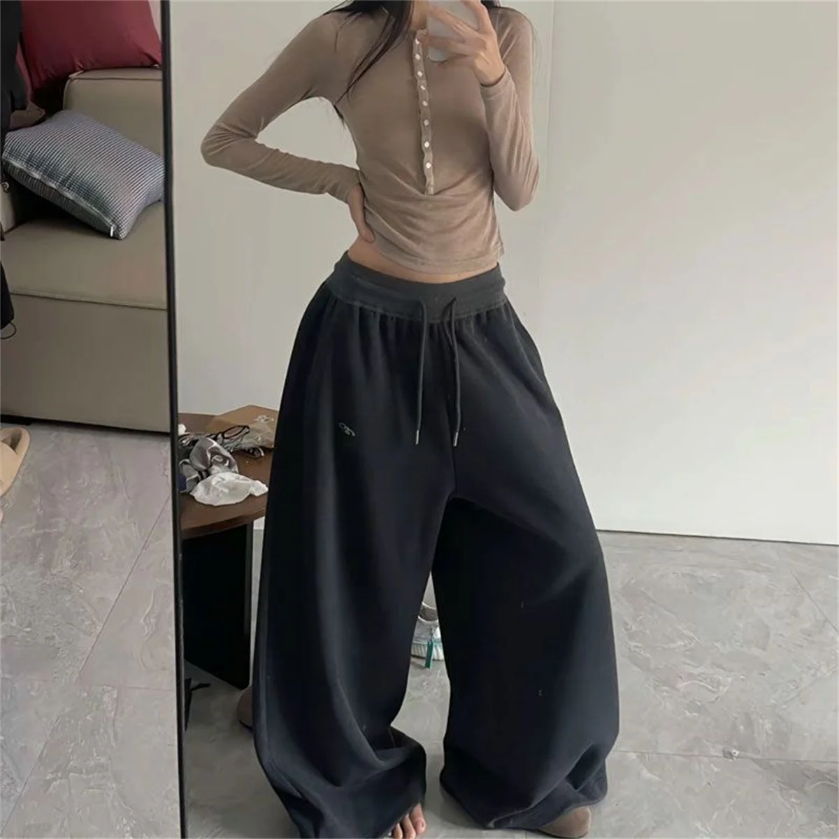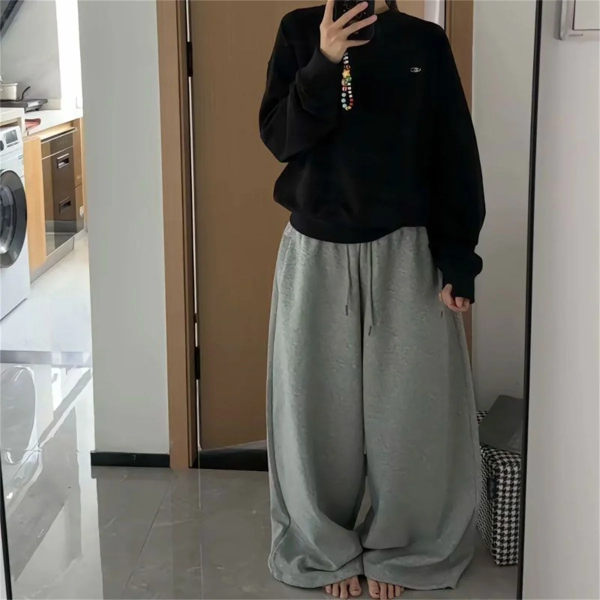 Oversize Woman Grey Black Sweatpants Y2K Korean Streetwear Loose Casual Jogger Pants High Waist All Match Drawstring Trousers