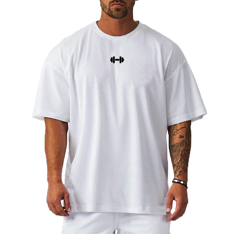 Oversized Loose Short Sleeve Quick Dry Shirt Gym Bodybuilding Breathable Cool Mesh Clothing Mens Fitness Workout Muscle T-shirts