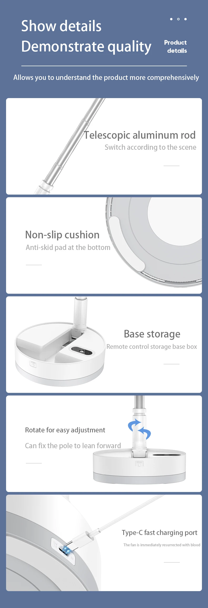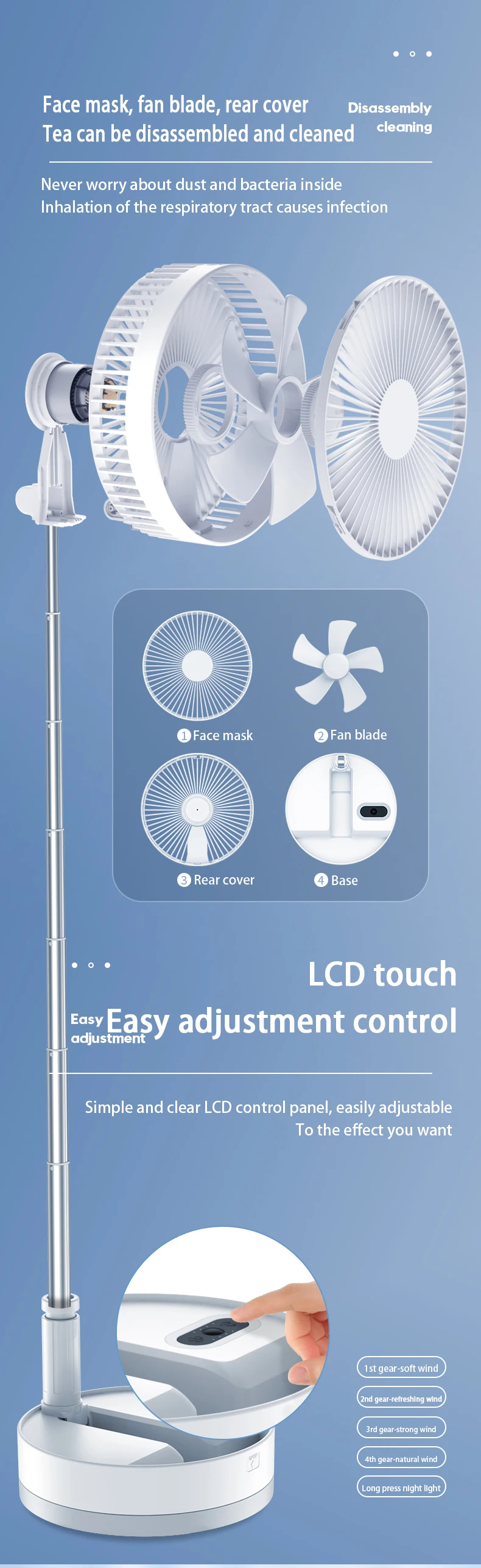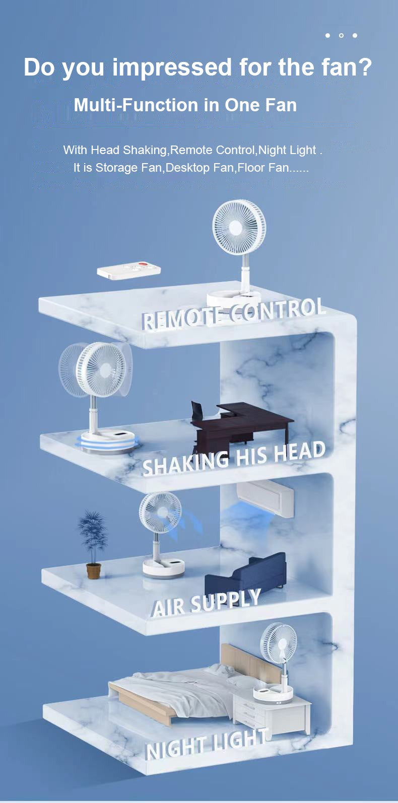 Multi-function in One fan.With remote control,head shaking,timing, night light,folding storage etc.