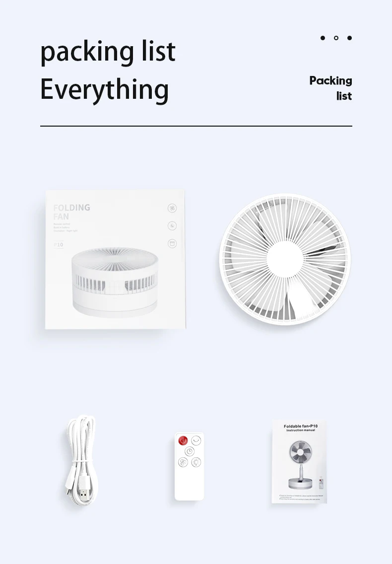 P10 10800mAh Folding Portable Fan USB Remote Control Air Cooler Silent Rechargeable Wireless Floor Standing Fan for Camping Desk