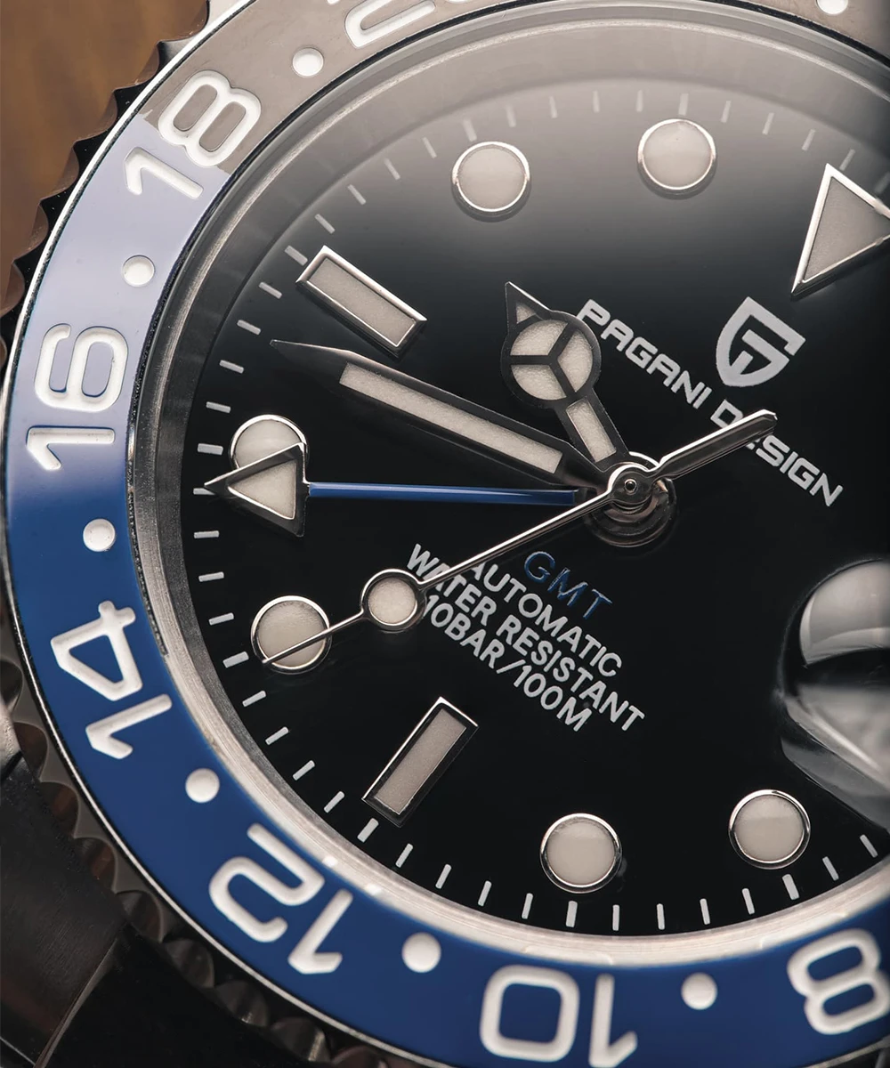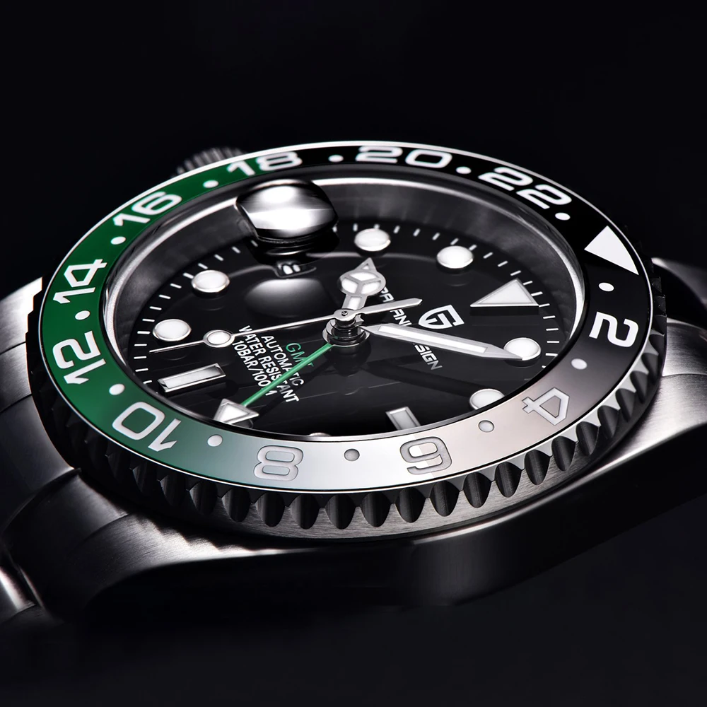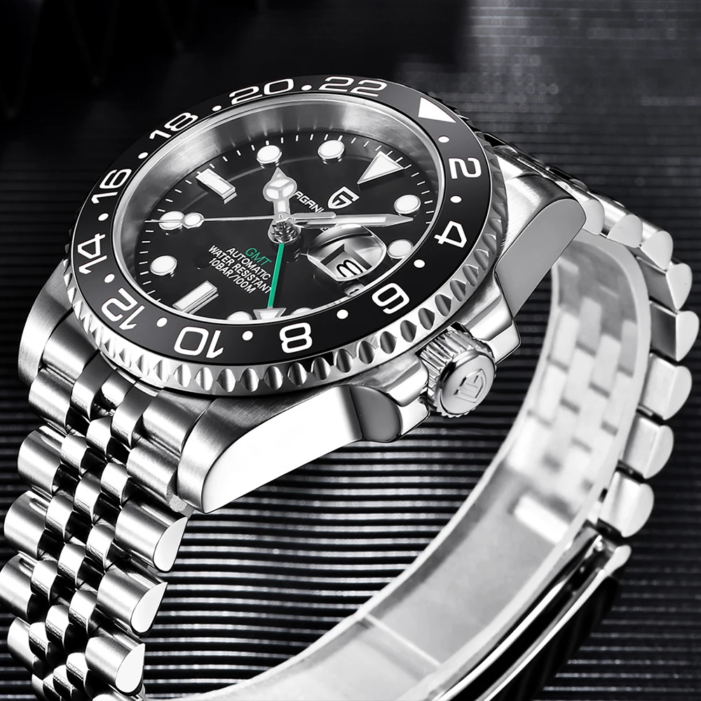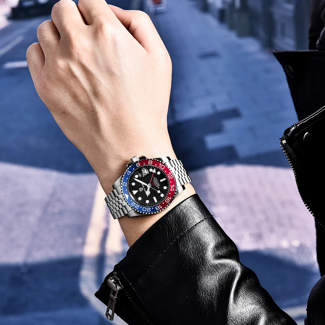 PAGANI DESIGN PD-1662 Luxury GMT Men Mechanical Wristwatch Sapphire Glass Stainless Steel 100M Waterproof Automatic Watches