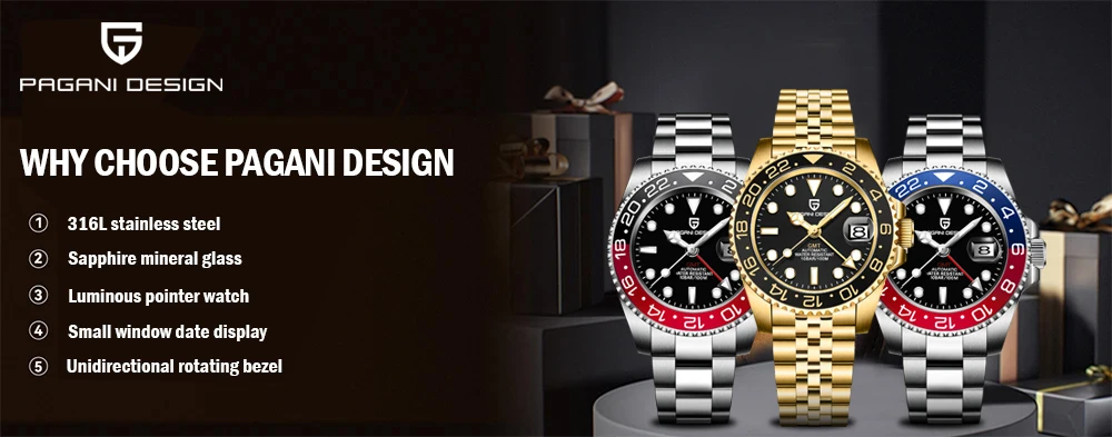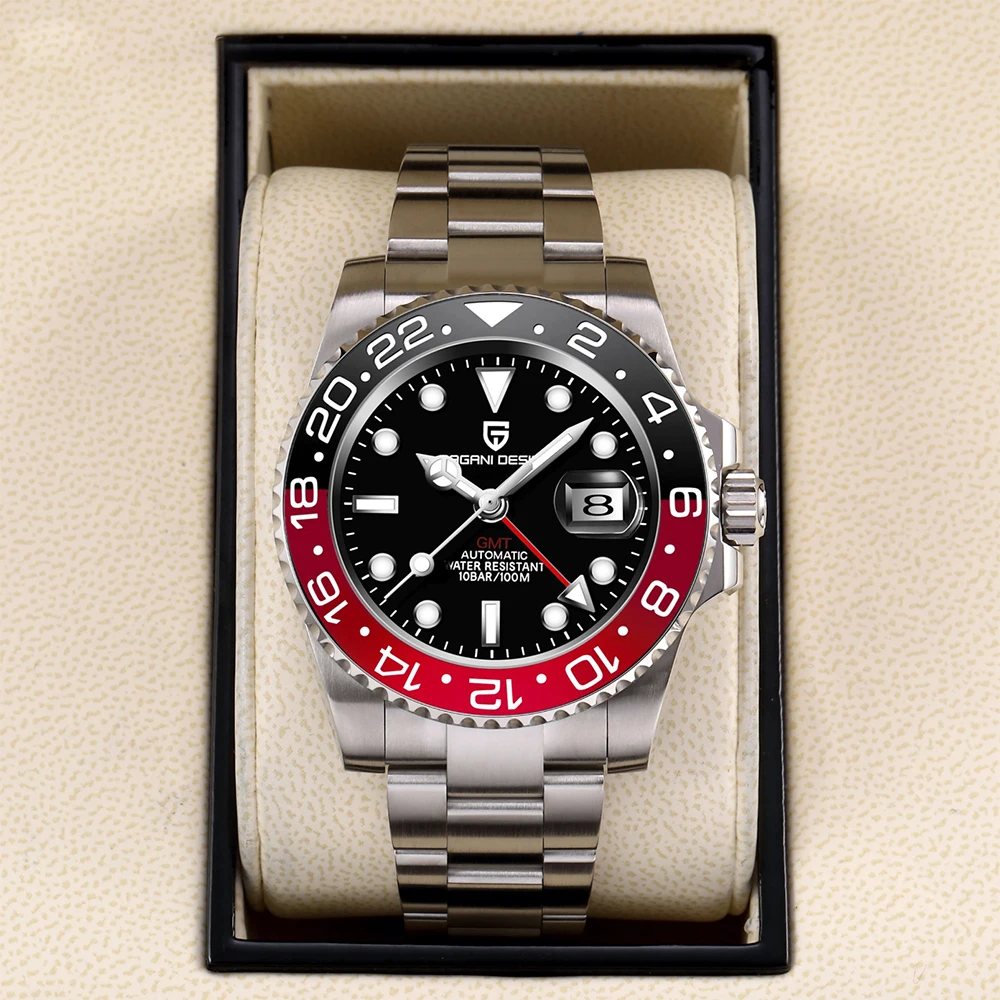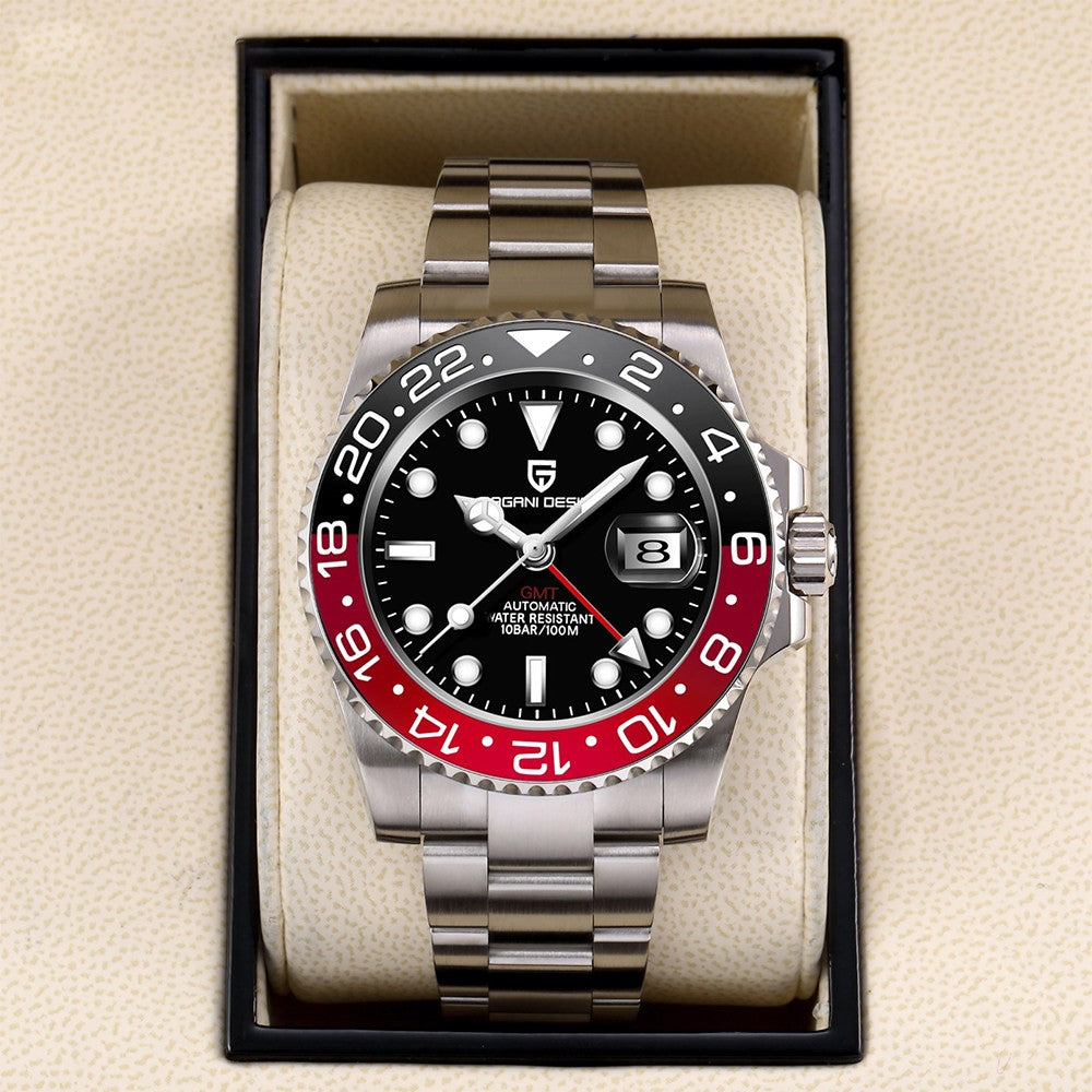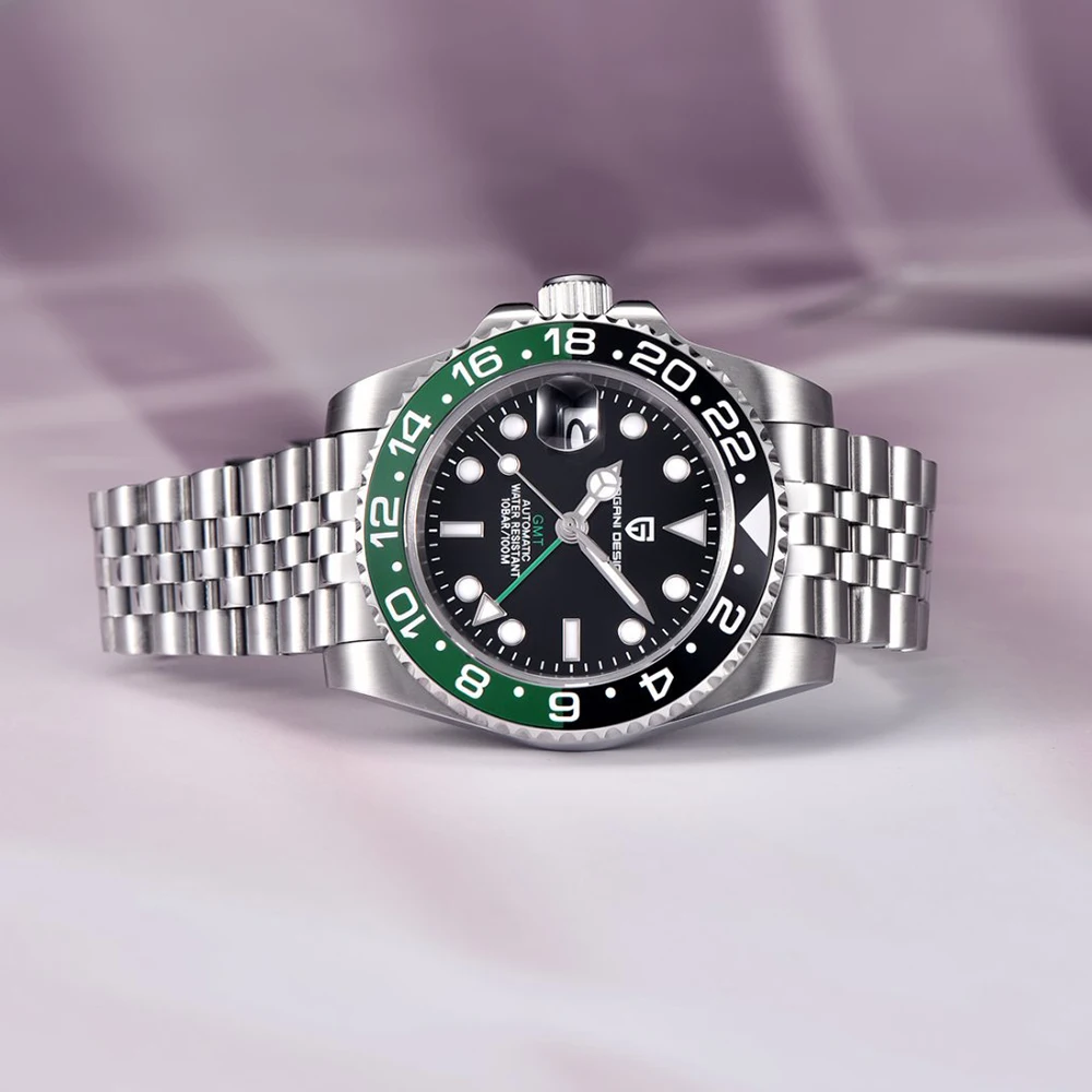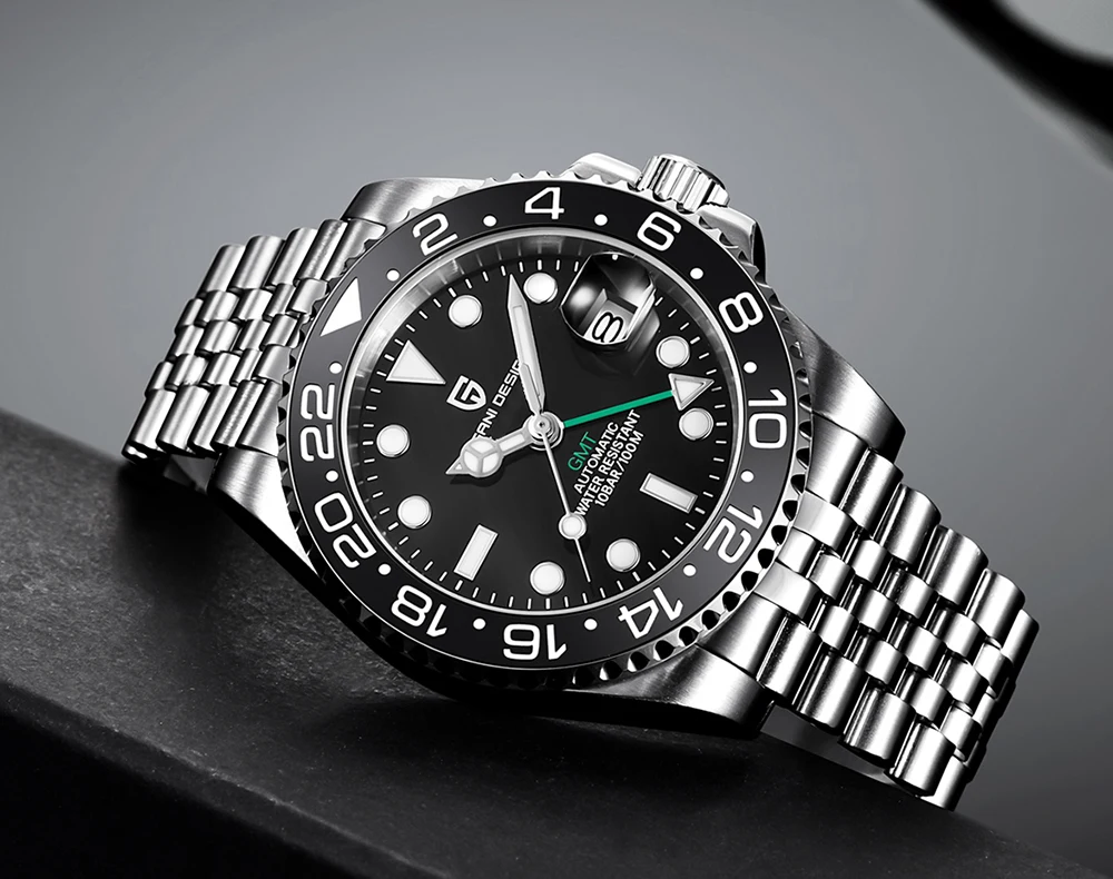 PAGANI DESIGN PD-1662 Luxury GMT Men Mechanical Wristwatch Sapphire Glass Stainless Steel 100M Waterproof Automatic Watches