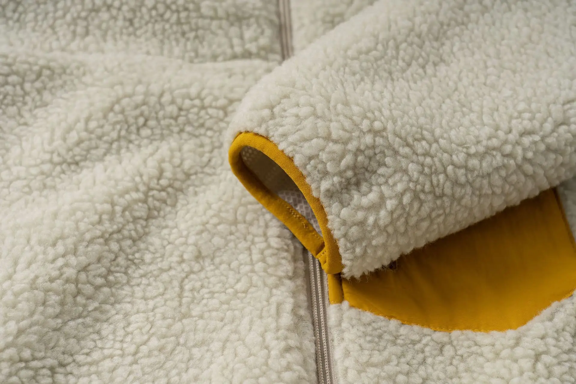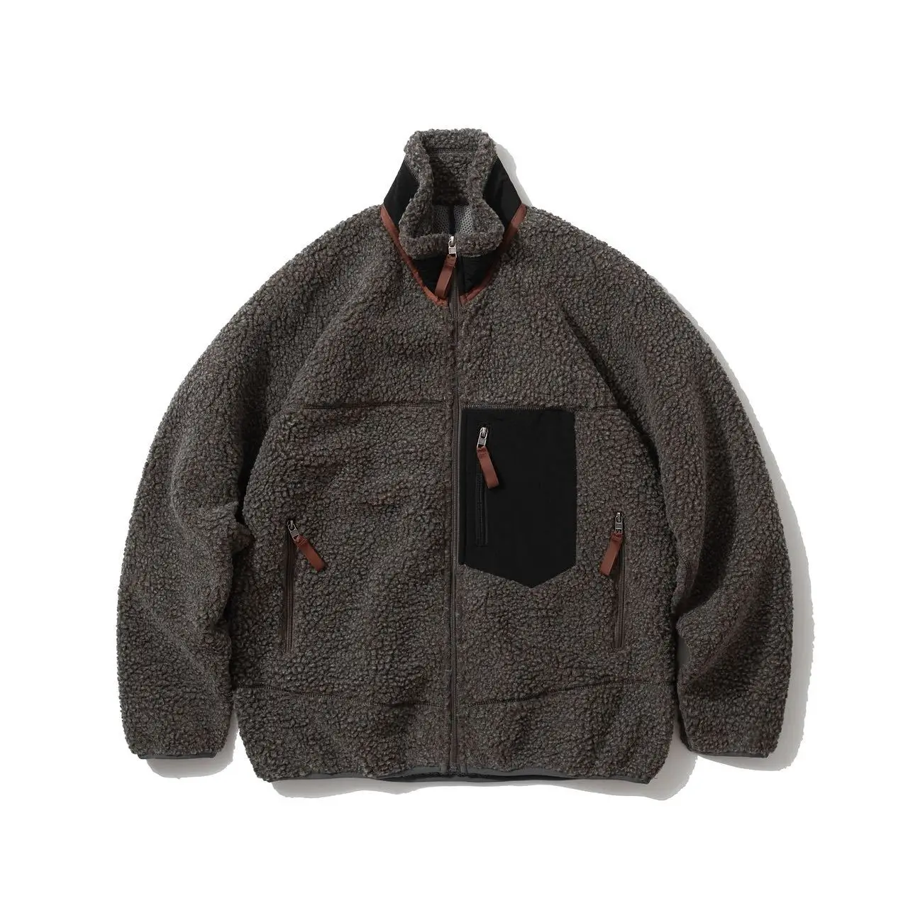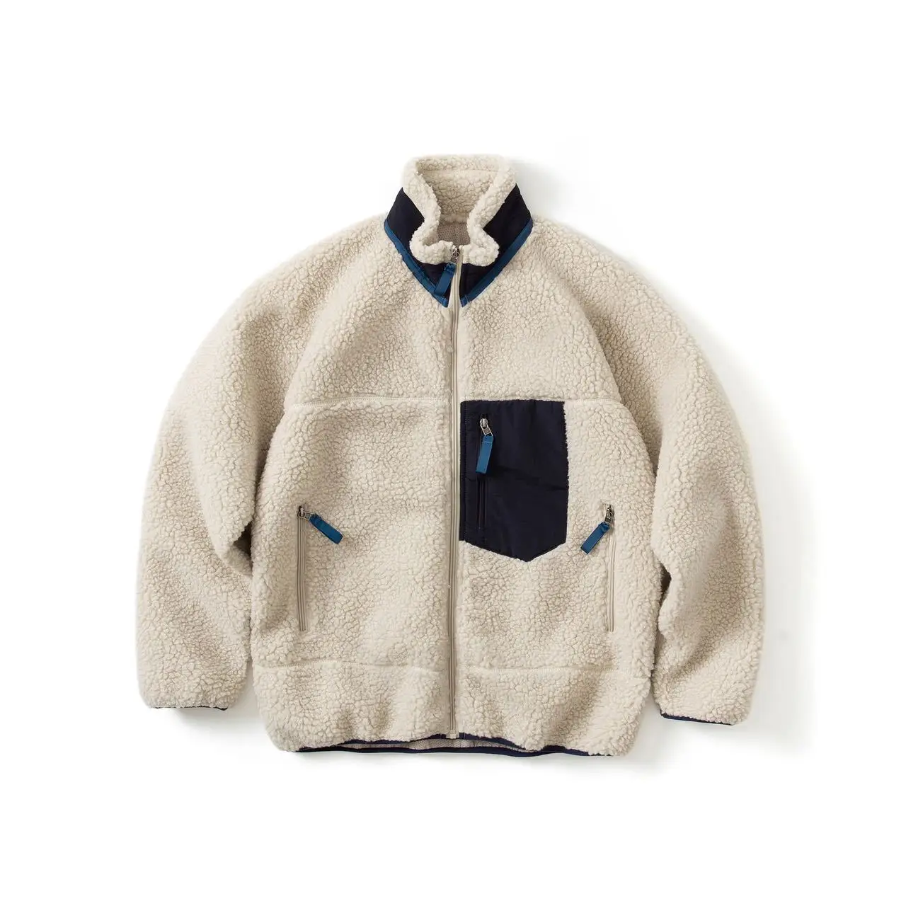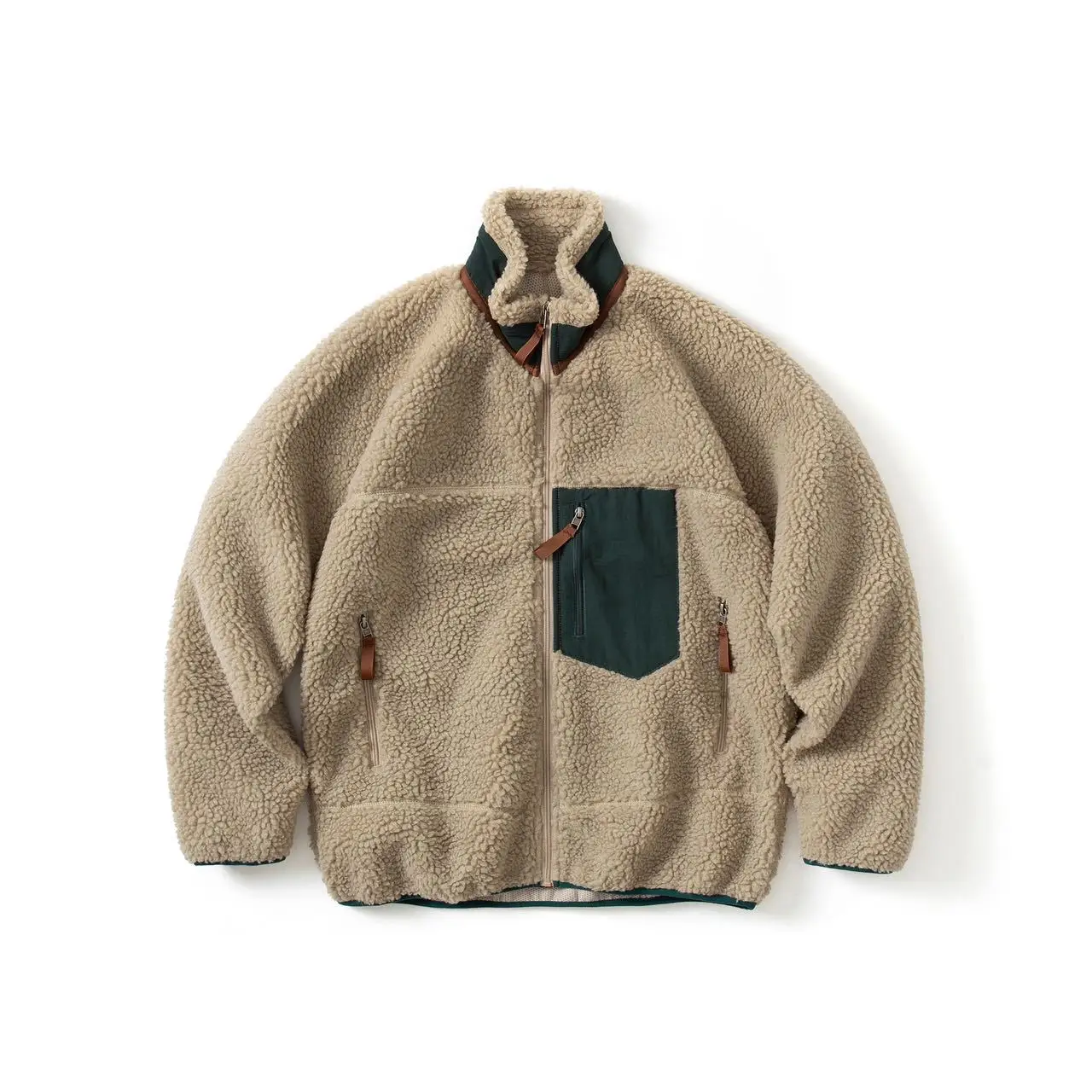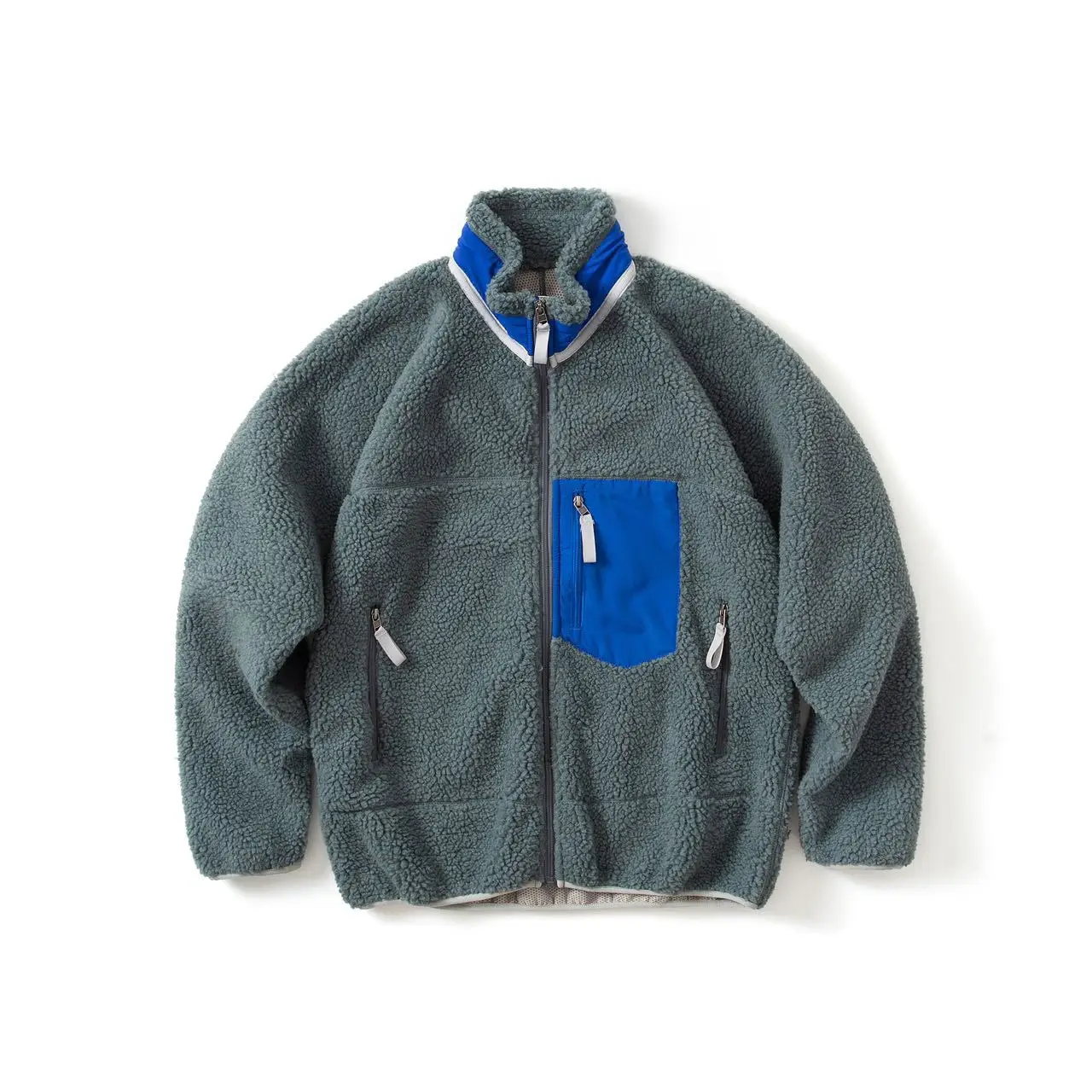 Pata Outdoor Windproof Hiking Fleece Jacket Imitation Lamb Wool Stand Collar Zipper Fleece Jacket Polar Fleece Warm Couple Coat
