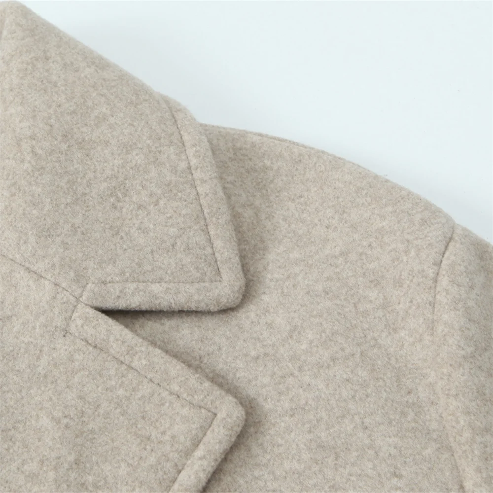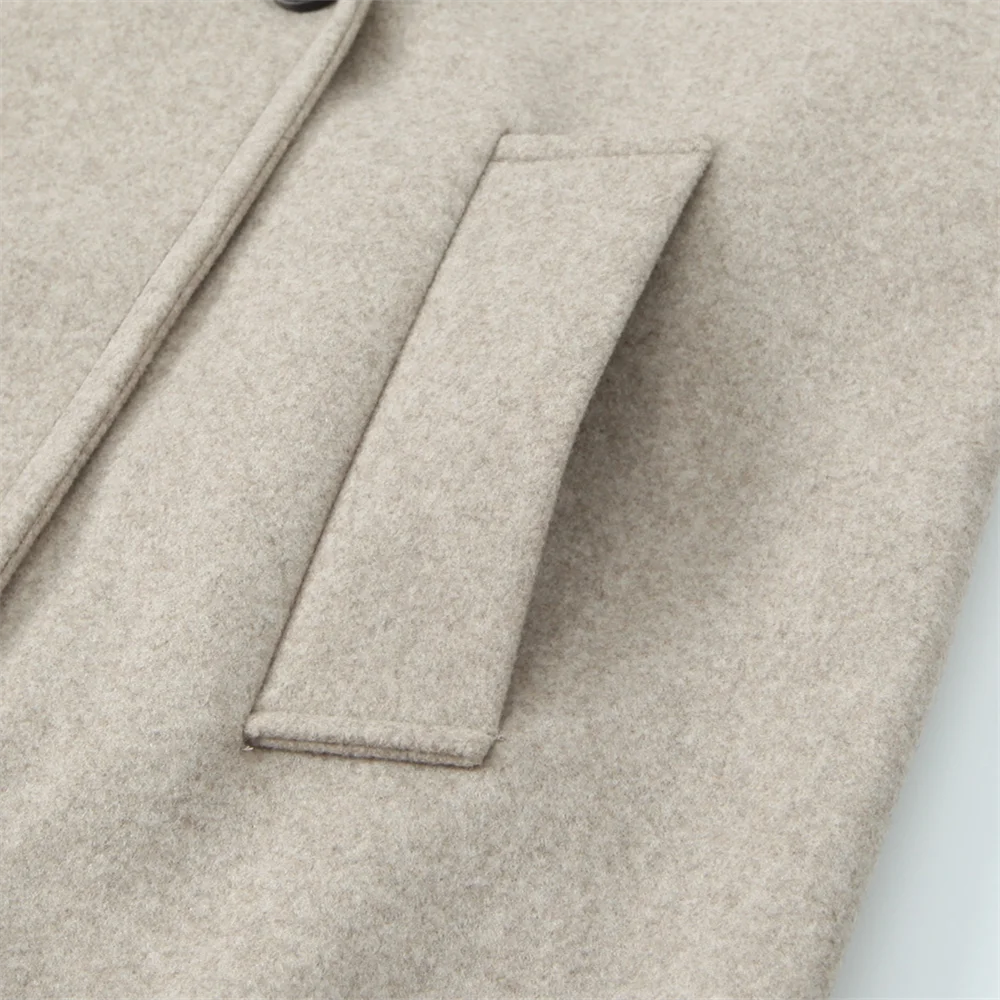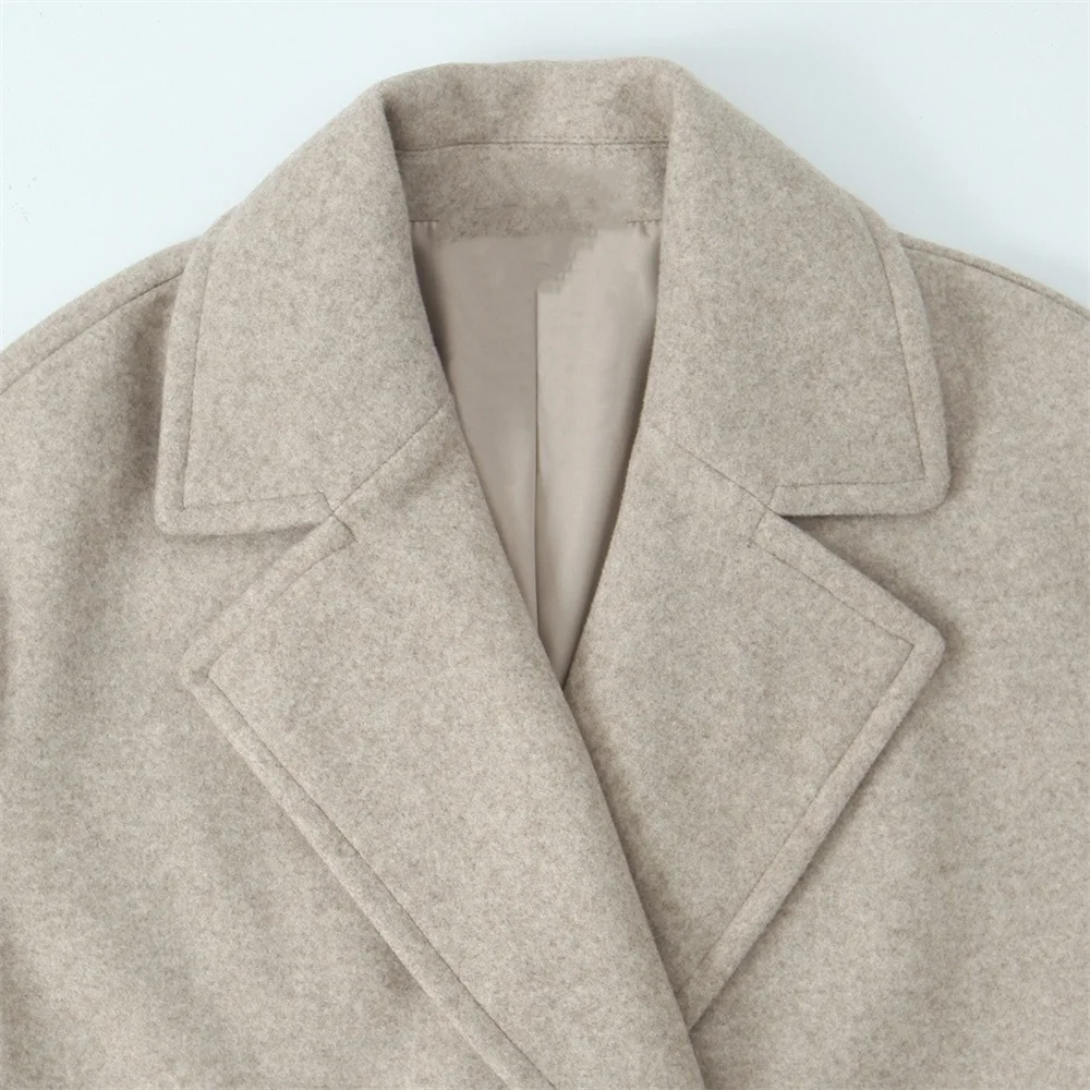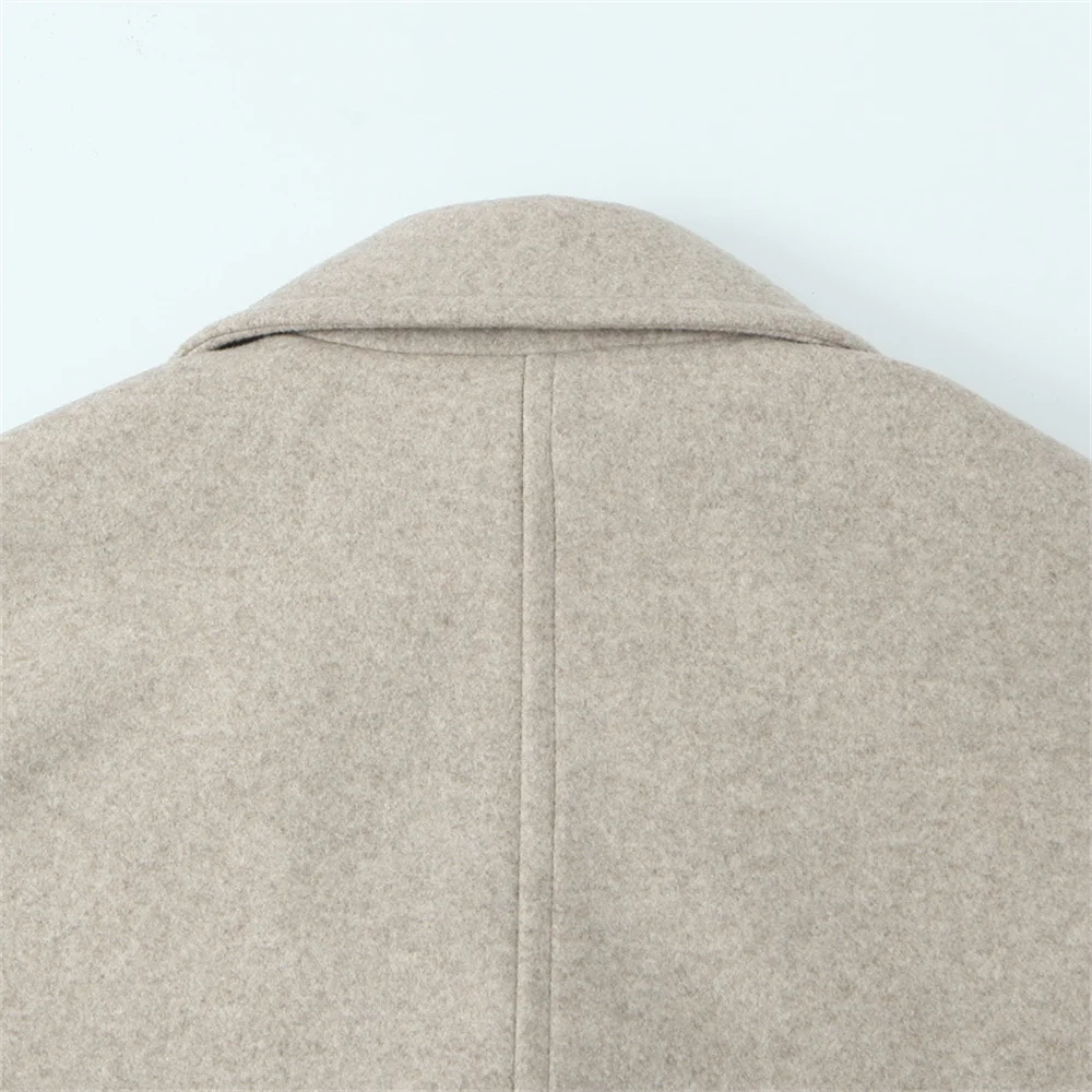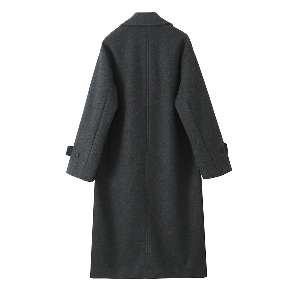 PB&ZA2024 Winter New Women's Fashion Simple Loose Warm Collar Soft Long Double breasted Woolen Coat Coat