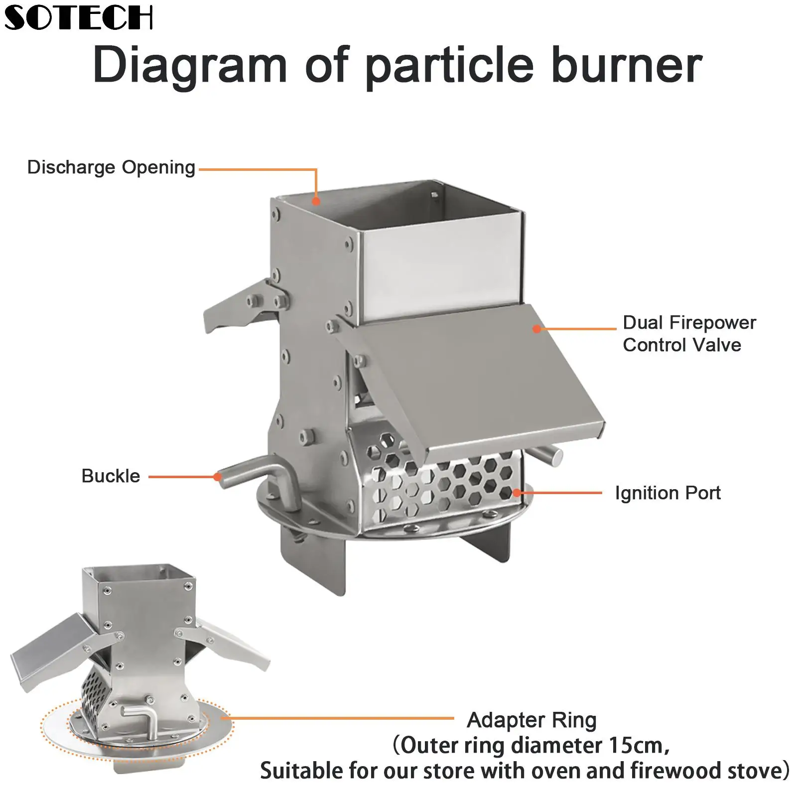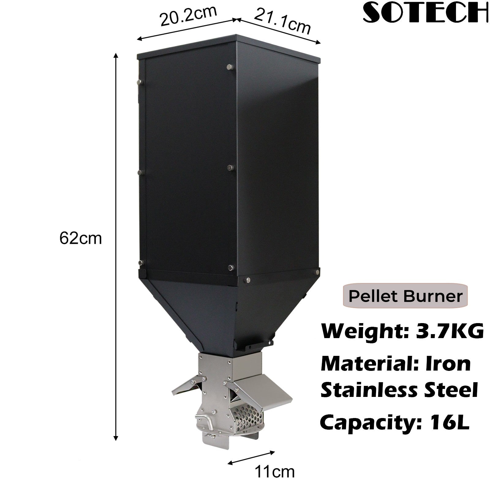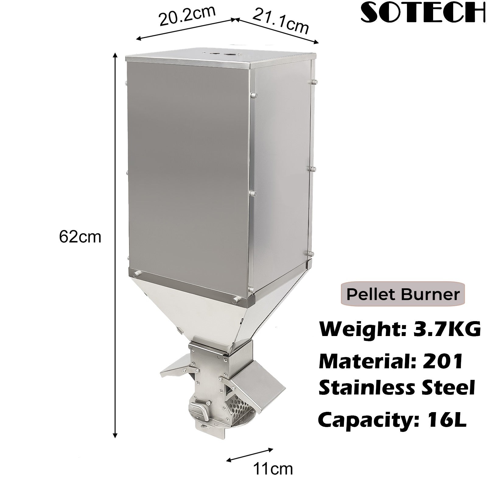 Pellet Burner 16L Storage Capacity Stainless Steel Firewood Stove Outdoor Camping Tent Heating Picnic Cooking
