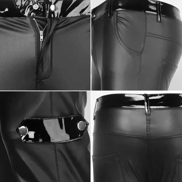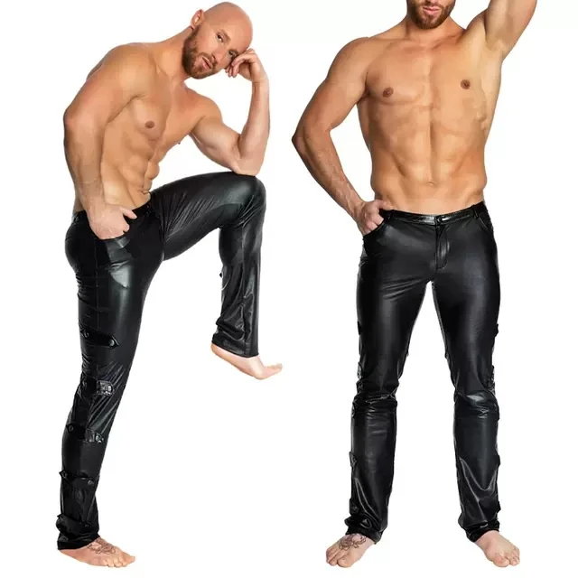 Performance Leather Pants Muscle Men's Slim Fit DJ Lead Dance Gogo ow off Club Bar Youth Trend Long Pants Pure Color