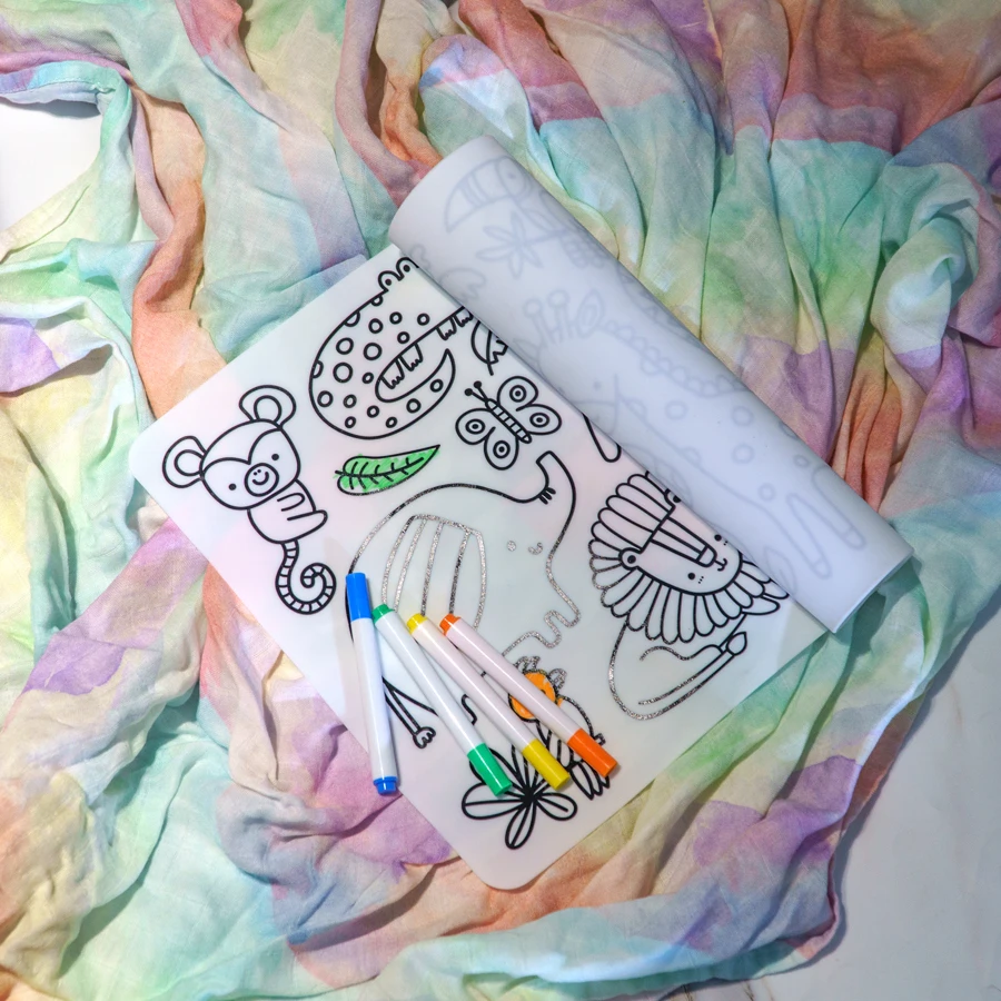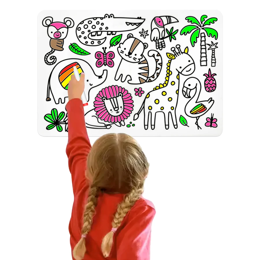 Personalized DIY Color Silicone Baby Placemats Cartoon Pattern Table Placemats Reusable Doodle Drawing Mat Baby Stuff