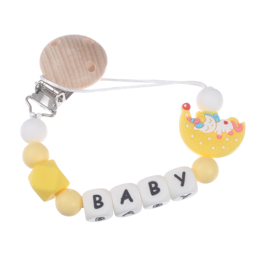 Personalized Name Baby Pacifier Clips Cartoon Moon Silicone Teether Nipple Chain For Nursing Chew Toys Baby Dummy Holder Chain