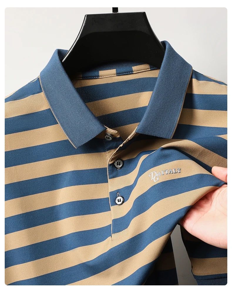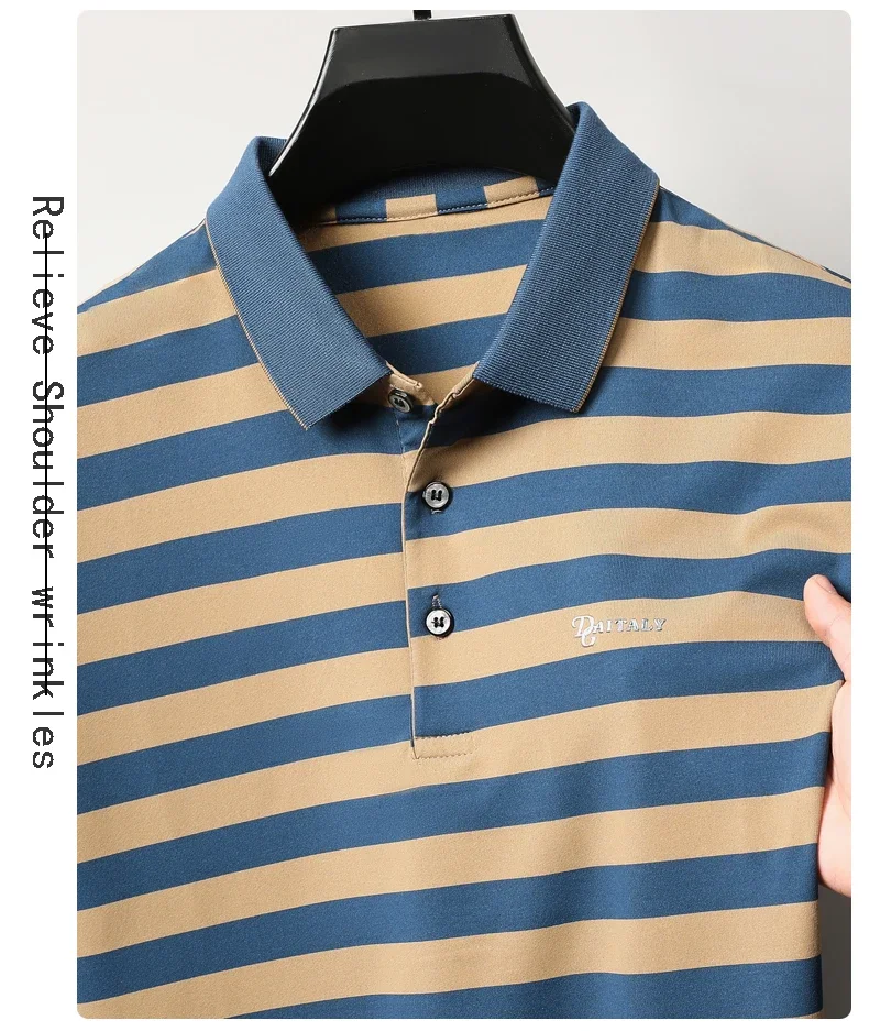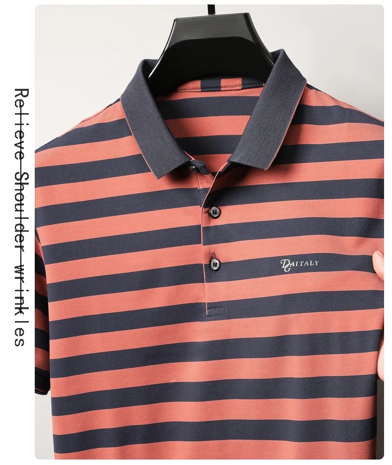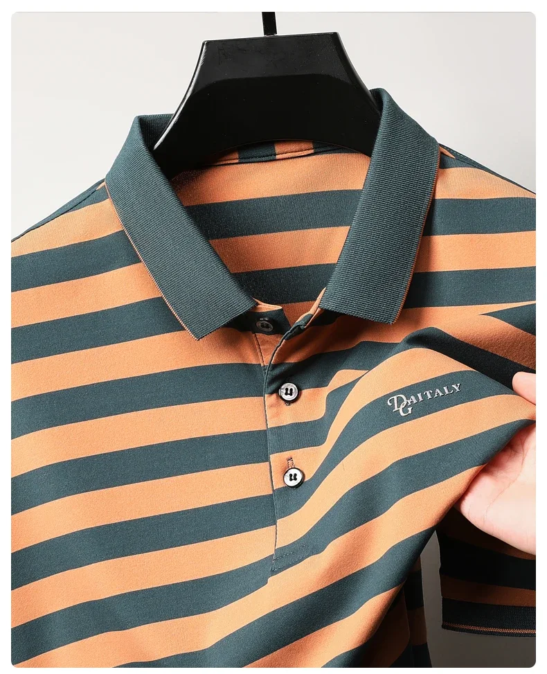 Personalized Striped Color Blocked Men's Short Sleeved Polo Shirt Fashion Brand Exquisite Embossed Summer Casual Collar T-shirt