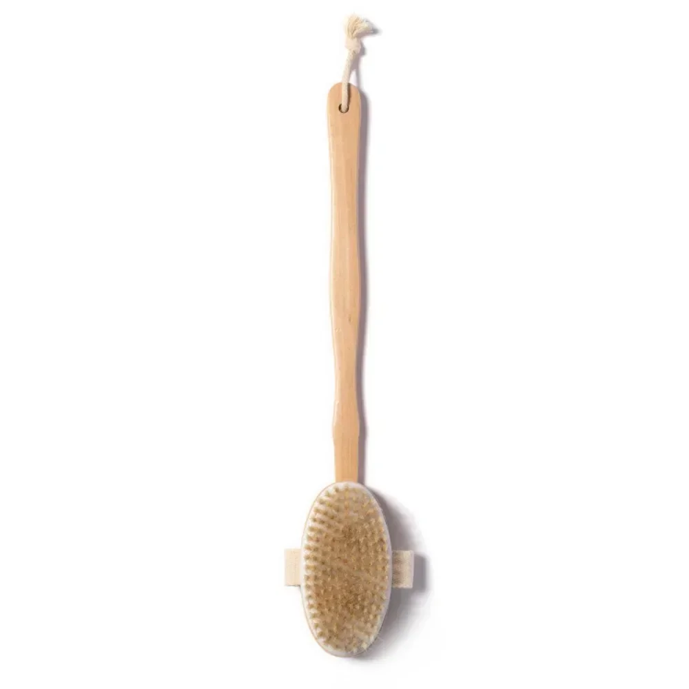 Wooden shower brush: Detachable soft bristled massage bath brush