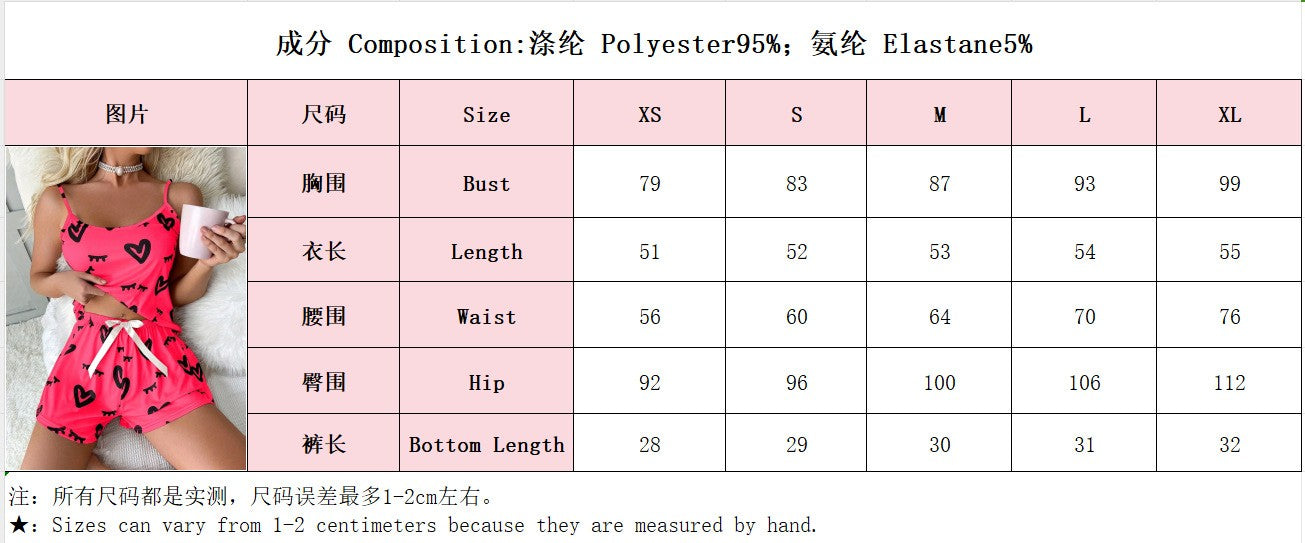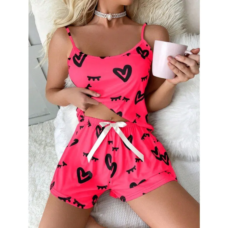 Pijama para Mujer 2 Piezas - Estampado de Corazón, Camisola + Pantalones Cortos | Ropa de Dormir Veraniega Bonita y Cómoda para