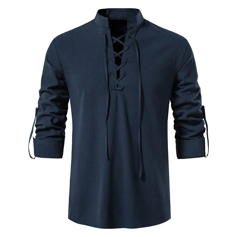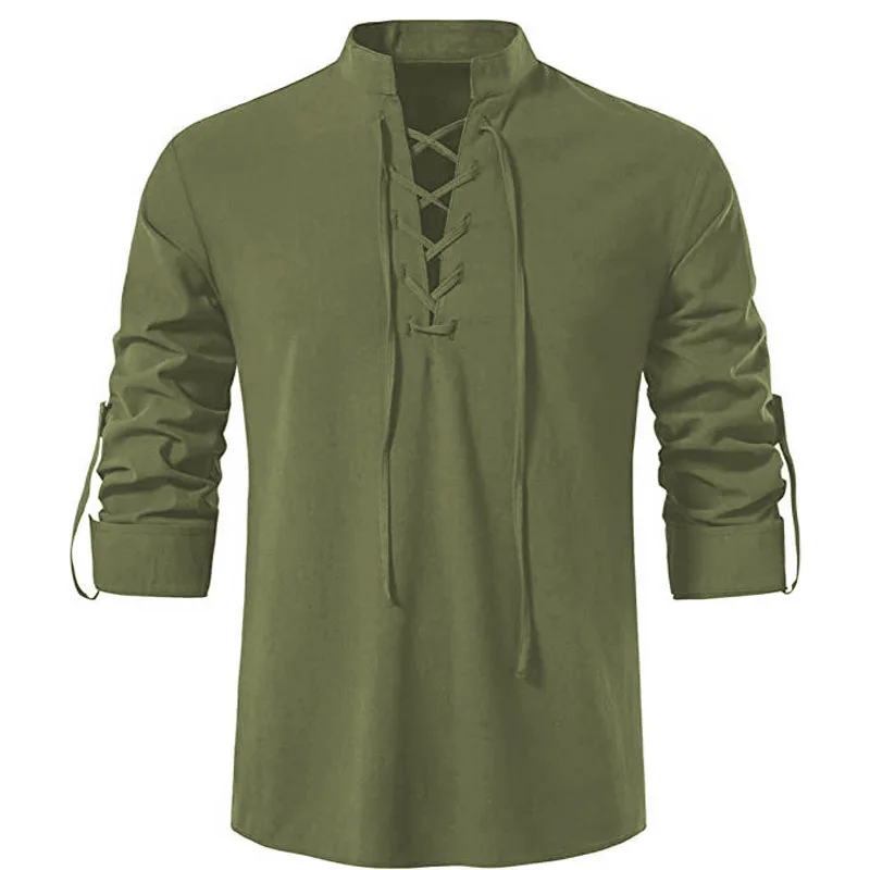 Pirate Shirt Viking Retro Renaissance Medieval Gothic Victorian Halloween Costume Casual Cotton Linen Lace Up Hippie Men's Shirt