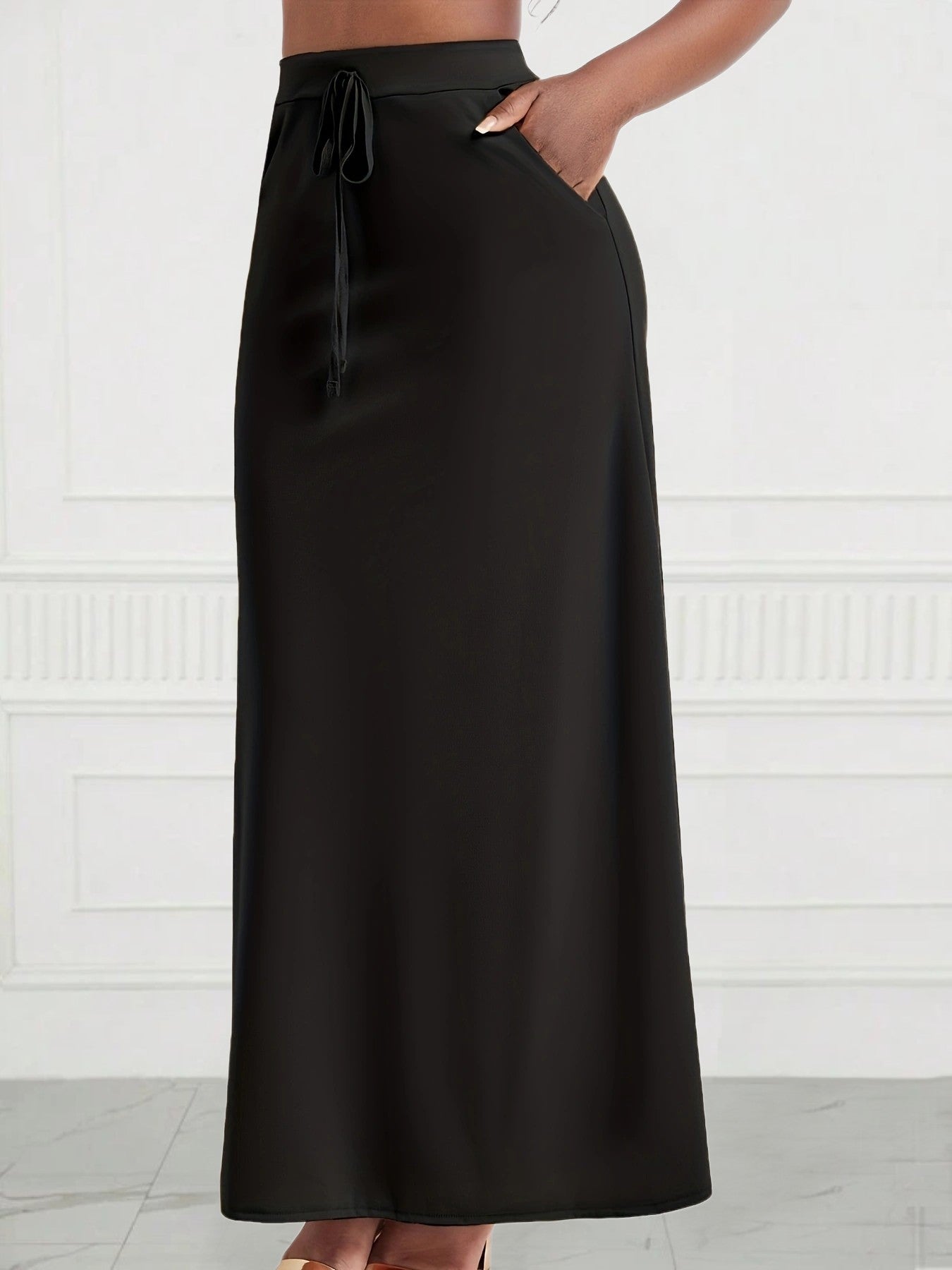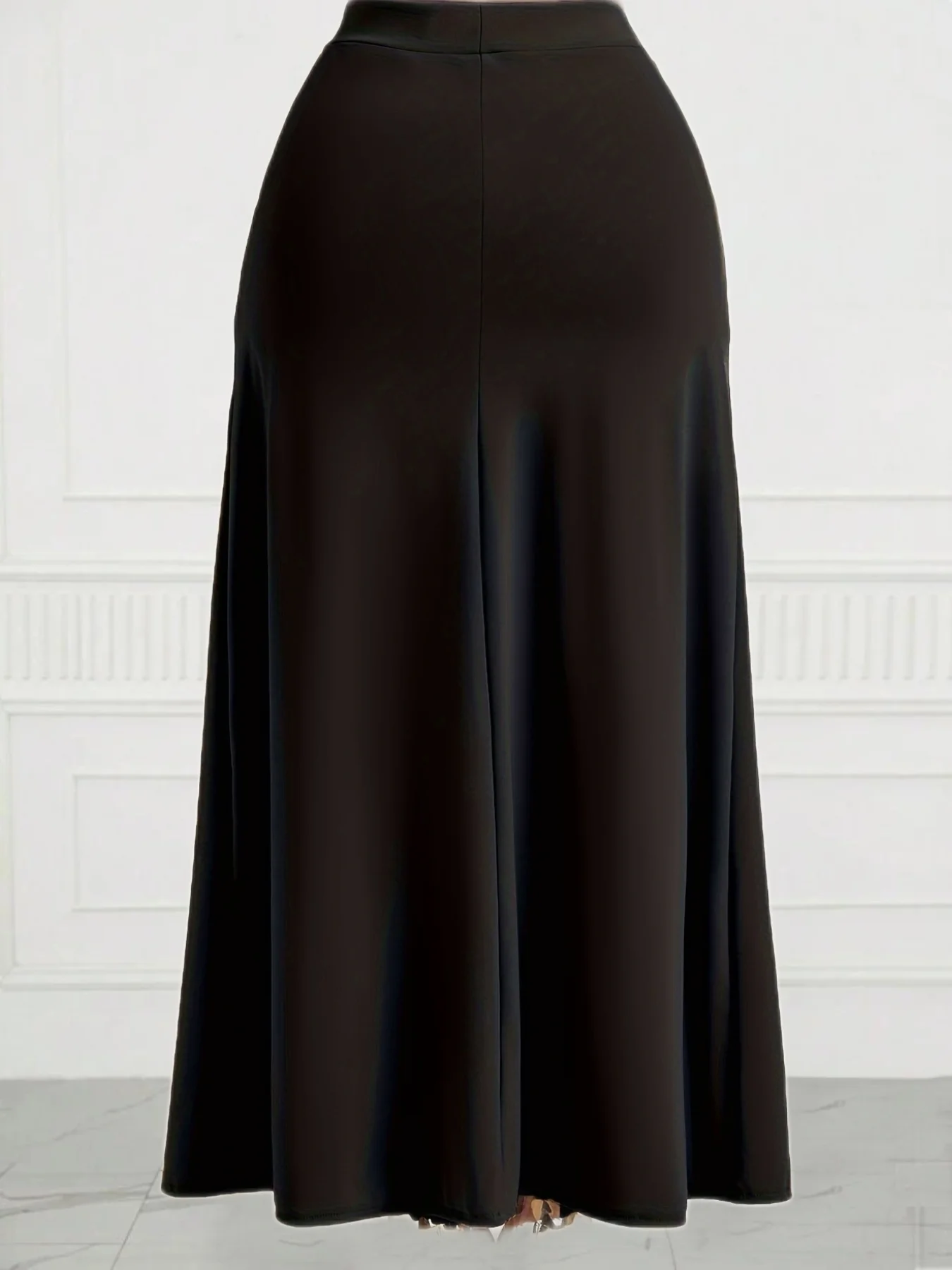 Plus Size 1XL-5XL Pocket A-Line Skirt Women's High Waisted Trendy Knee Length Ladies Clothing Tight Skirt