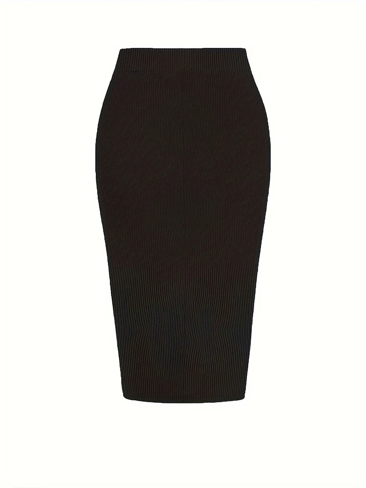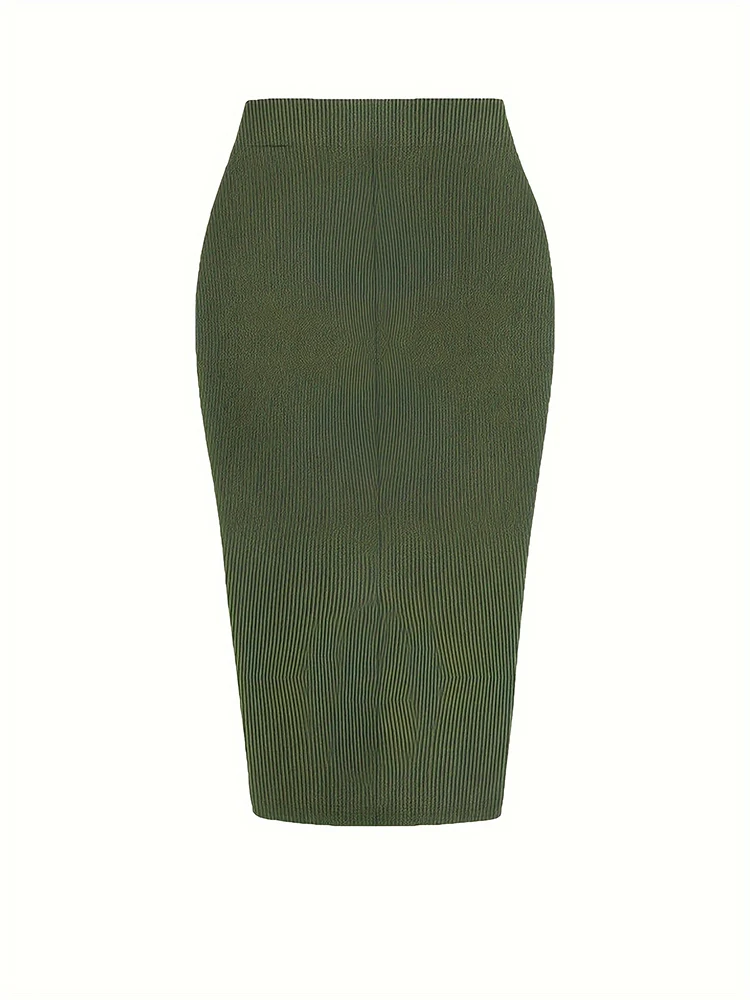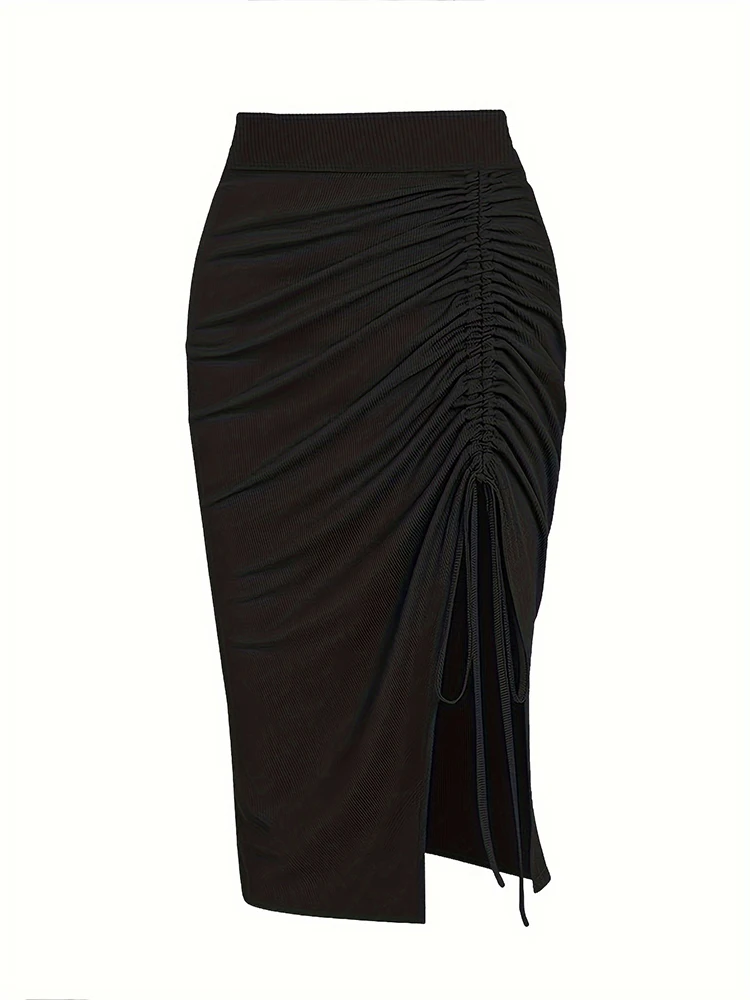 Plus Size 2024 Spring/Summer New Solid Ruched Drawstring Split Skirt, Casual Bodycon Stretchy Skirt For Spring & Summer, Women