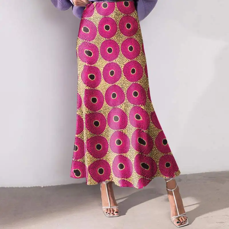 Plus Size 5XL VONDA Women Office Maxi Long Skirts 2024 Fashion Elegant Printed Skirts Casual Loose Ruffle Party Bottoms Baggy
