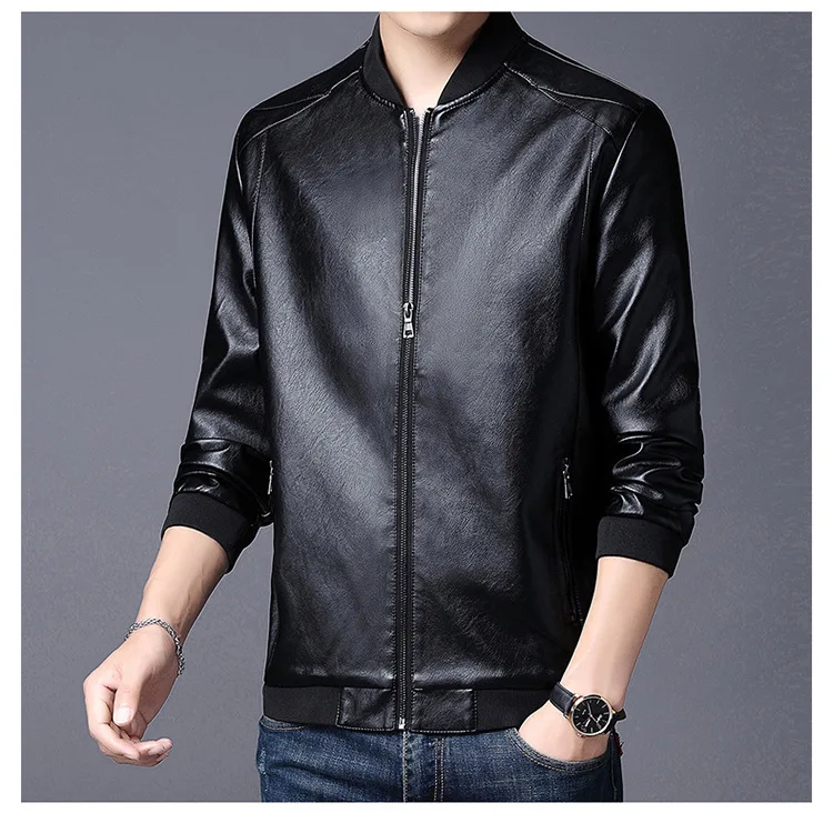 Plus Size 8XL Trendy Men's PU Leather Jacket Stand Collar Motorcycle Coat Casual Biker Jacket Men's Fashion Outerwear Streetwear