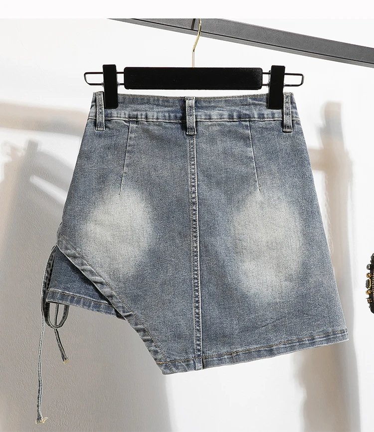 Plus Size Denim Skirt For Women Summer 2024 New High Waisted Mini Blue Jeans Skirts With Lining Korean Fashion Mini Skirt Woman