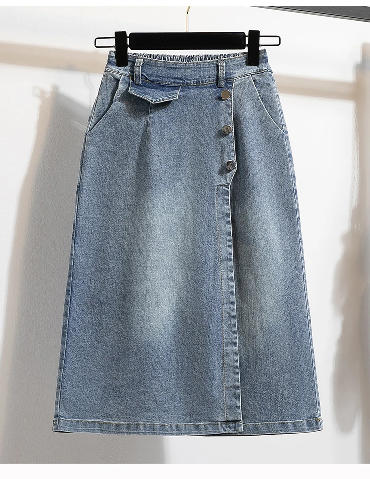 Plus Size Denim Skirt Women Autumn 2024 New High Elastic Waist Blue Color Jeans Skirts With Lining Korean Style Casual Skirt