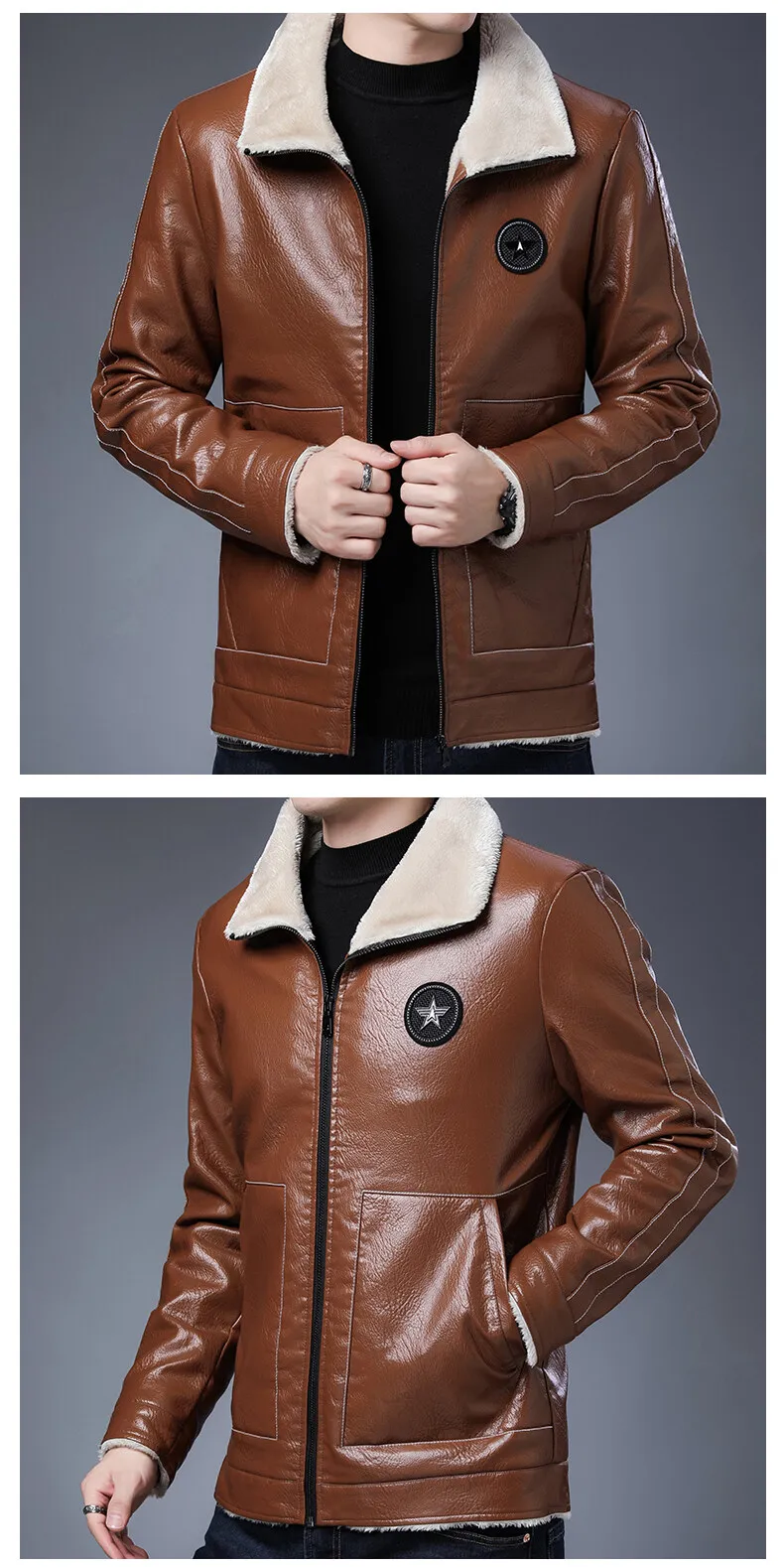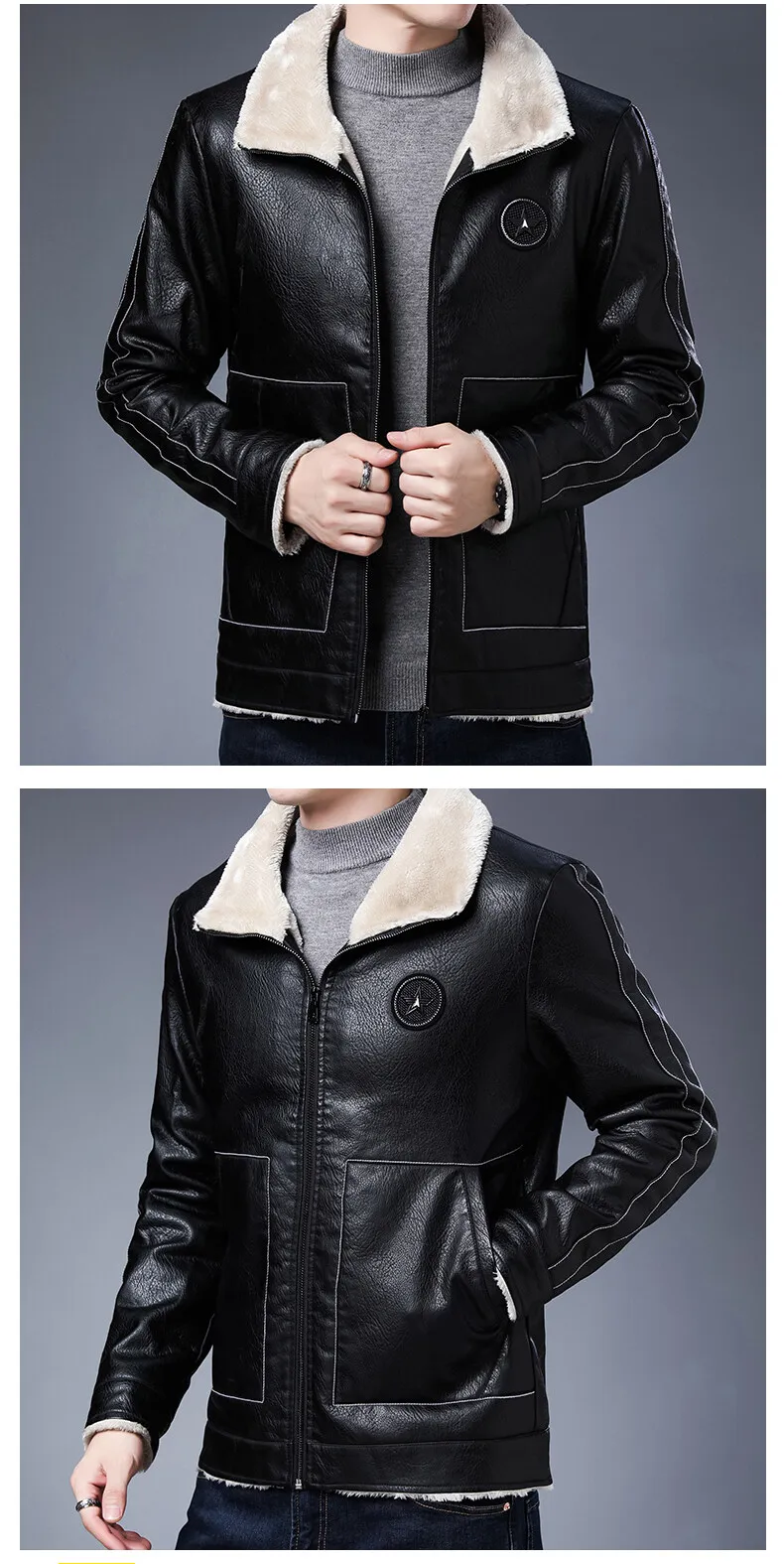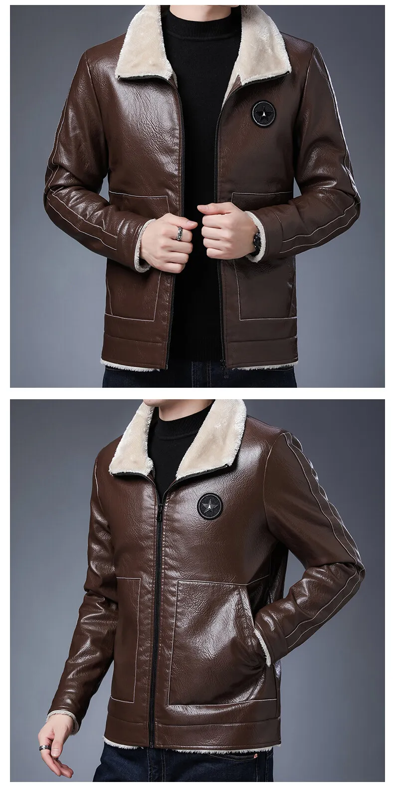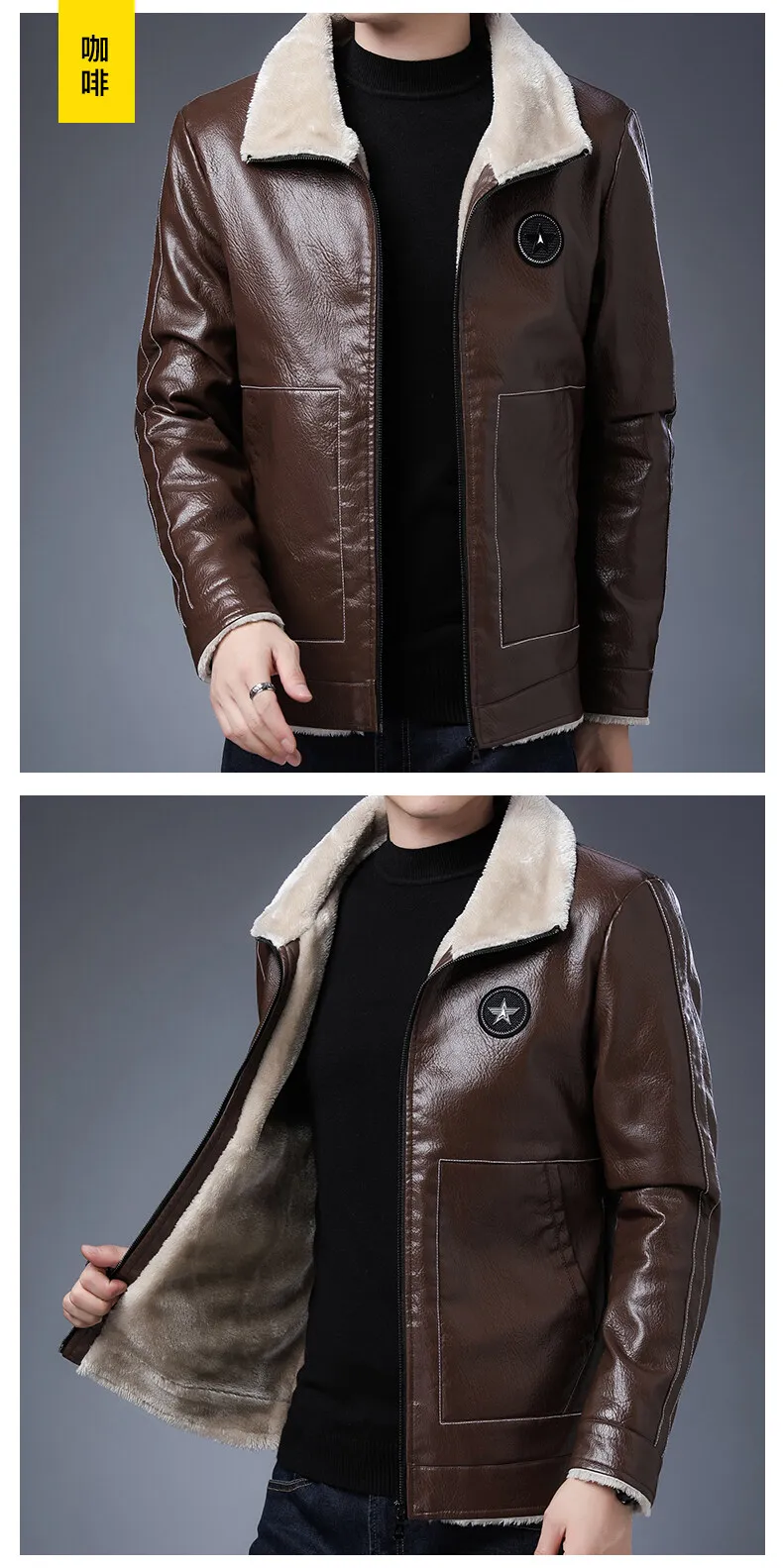 Plus Size Fur Collar Men's Leather Jackets Male Casual Plus Velvet Leather Jacket Thickened Style Leather Fashion Men Outerwear