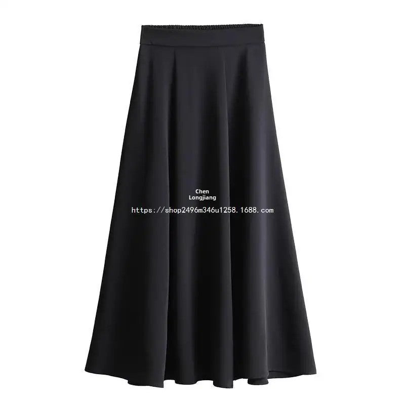 Plus Size High-waisted Slimming Black Draped Skirt Medium-length Umbrella Skirt For Women Thinning A- line Body Shaper