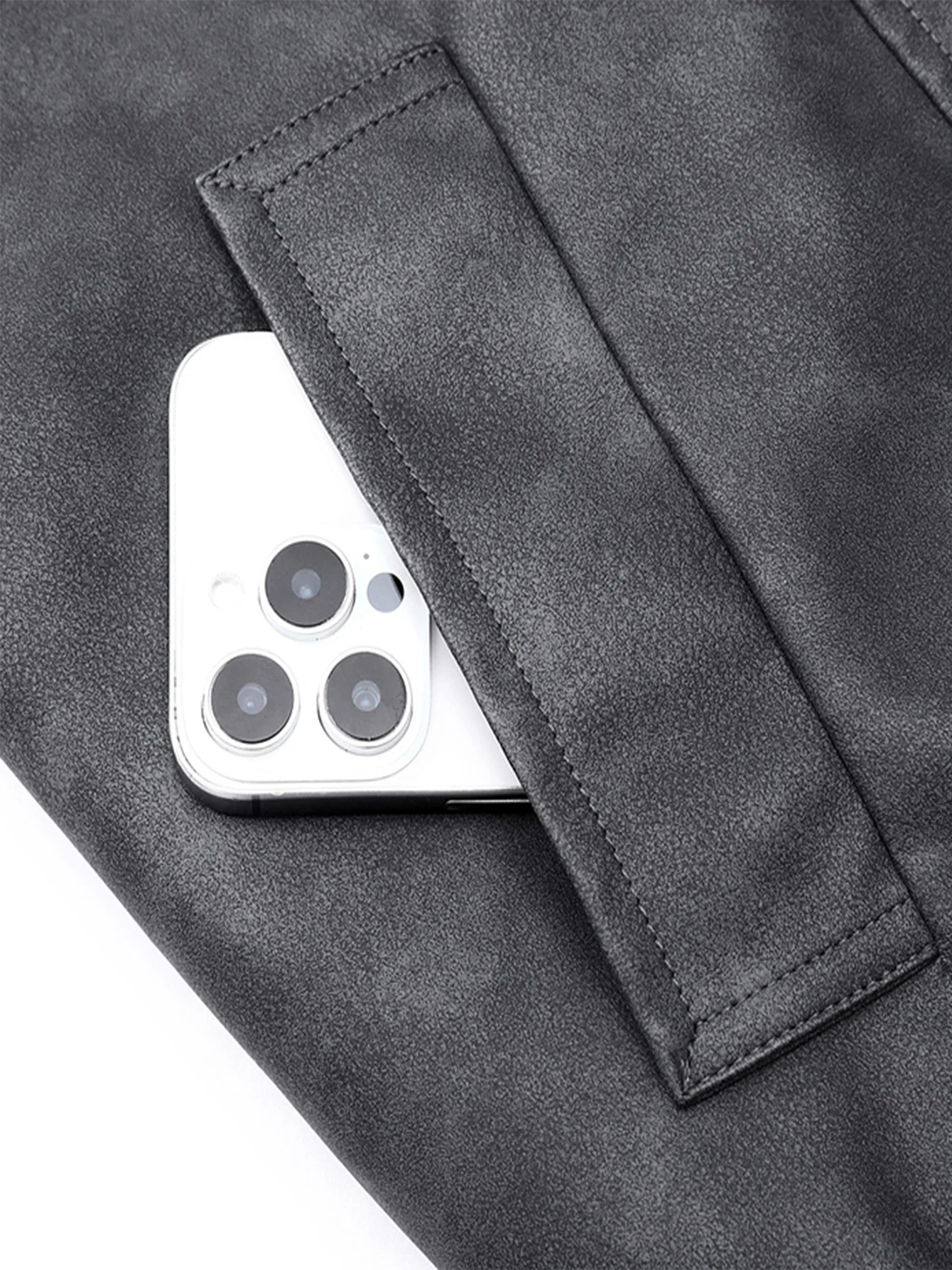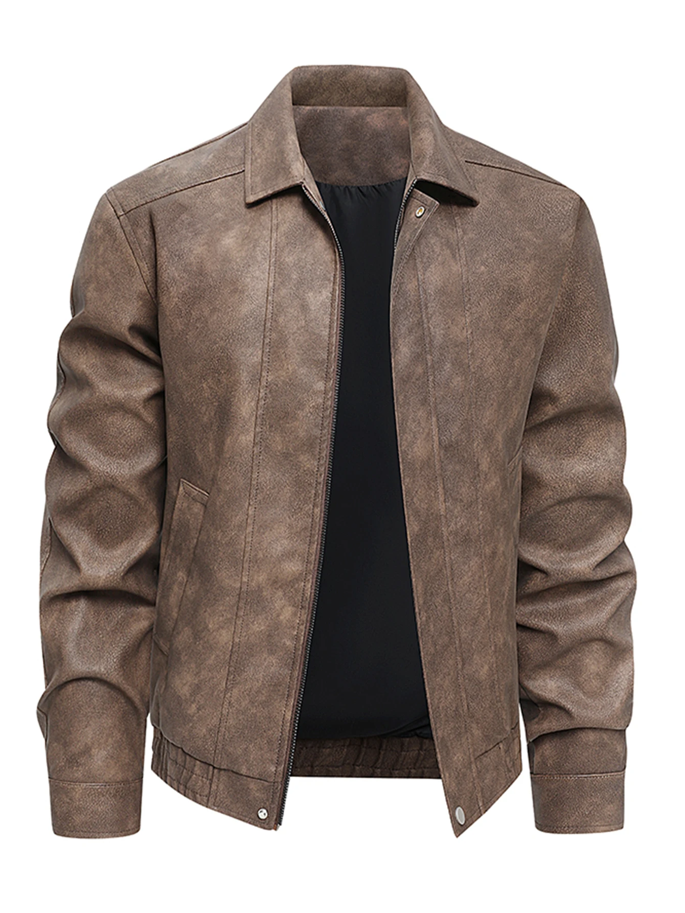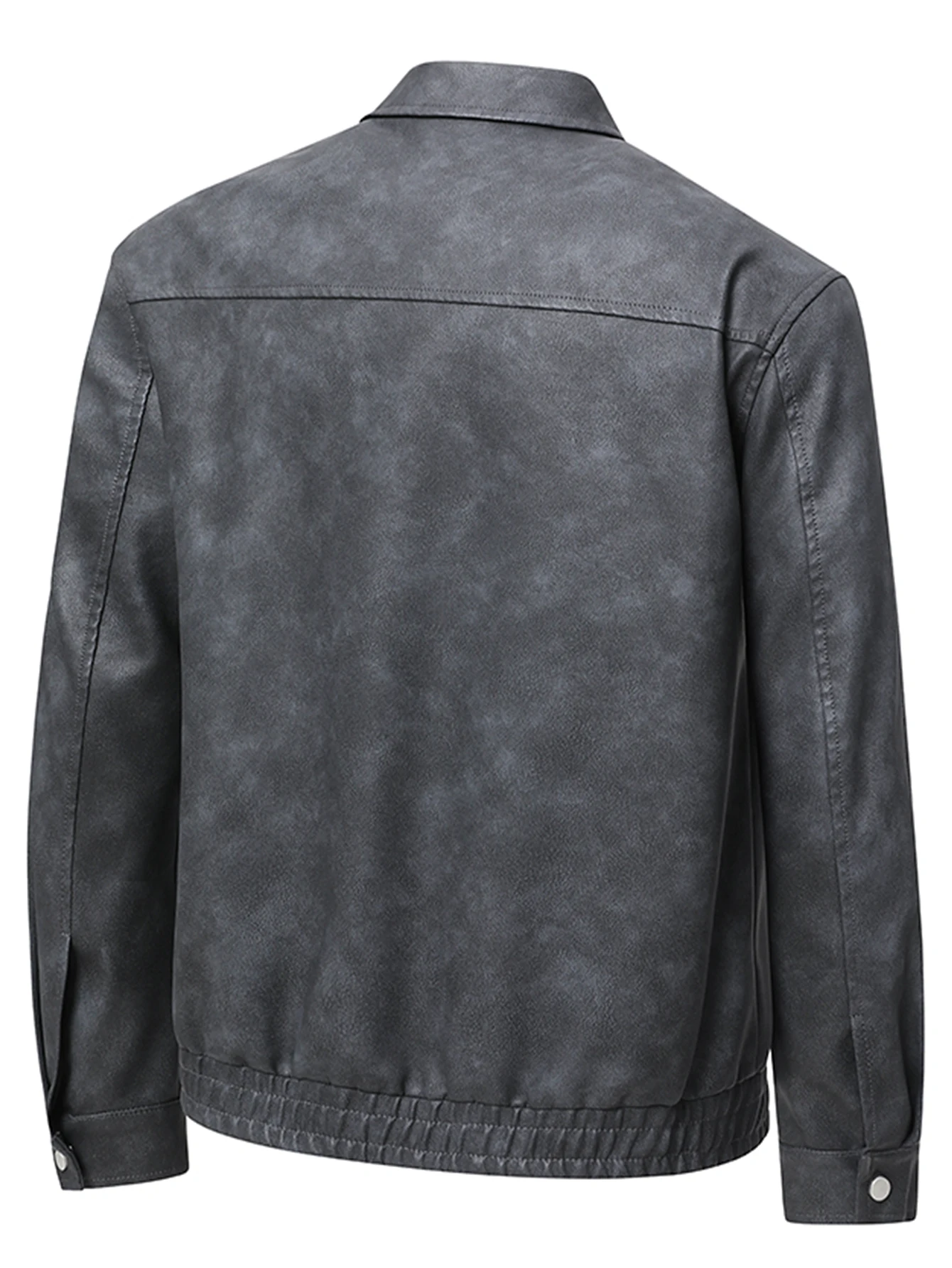 Plus Size Men's Casual Loose Fit Turndown Collar Motorcycle PU Leather Jacket, Suitable For Autumn, Zipper Front