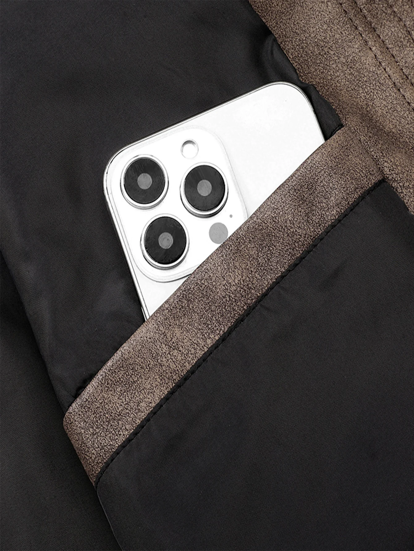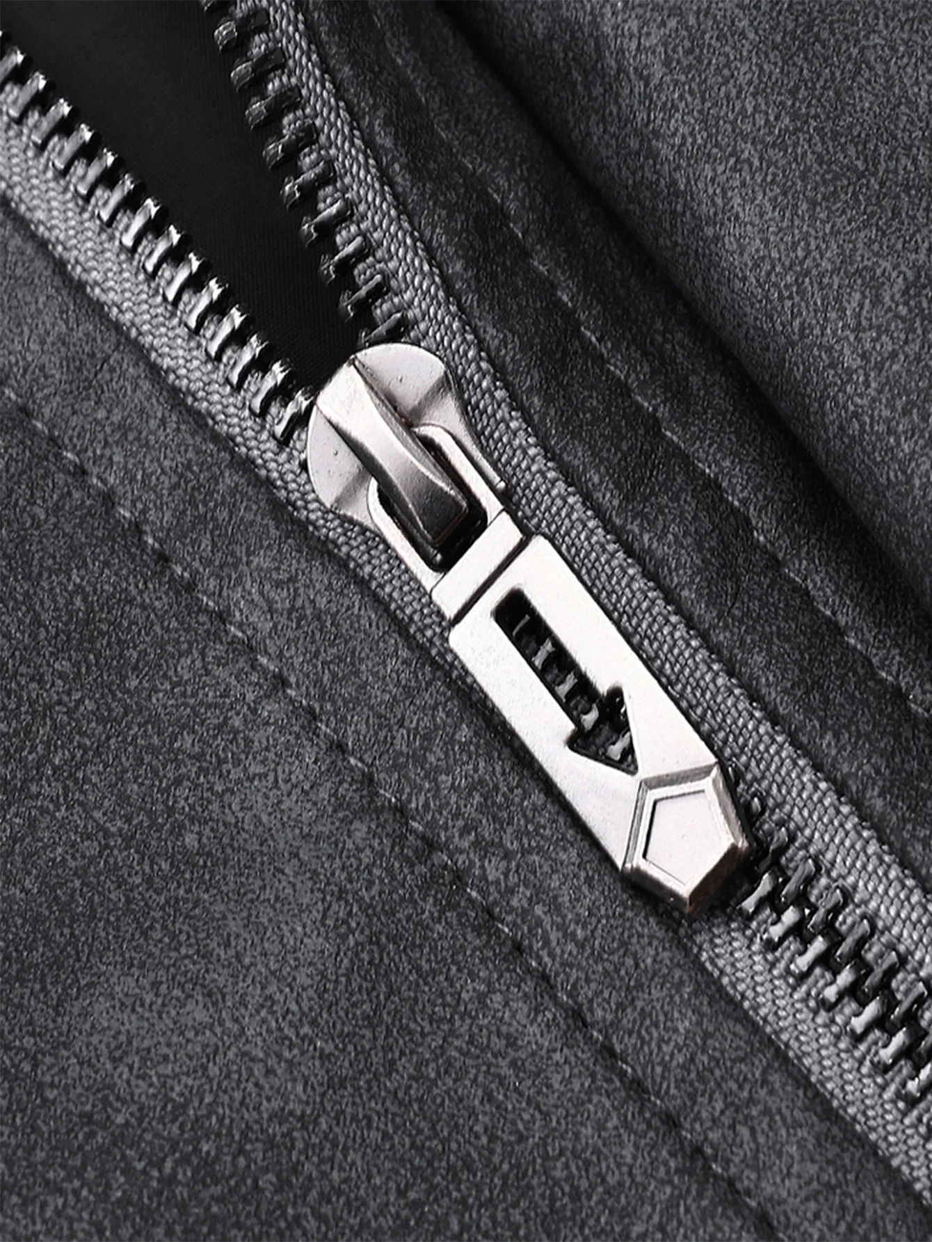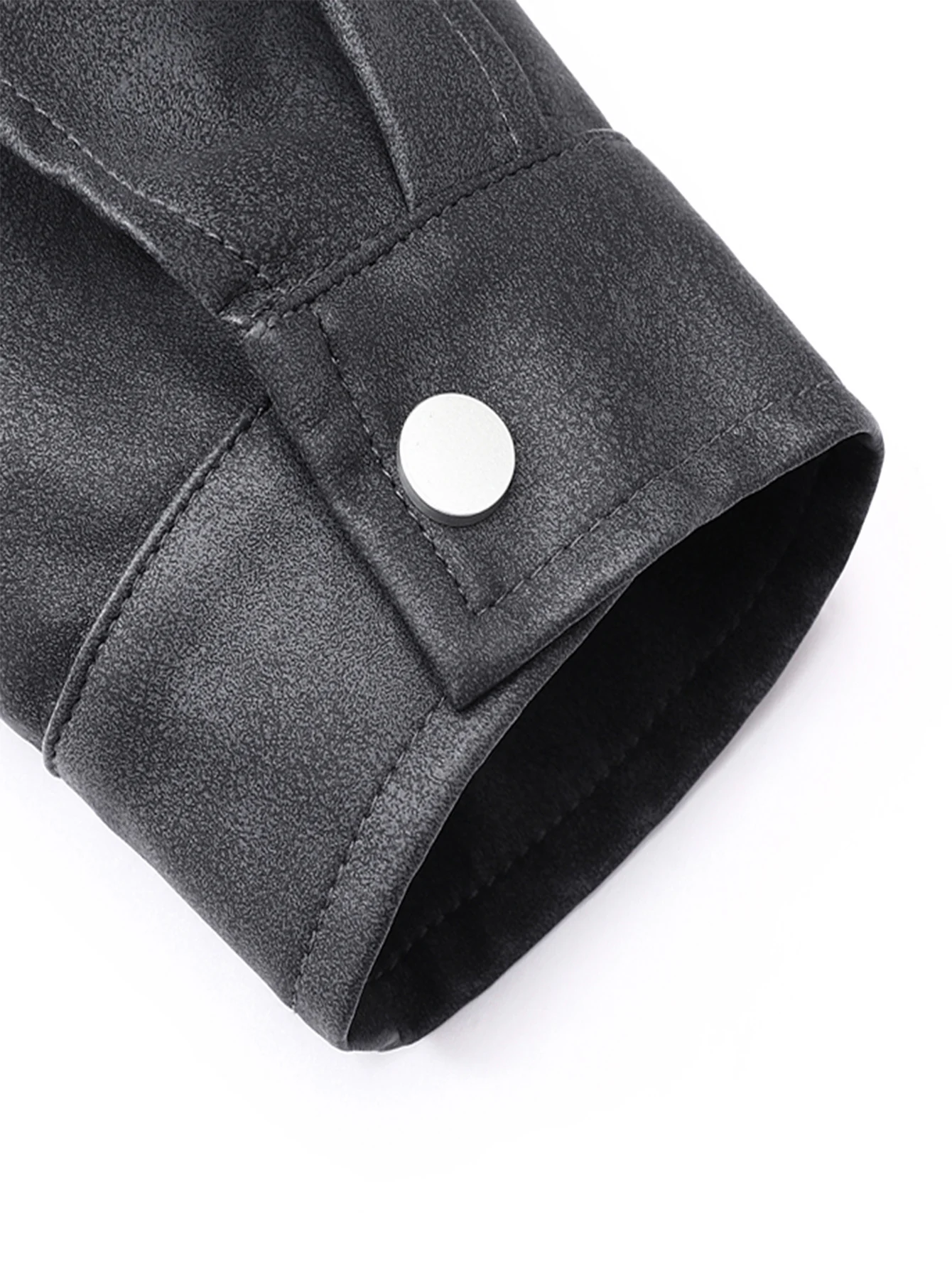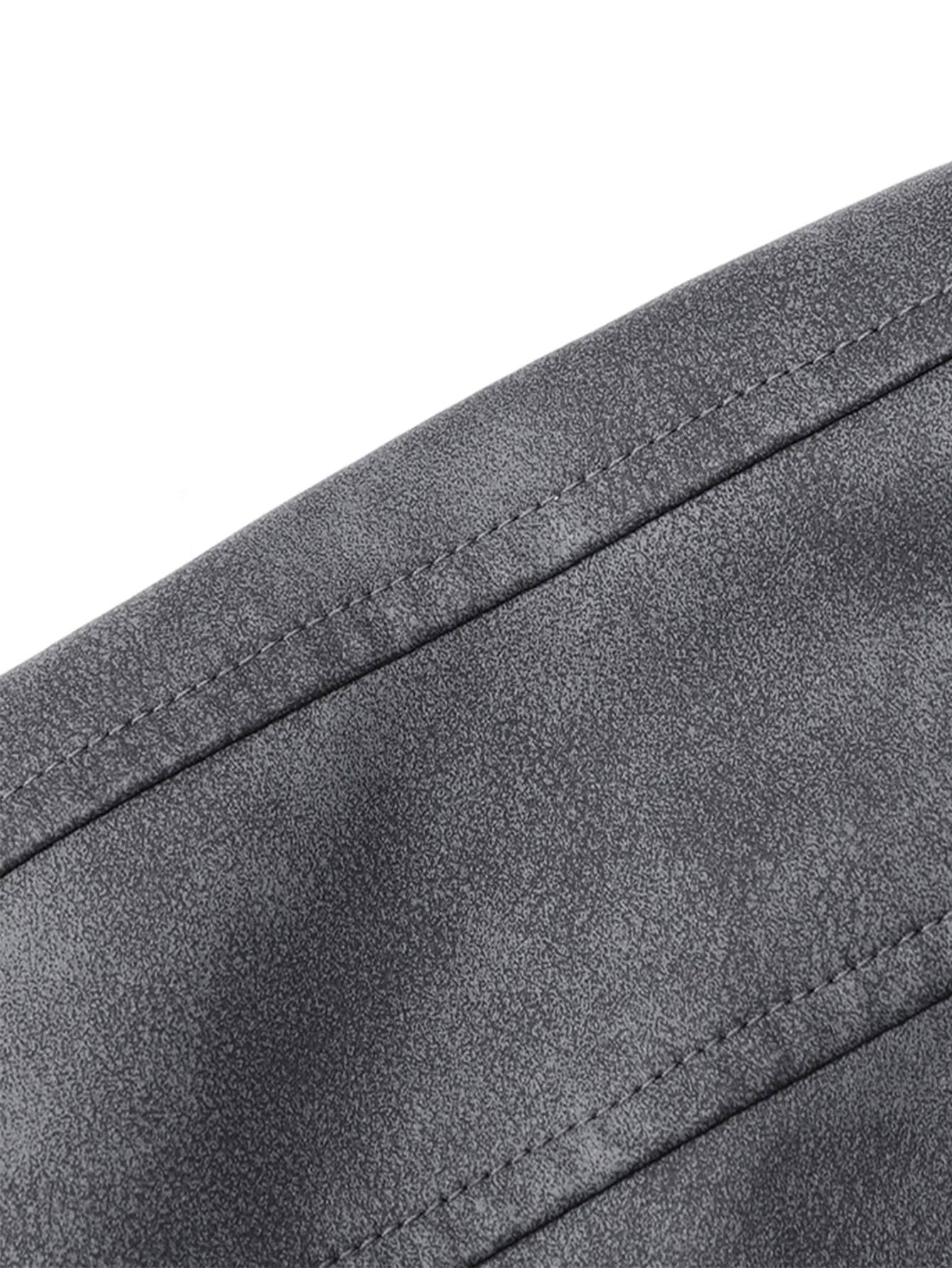 Plus Size Men's Casual Loose Fit Turndown Collar Motorcycle PU Leather Jacket, Suitable For Autumn, Zipper Front