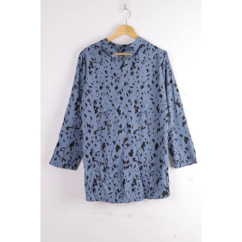Plus Size New Elegant Women's Loose Long Sleeve Shirt Half High Collar Leopard Print Versatile Shirt Commute Style