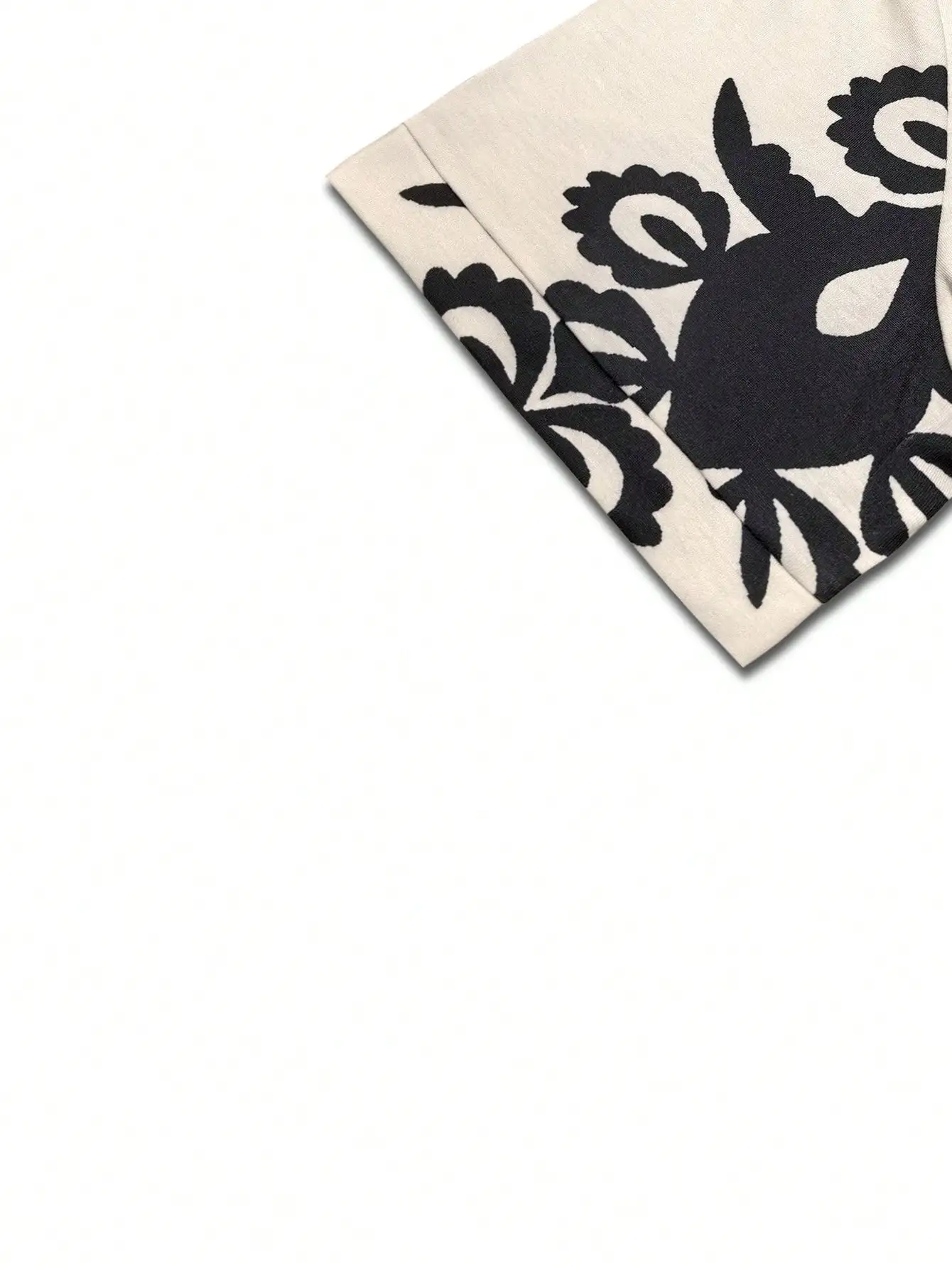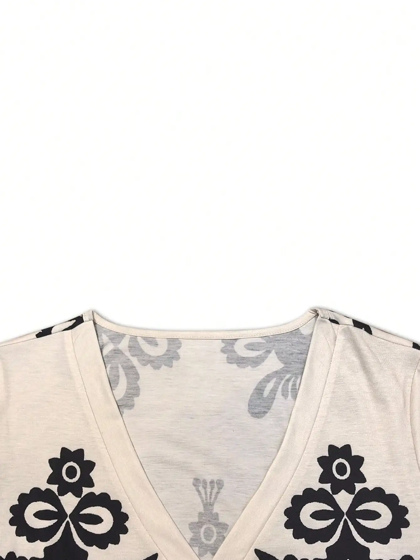 Plus size, women's fashionable short-sleeved V-neck dress, retro ethnic style fashion women's dress - elastic