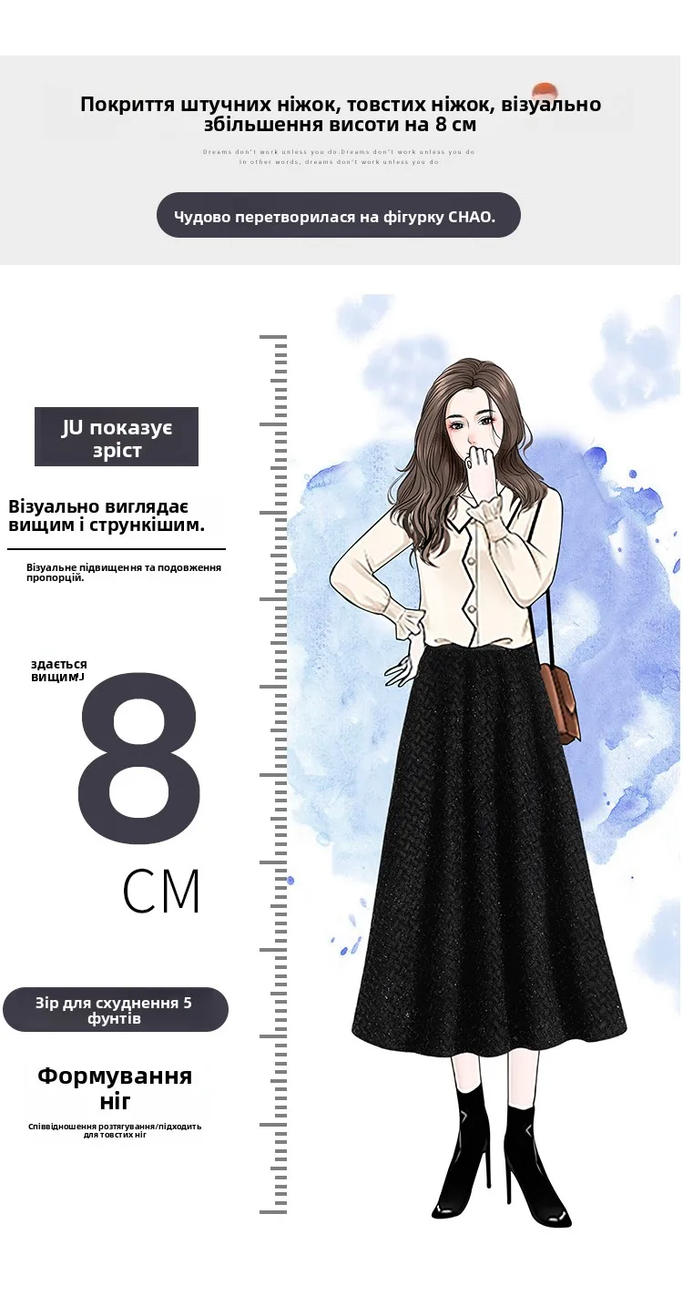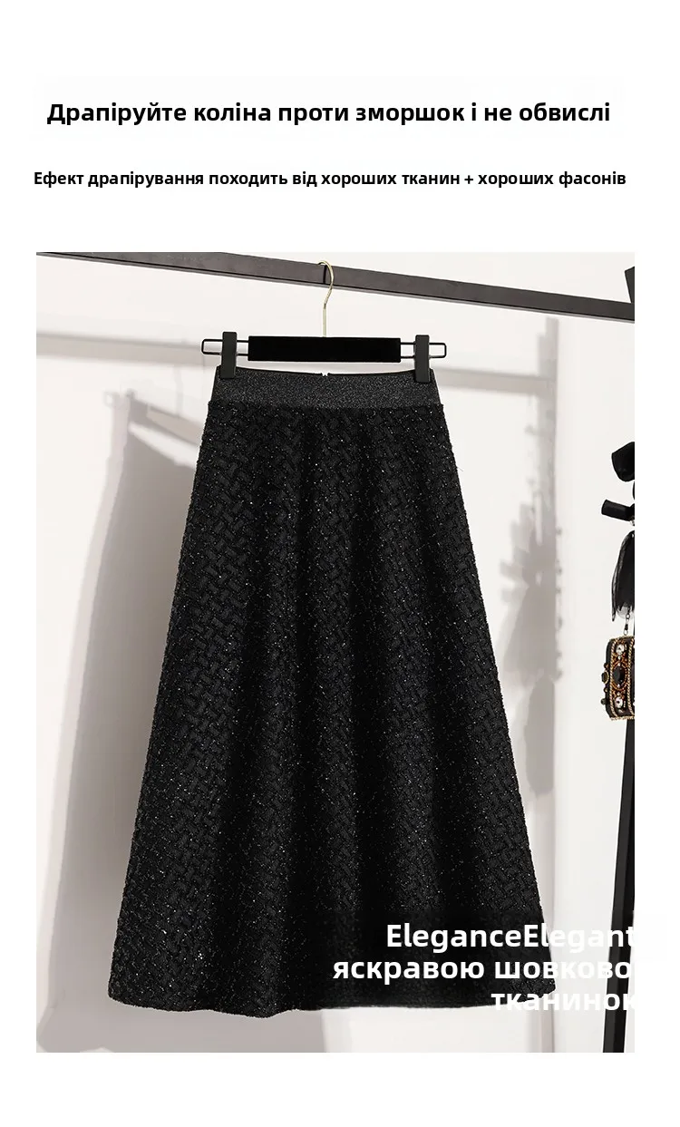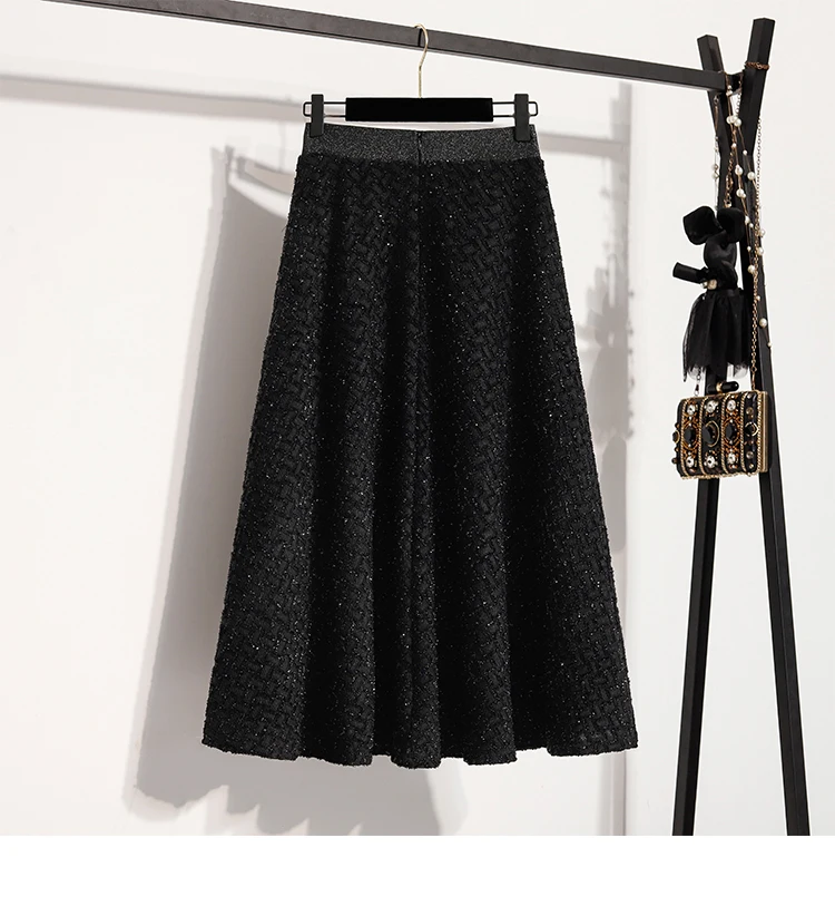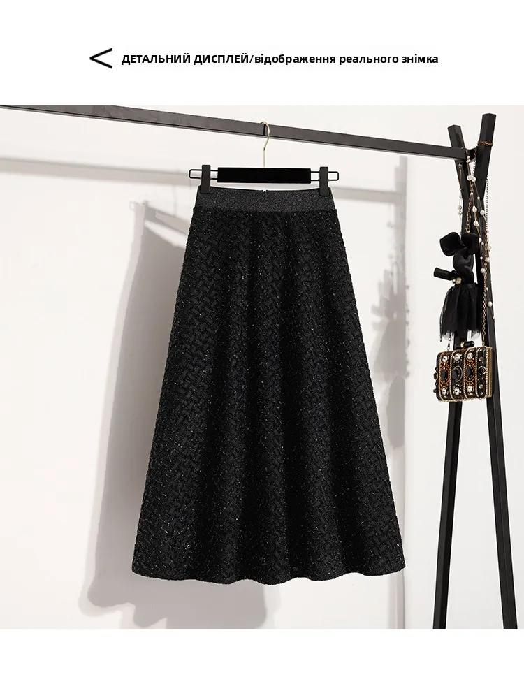 plus Size Women's High Waist A-Line Long Skirt Casual Versatile Glitter Wool Blend f Body Skirt for Full Figured Ladies