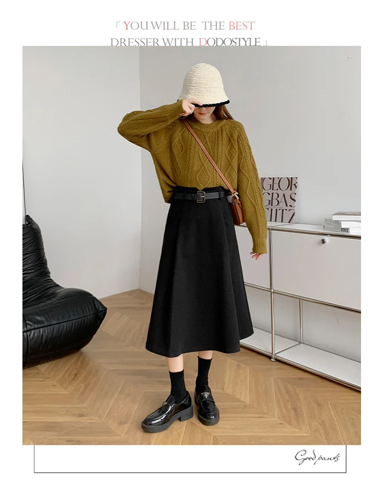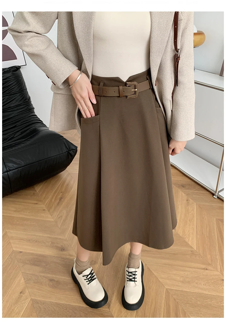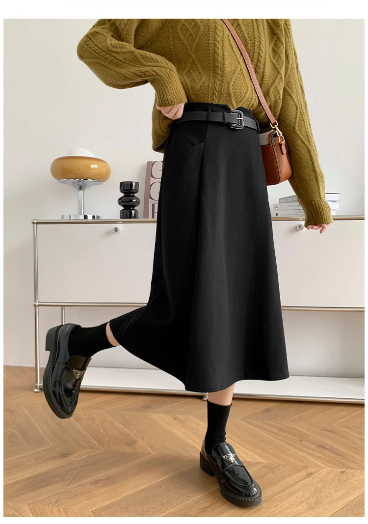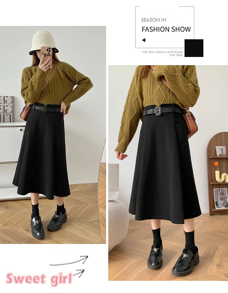 Plus Size Woolen Skirt Women 2024 Autumn Winter New Arrivals High Waist A Line Skirt With Belt Korean Fashon Skirts Womens