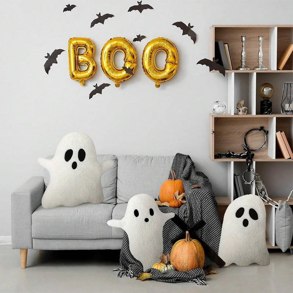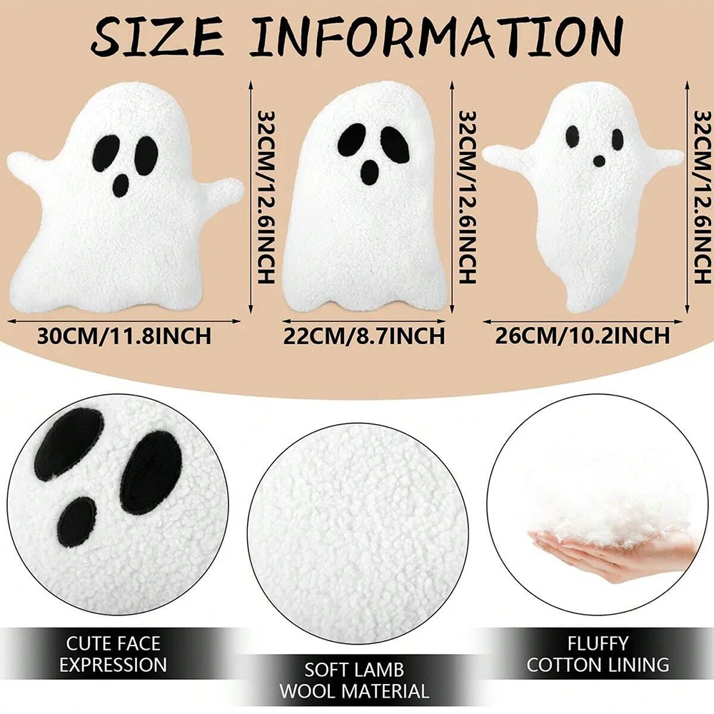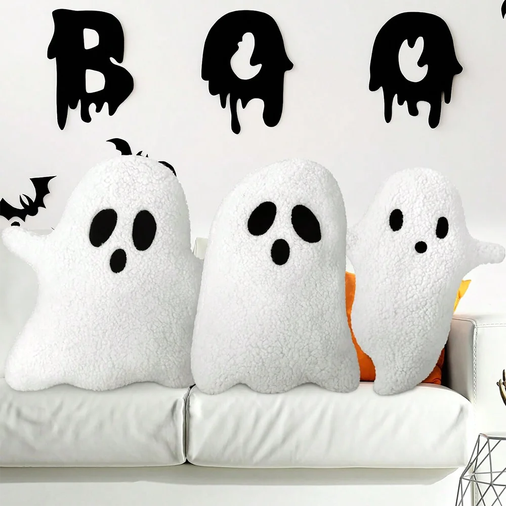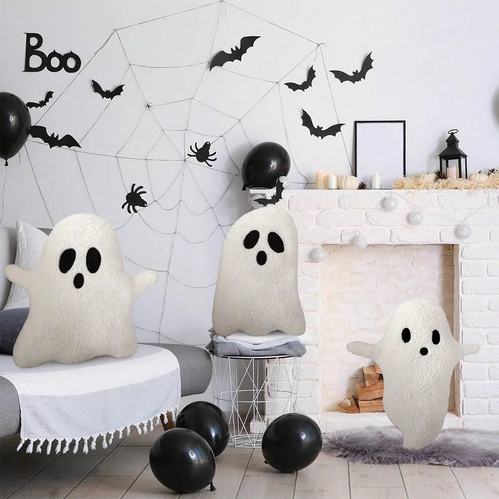 Plush Ghost Throw Pillow Halloween Decor Soft and Cuddly Ghost Shaped Cushion Ideal for Living Room Bedroom or Sofa Decoration
