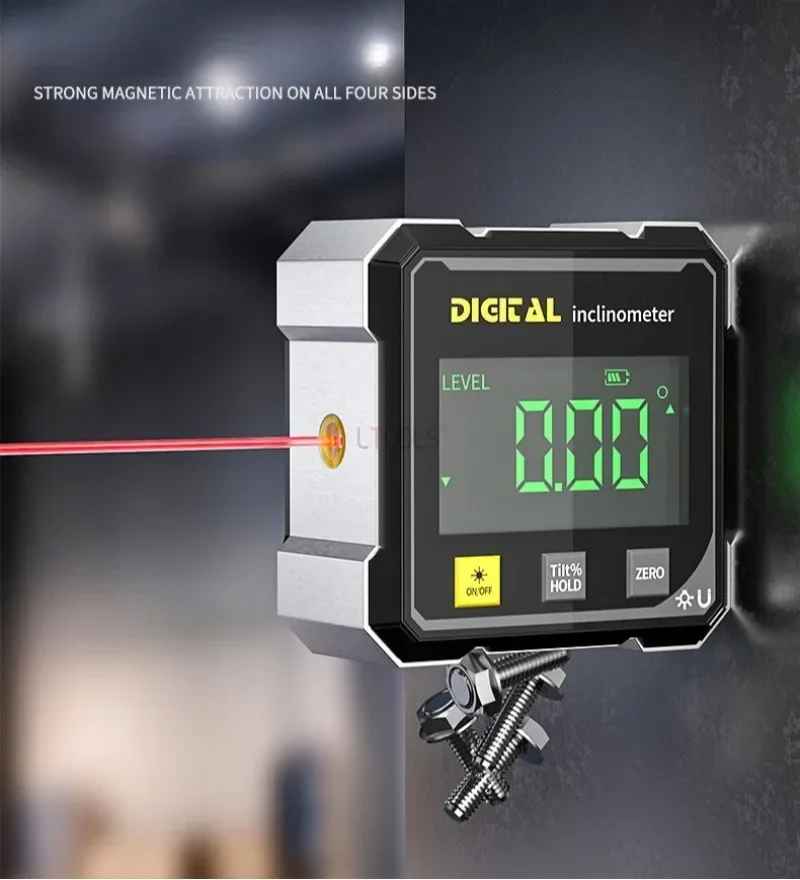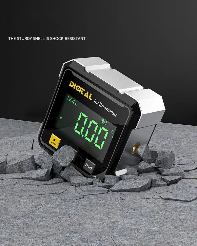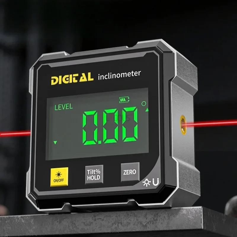 This is a mini electronic digital inclinometer designed specifically for high-precision angle measurement and slope detection. It is made of high-quality aluminum alloy material, sturdy and durable, lightweight and easy to carry, equipped with dual laser lines and four sided strong magnetic design, which can quickly and accurately measure angles and slopes. Whether it's construction, decoration design, or mechanical installation, this inclinometer can provide you with efficient and convenient measurement solutions.
