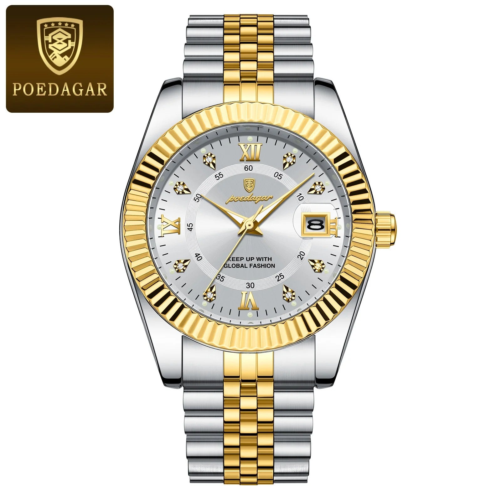 POEDAGAR Luxury Business Men Wristwatch Waterproof Luminous Date Military Man Watch Stainless Steel Fashion Men's Quartz Watches