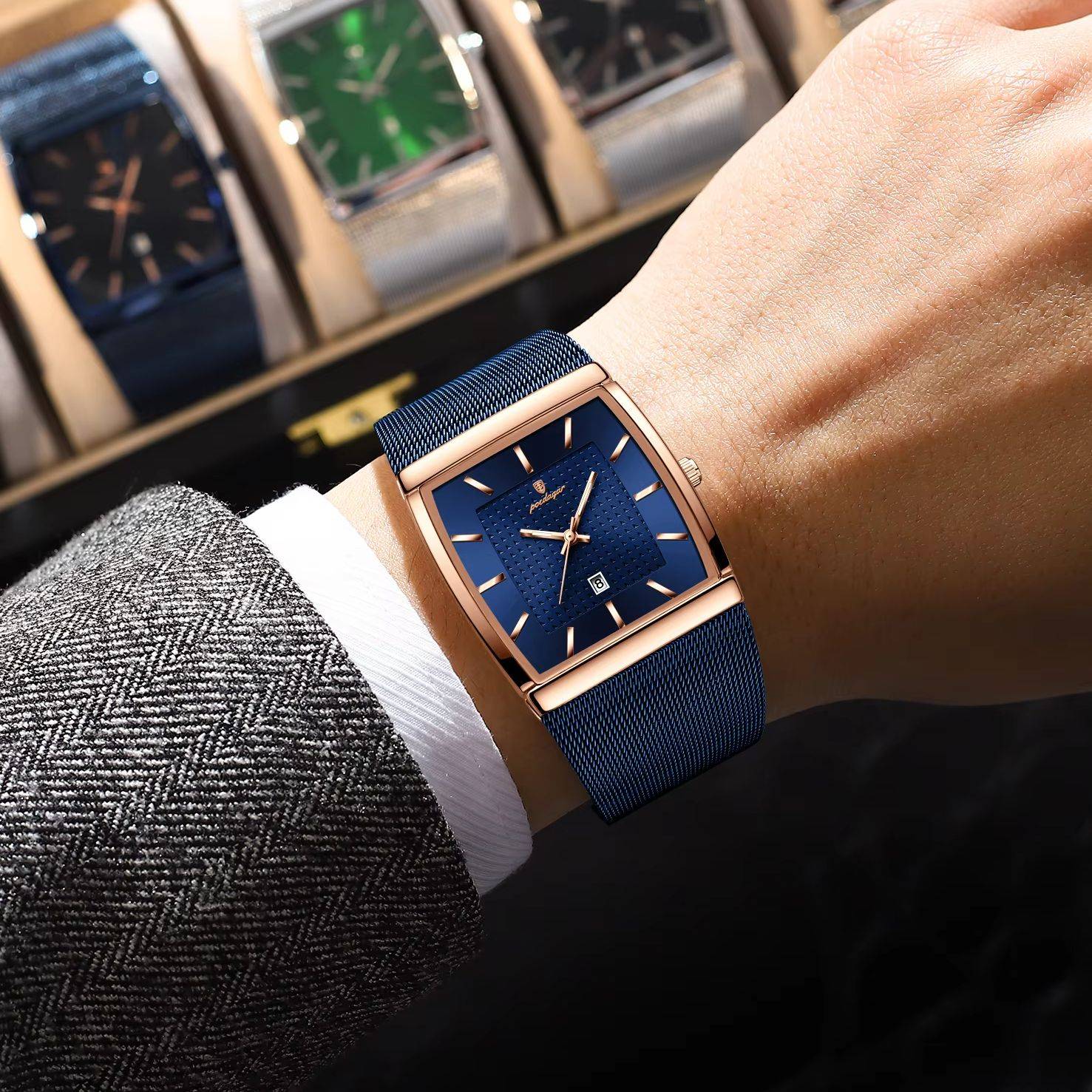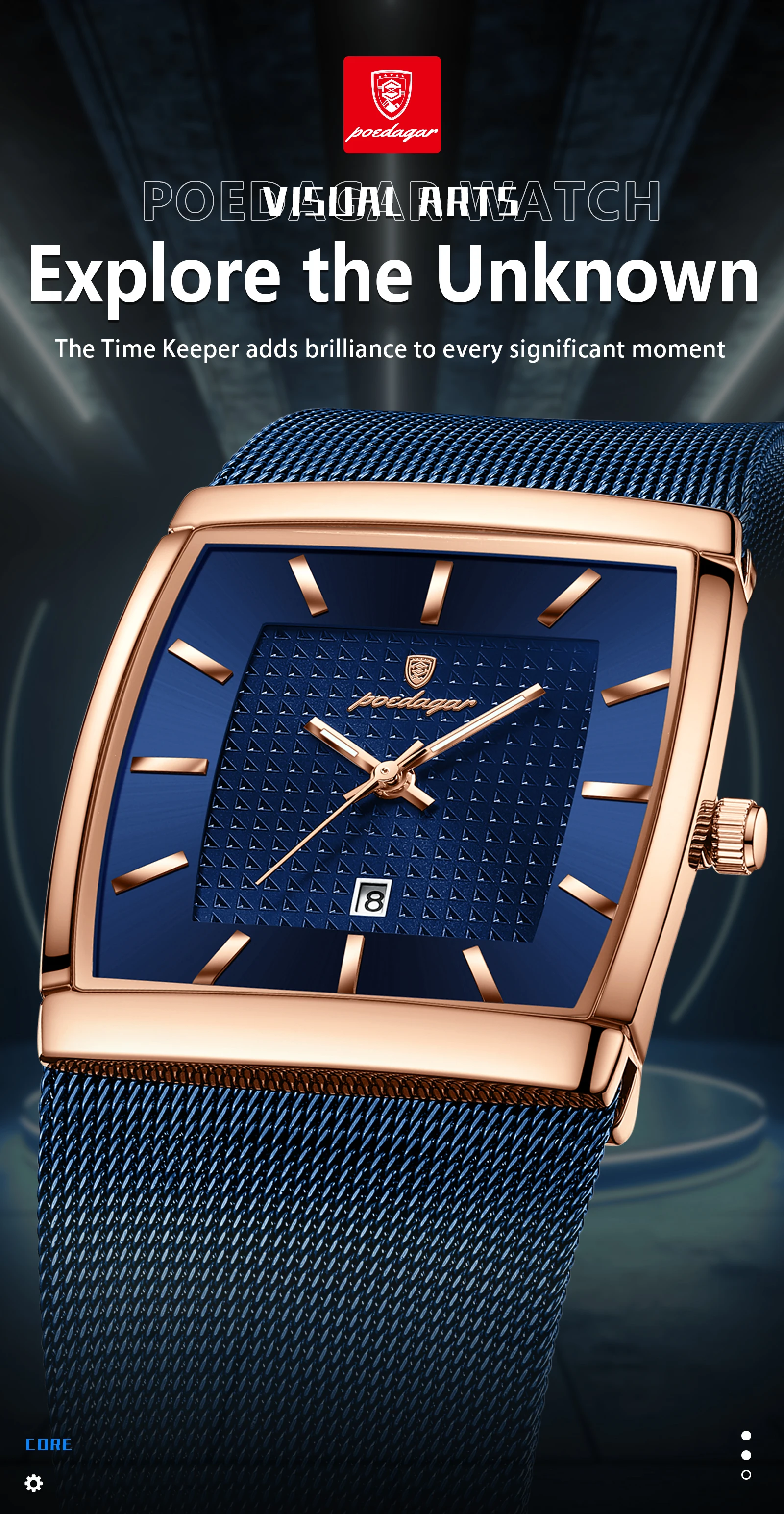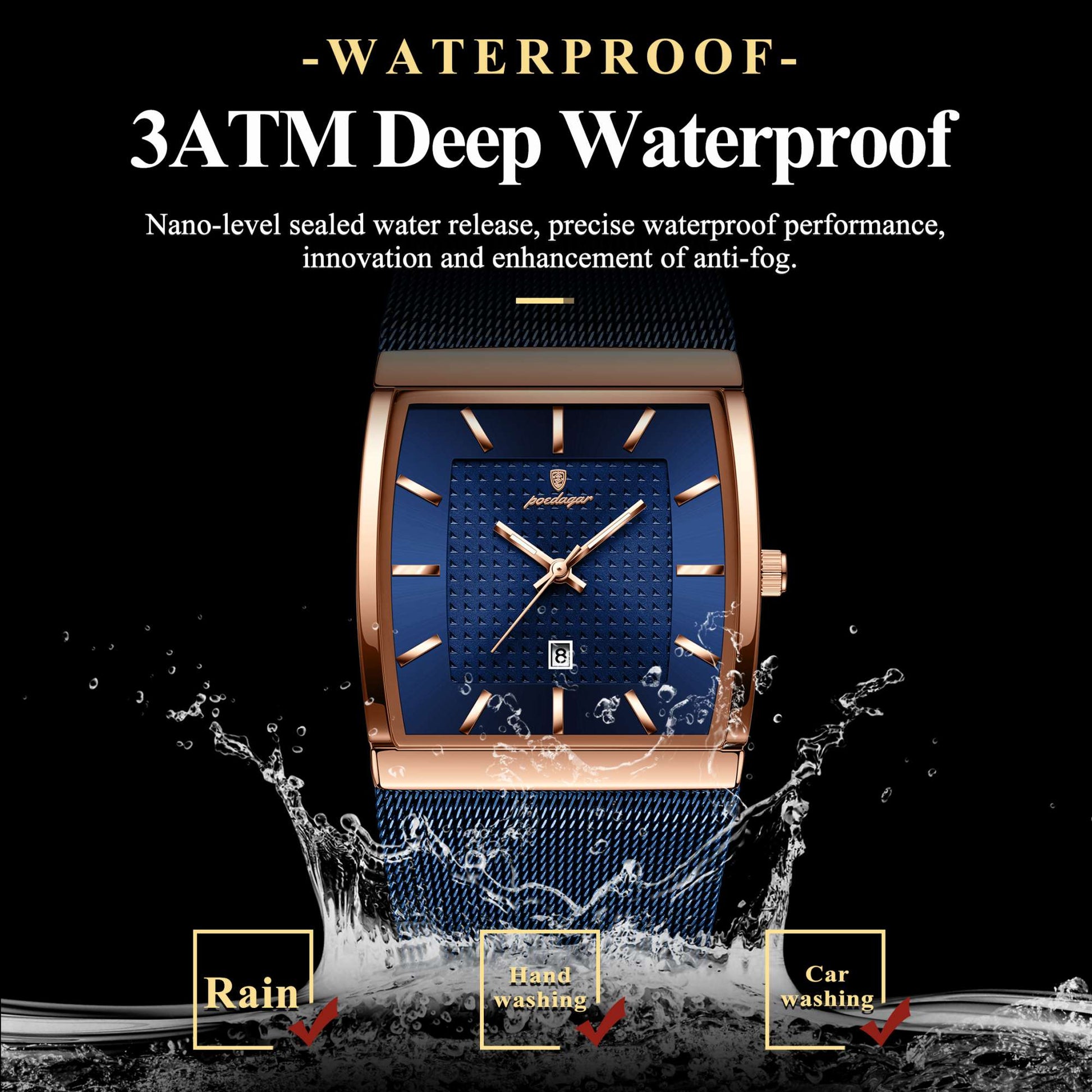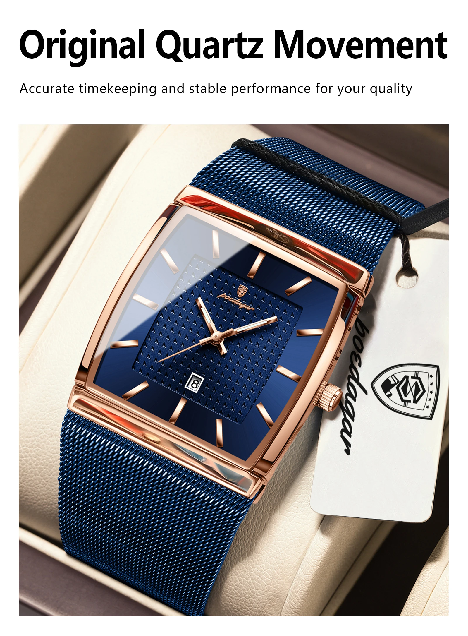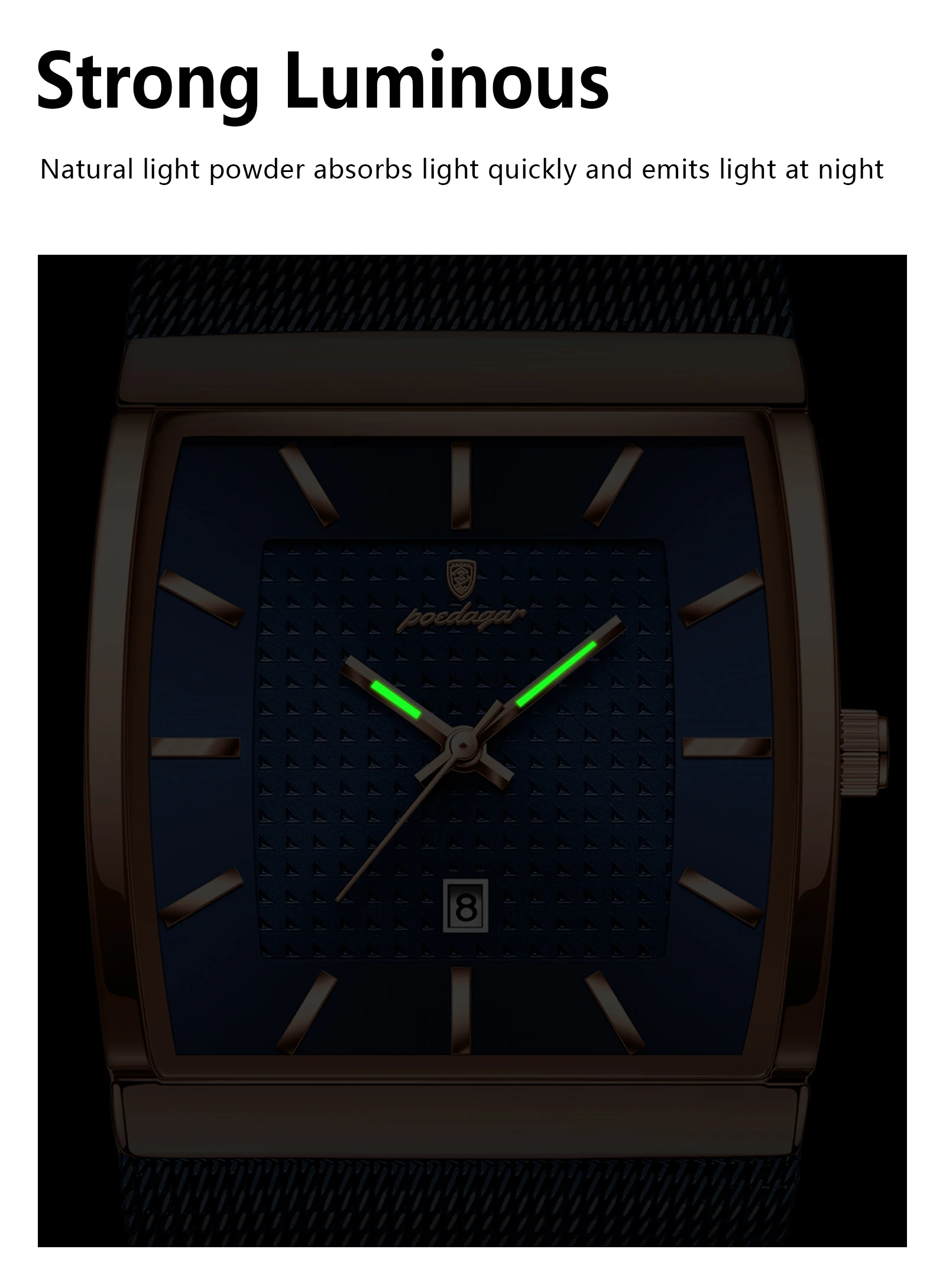 POEDAGAR Top Luxury Men Watch Stainless Steel Mesh Date Waterproof Luminous Man Wristwatch Casual Rectangle Quartz Men's Watches